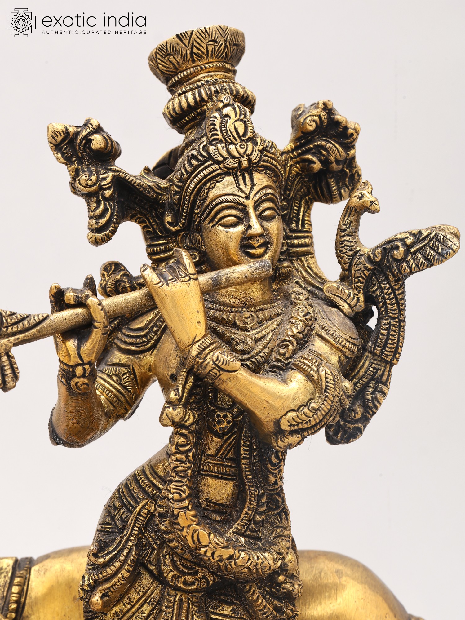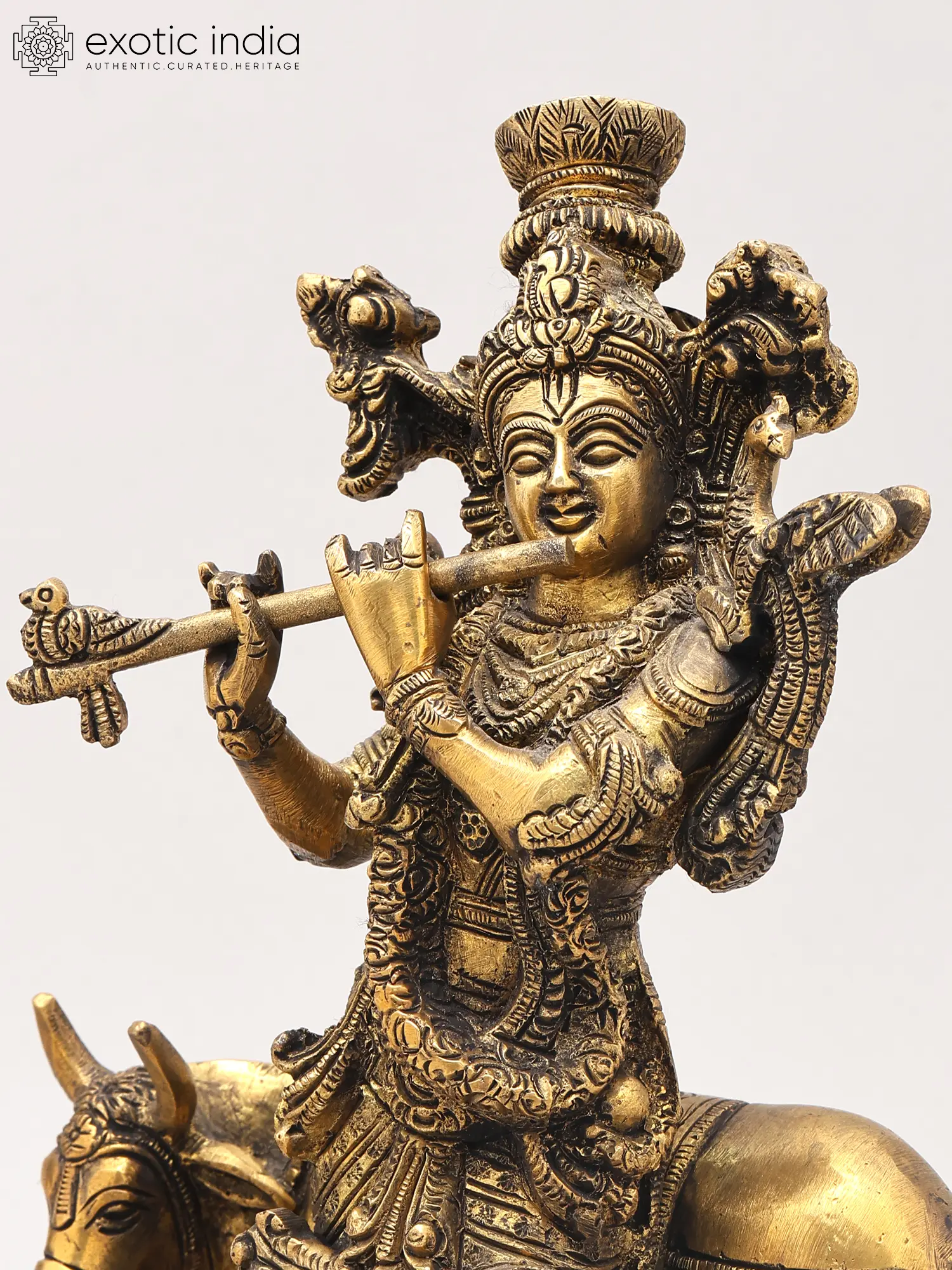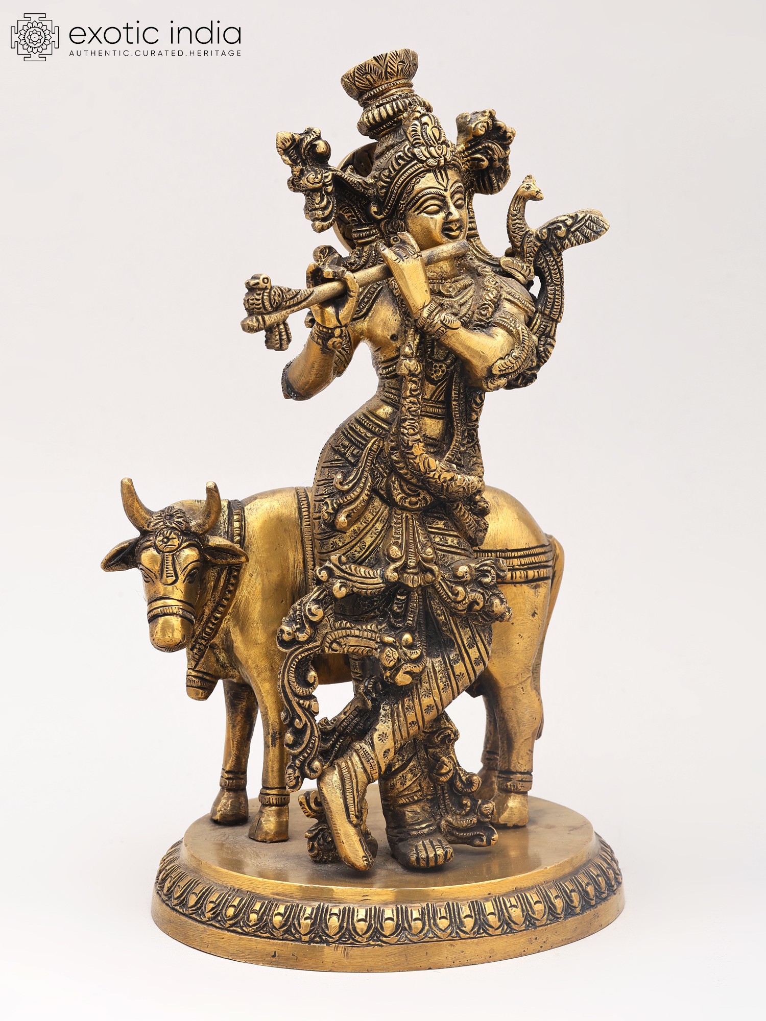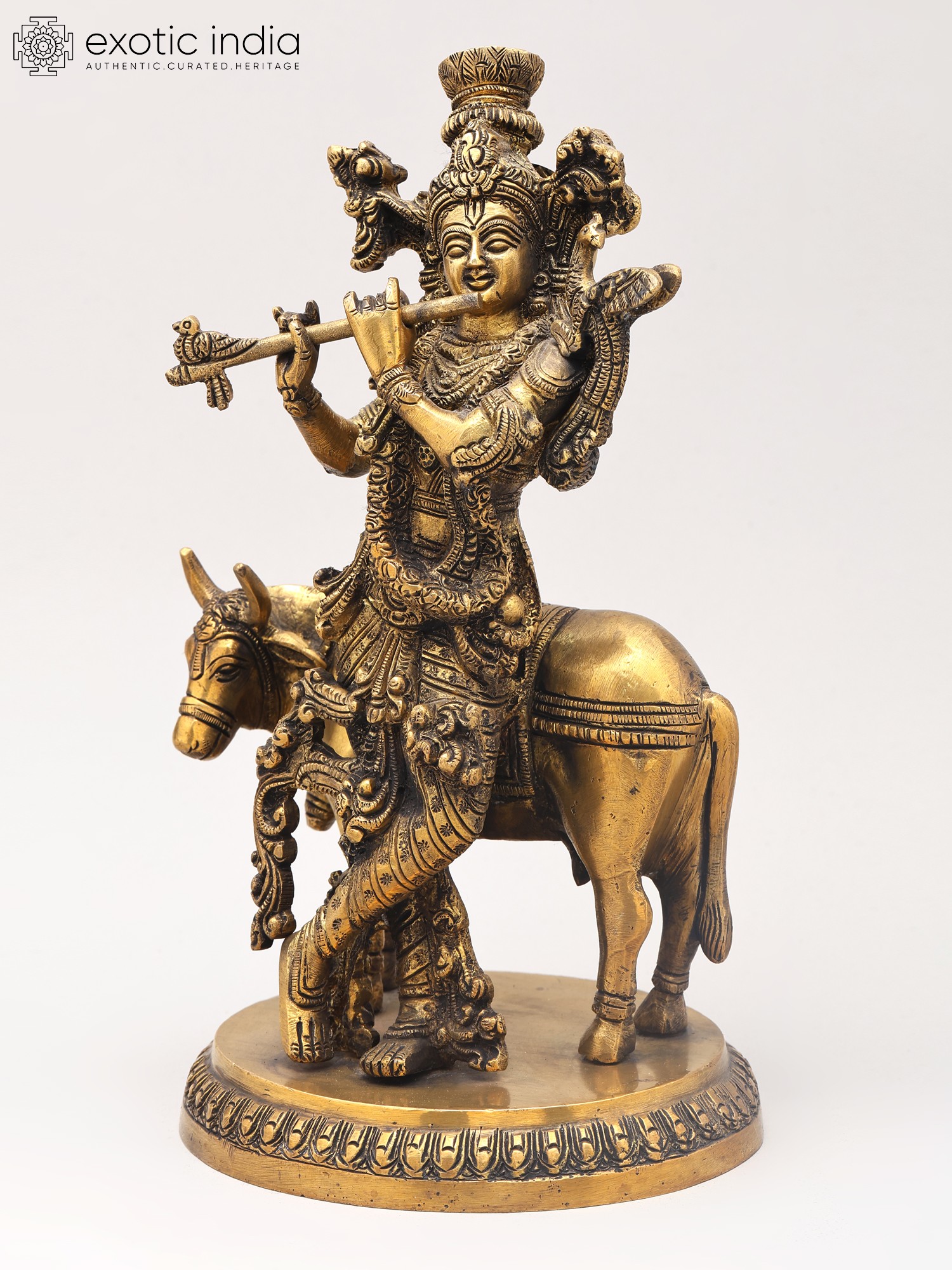 30" Cow Krishna Brass Statue In Brass | Handmade | Made In India