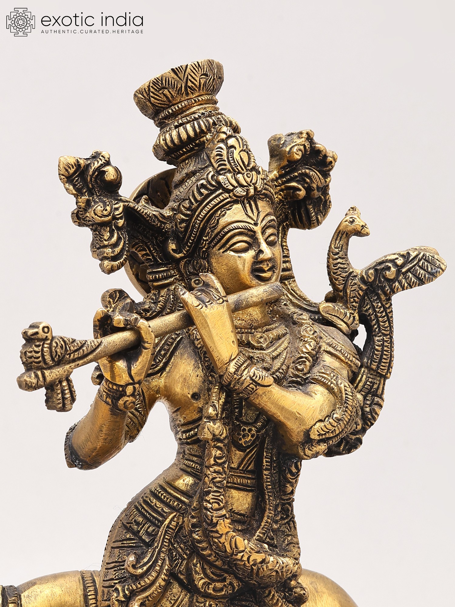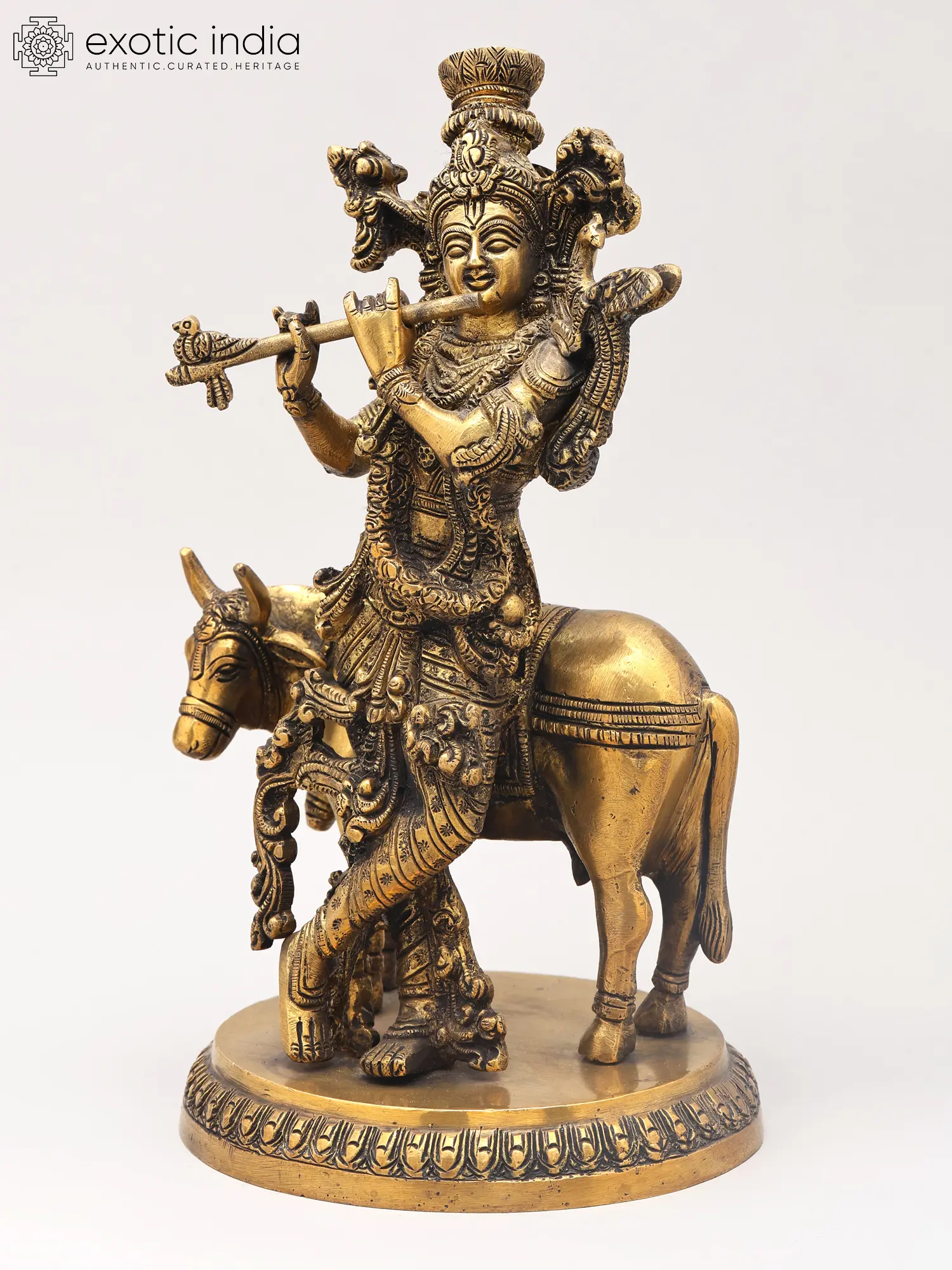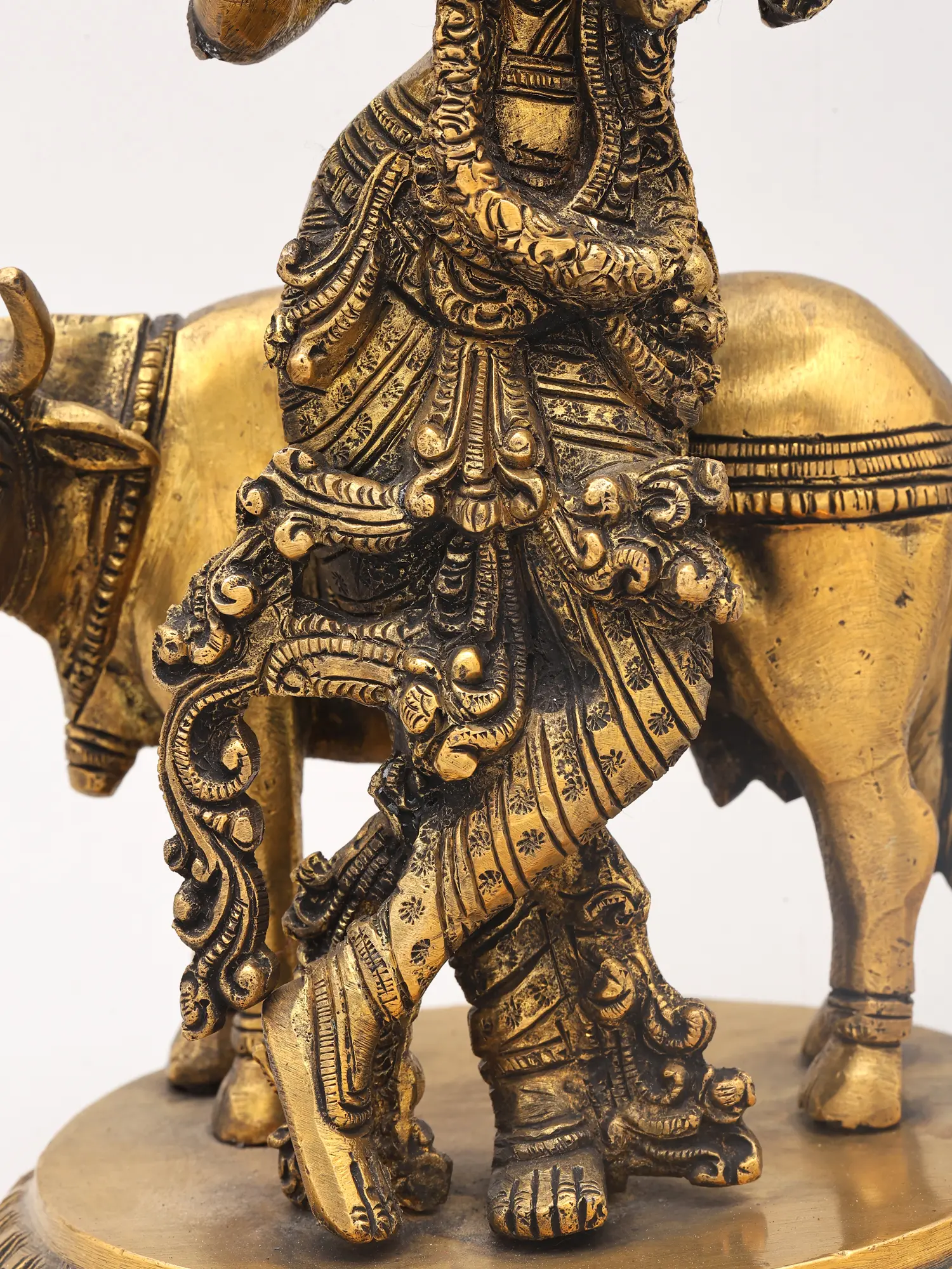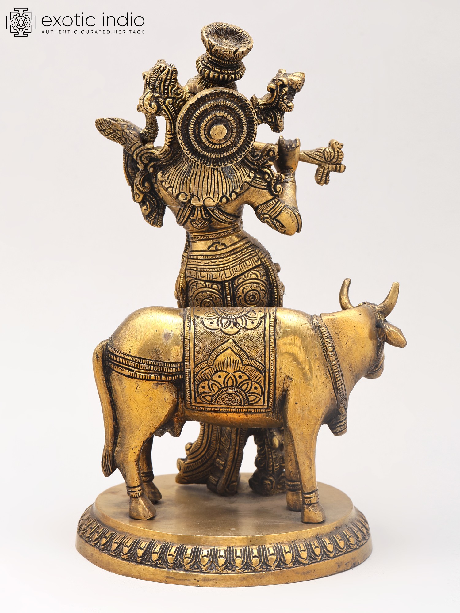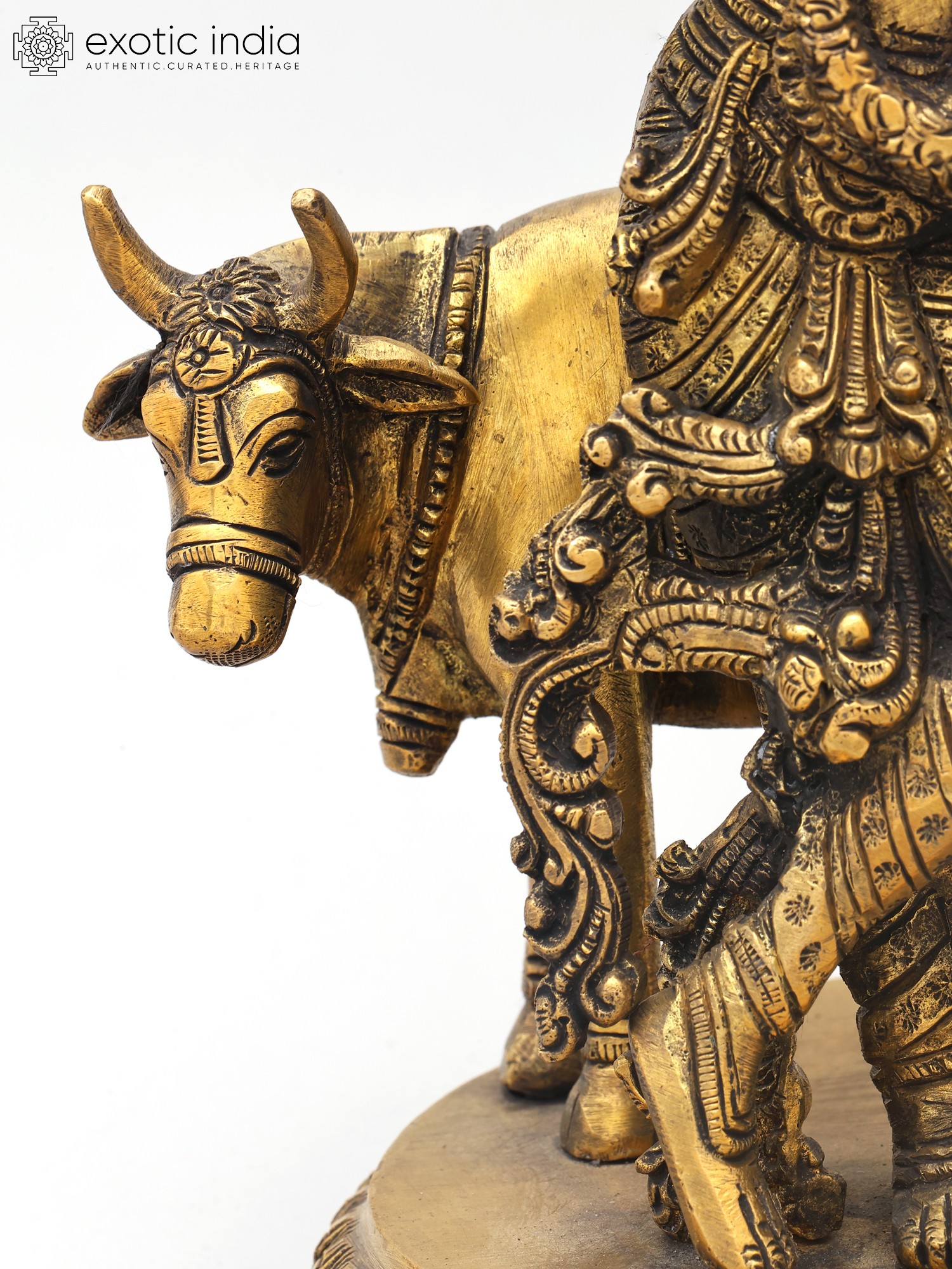 Small Superfine Cow Krishna Brass Idol | Made In India