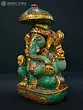 72" Large Wooden Ten Hands Sitting Lord Ganesha Idol
