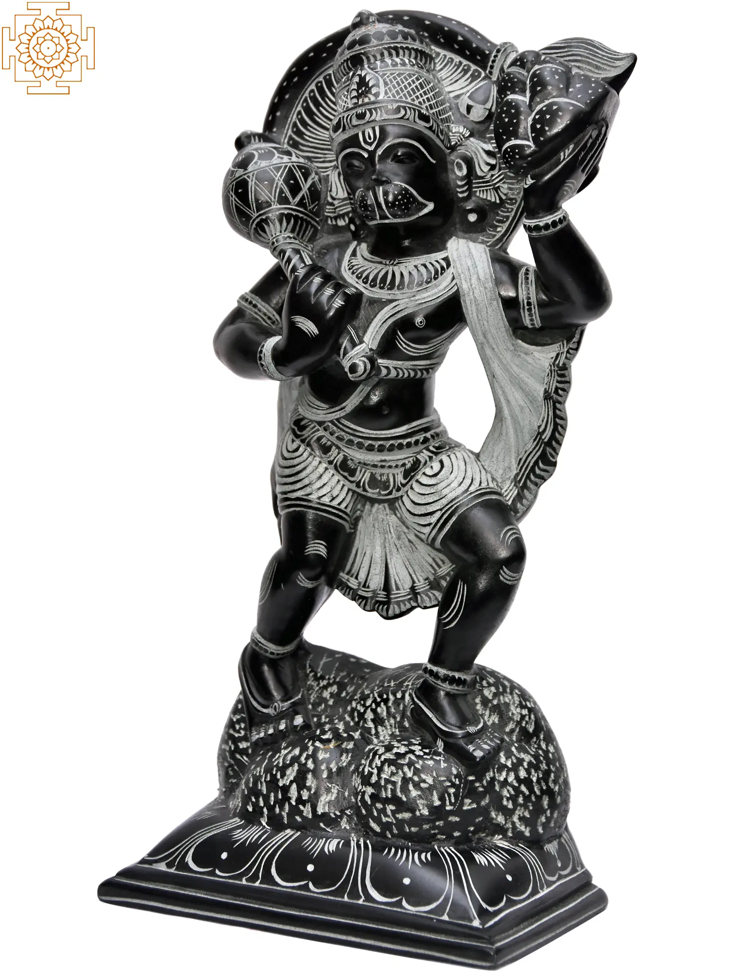 10'' Lord Anjaneyar (Hanuman) Carrying Sanjeevani | Stone Statue