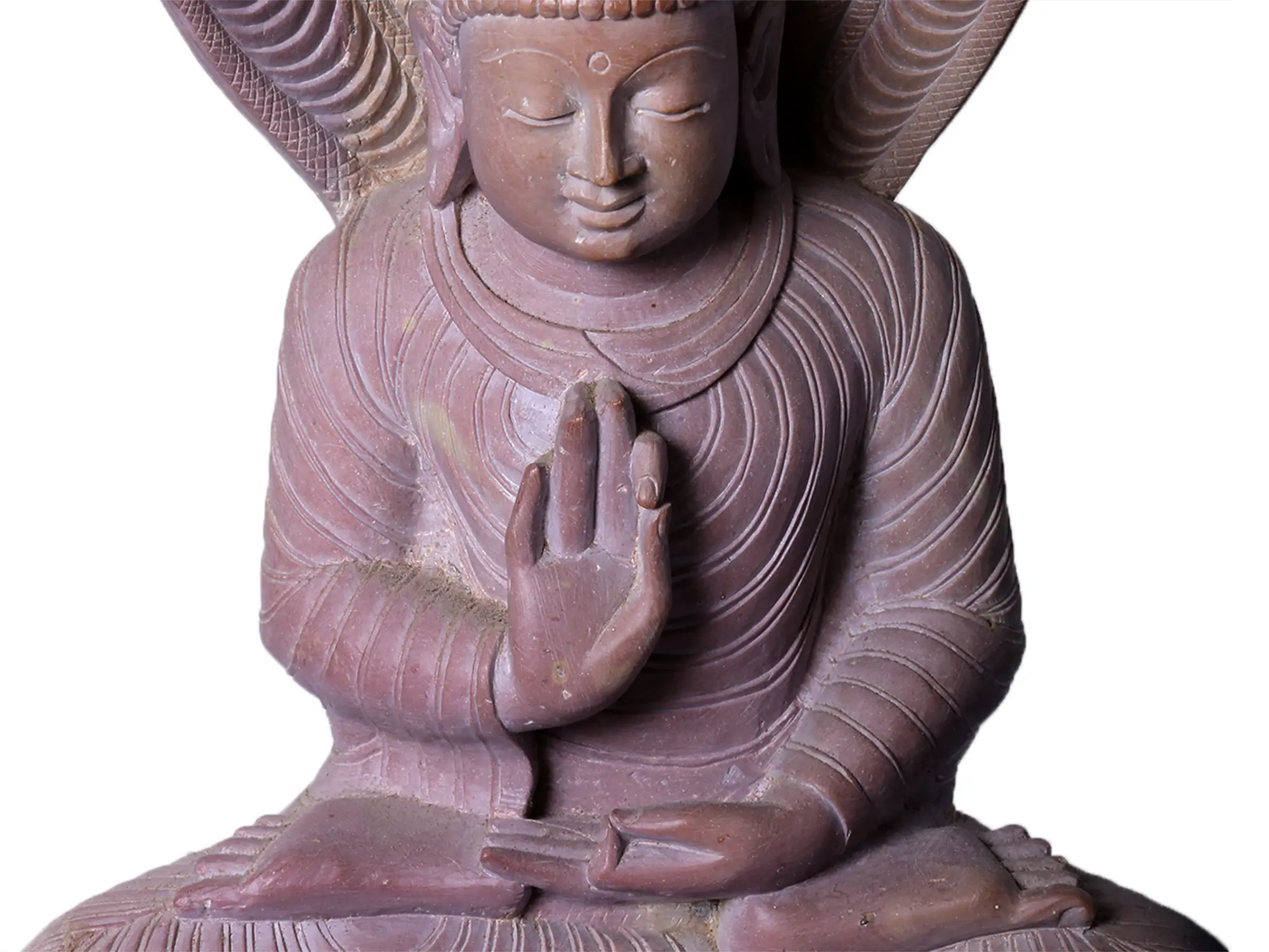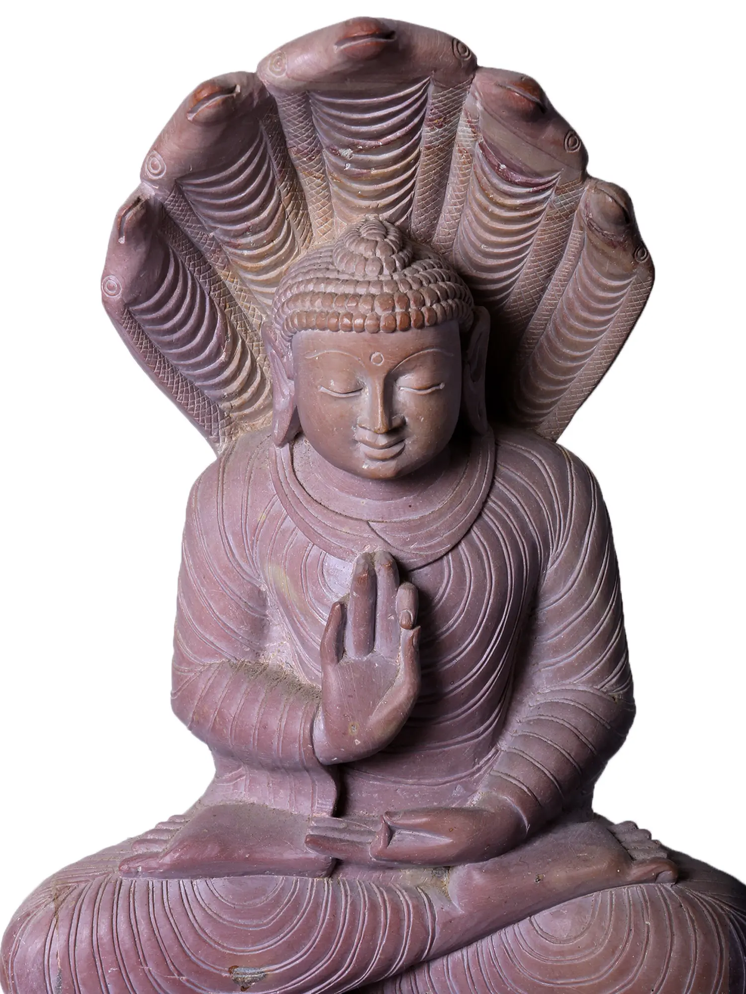 The art of Mahabalipuram, a UNESCO World Heritage site, is renowned for its monumental sculptures and intricate carvings that have withstood the test of time. Artisans from this region are celebrated for their skill in transforming raw stone into objects of profound beauty and spiritual significance. This statue showcases that exceptional craftsmanship, with each ripple of the Buddha's robes, the delicate rendering of his features, and the powerful yet graceful coils of the naga meticulously sculpted. The rich, earthy tones of the stone lend a timeless quality to the piece, inviting contemplation and reverence. Displaying this statue in your home or sacred space can serve as a constant reminder of the power of inner peace, resilience, and the protective forces that guide us on our spiritual journeys. It is more than just an object of art; it is a conduit to ancient wisdom and a testament to the enduring power of faith.