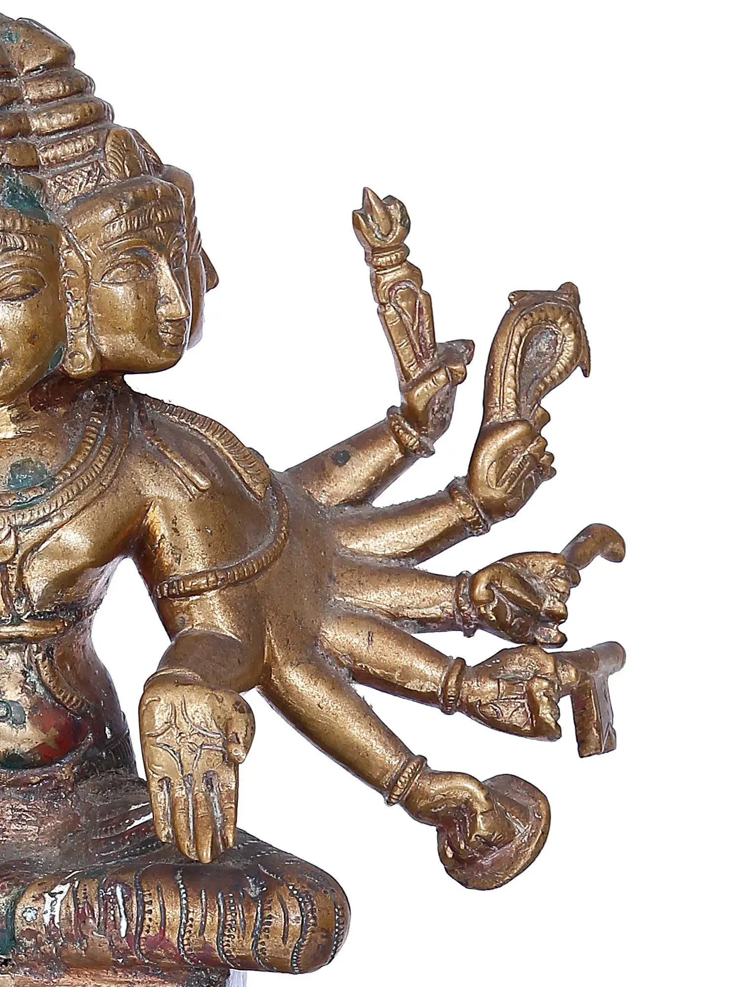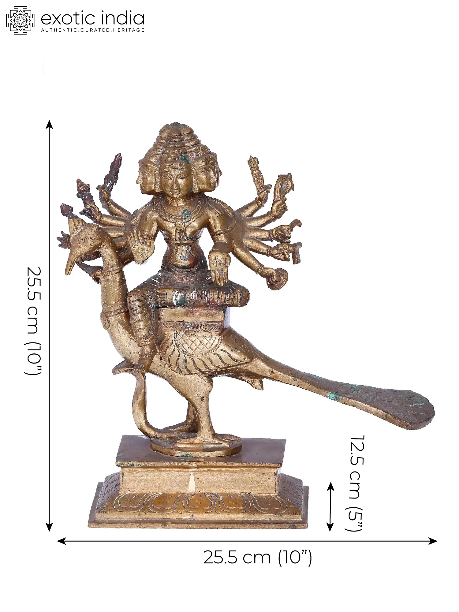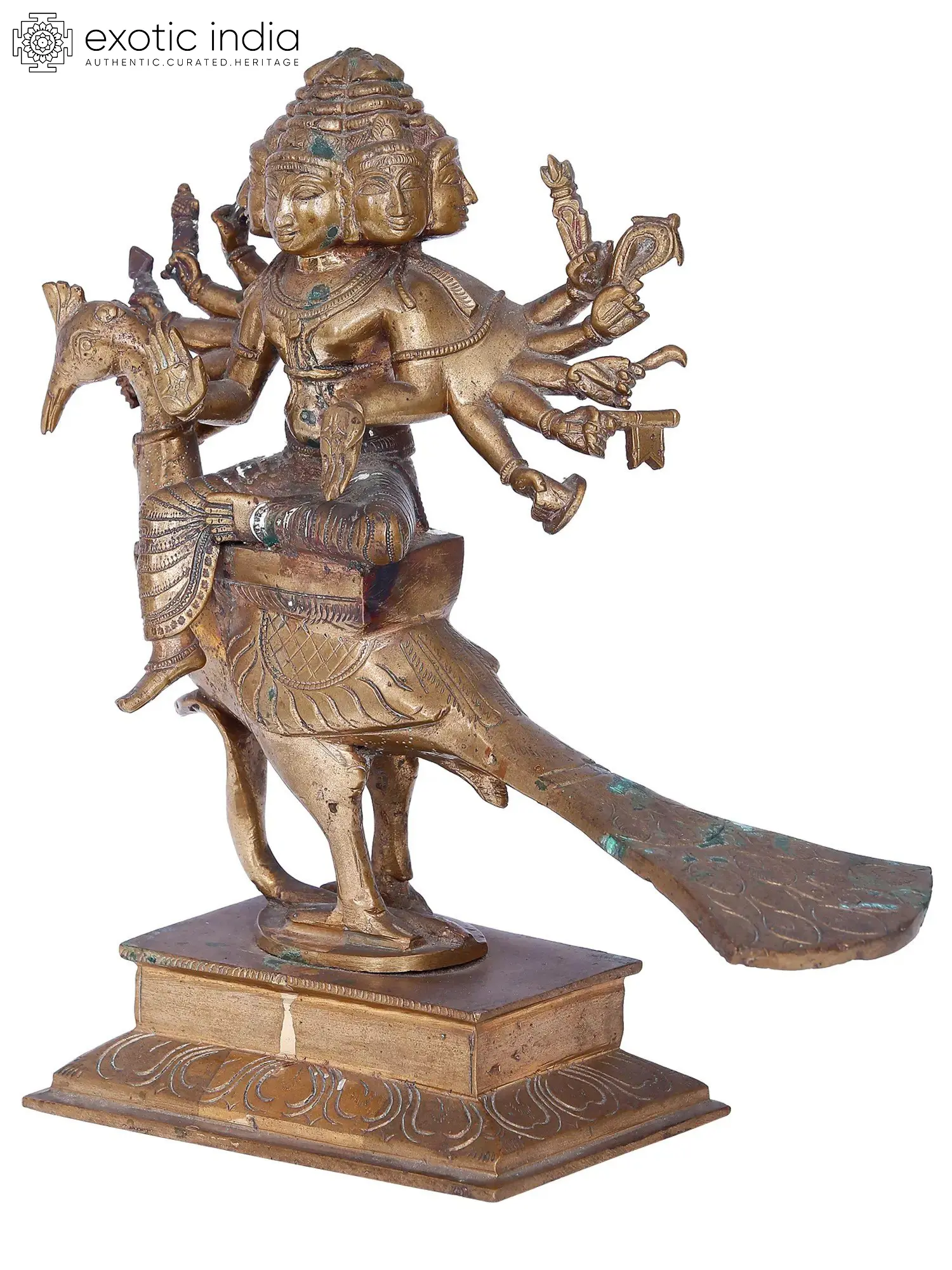 Embrace the divine valour with our Lord Murugan sculpture, crafted with finesse through Madhuchista Vidhanam in Swamimalai's Panchaloha Bronze. This piece beautifully portrays Lord Murugan, the warrior deity. Beyond its artistic finesse, the sculpture embodies the Hindu philosophical concept of 'Courage and Wisdom,' symbolising Murugan's attributes as a fearless warrior and wise philosopher. The lost-wax technique intricately captures the details, inviting you to connect with the divine energy that empowers and enlightens.