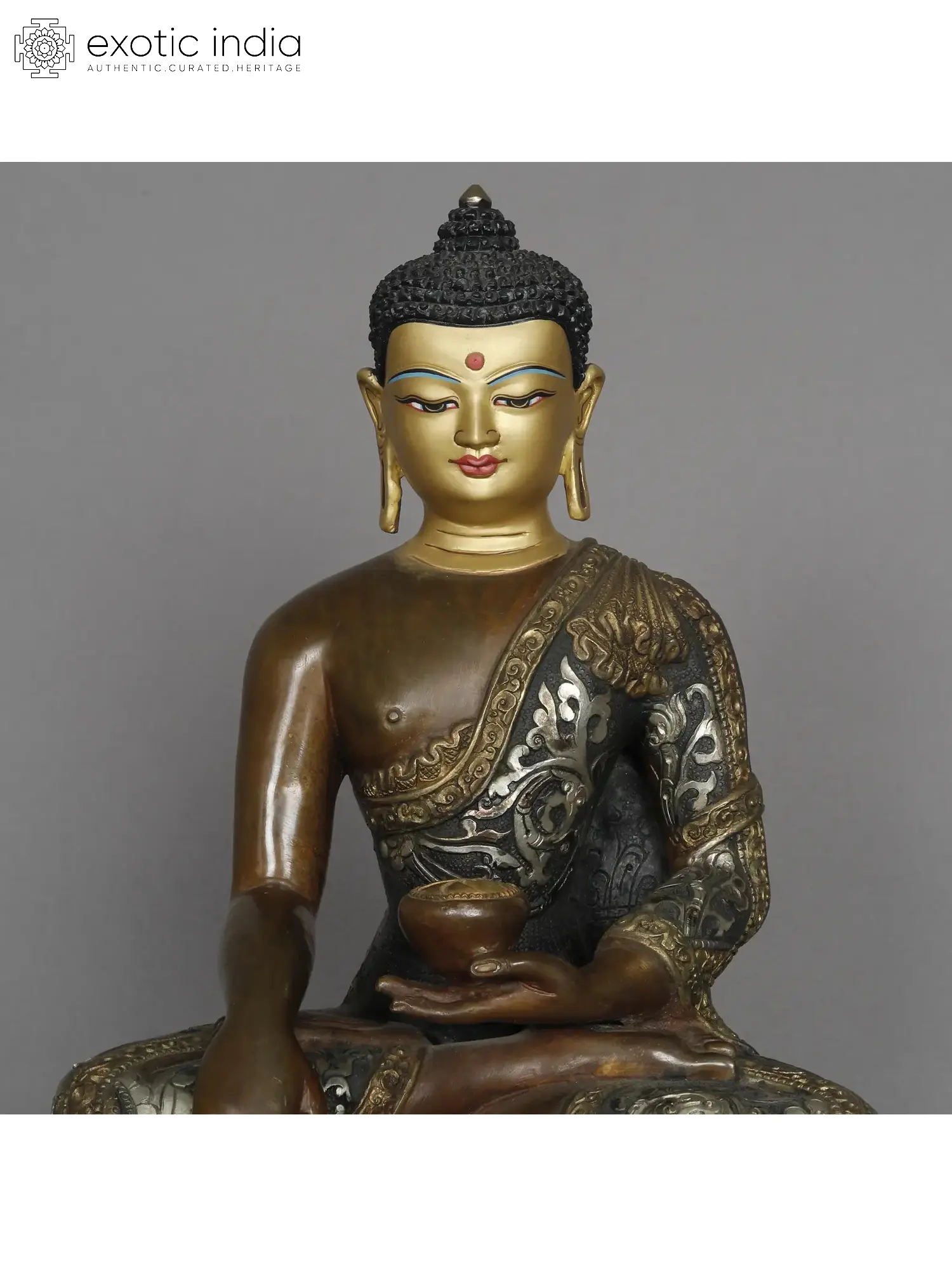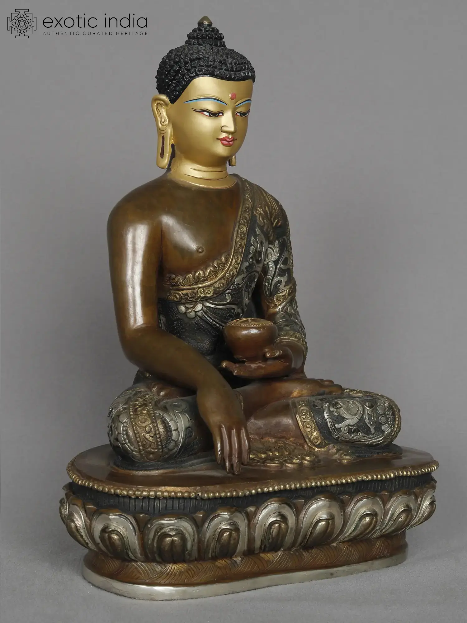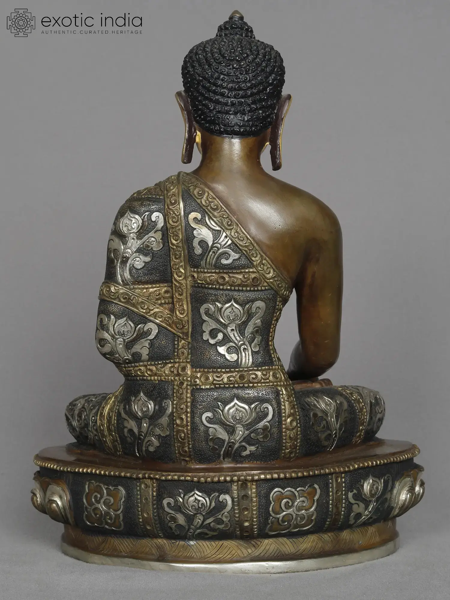13" Shakyamuni Buddha Idol from Nepal | Copper Statue with Gilded Gold