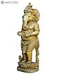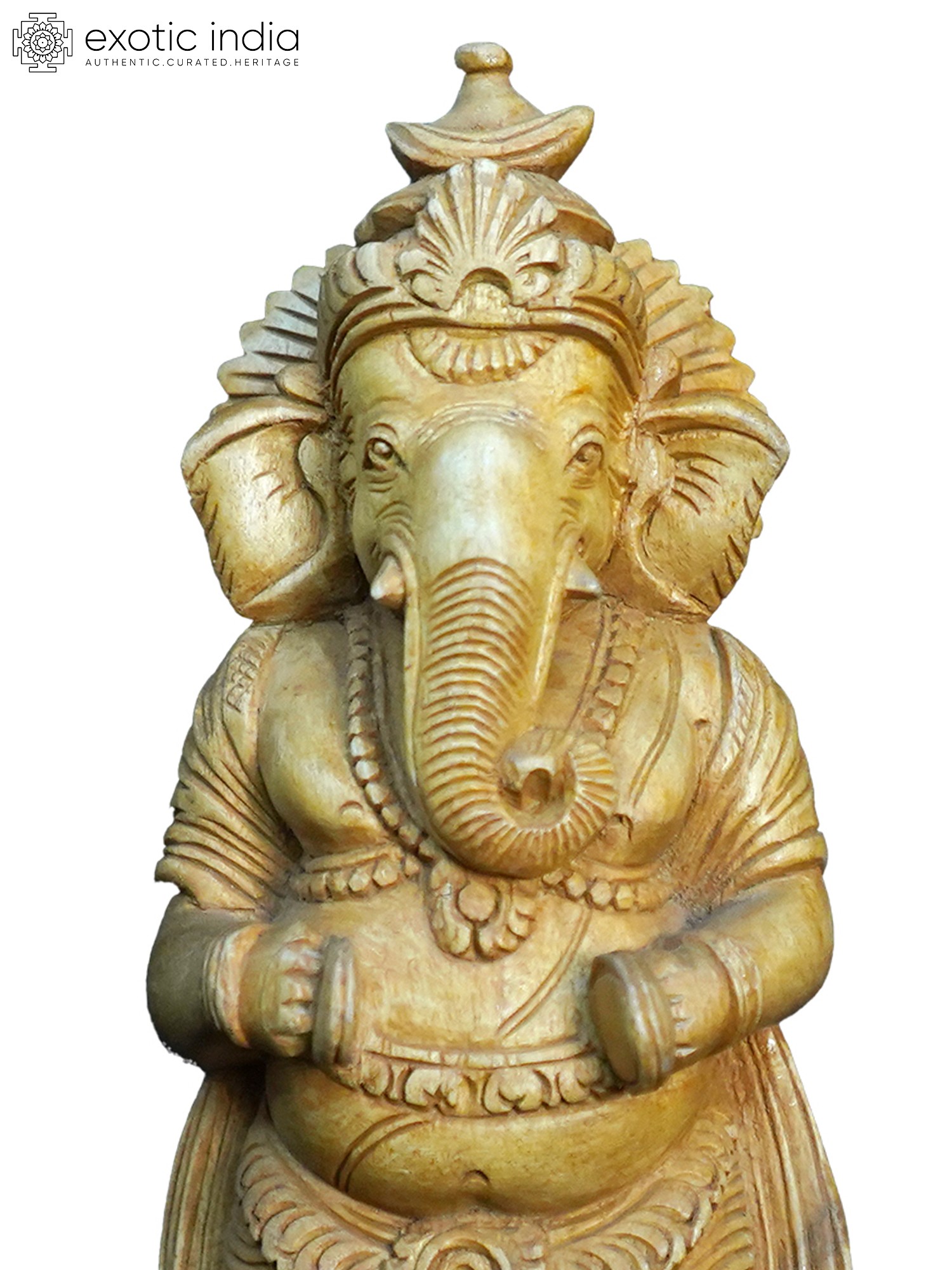 30" Musical Ganesha Playing Drum | Wood Carved Statue