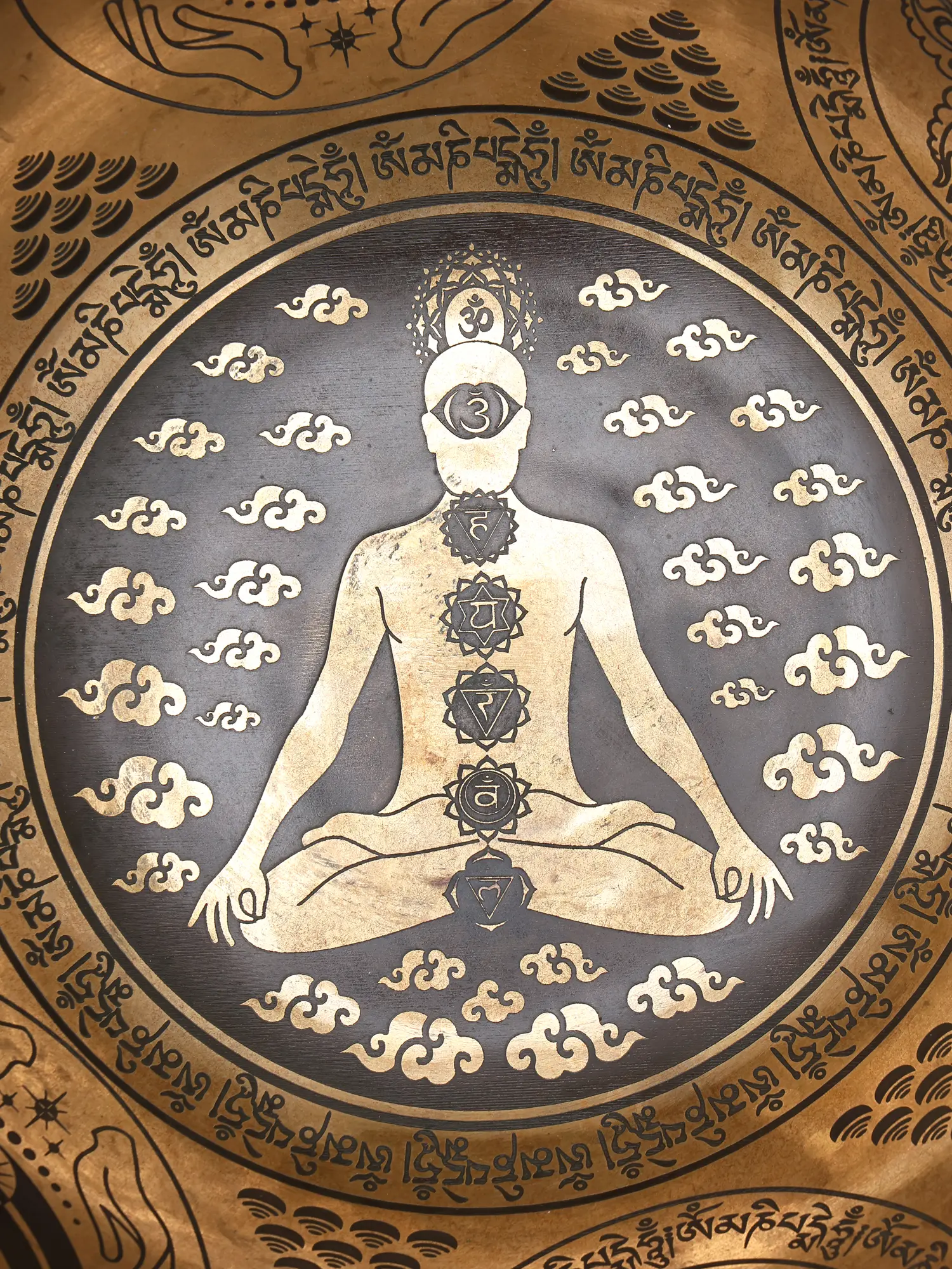 Forged from high-quality bronze, this piece is a testament to time-honored metallurgical arts. Skilled artisans have painstakingly hammered and shaped the metal, ensuring a depth and richness to its sonic output. The intricate engravings, applied with remarkable precision, speak to a dedication to craftsmanship that is rarely found today, making each one a unique masterpiece.