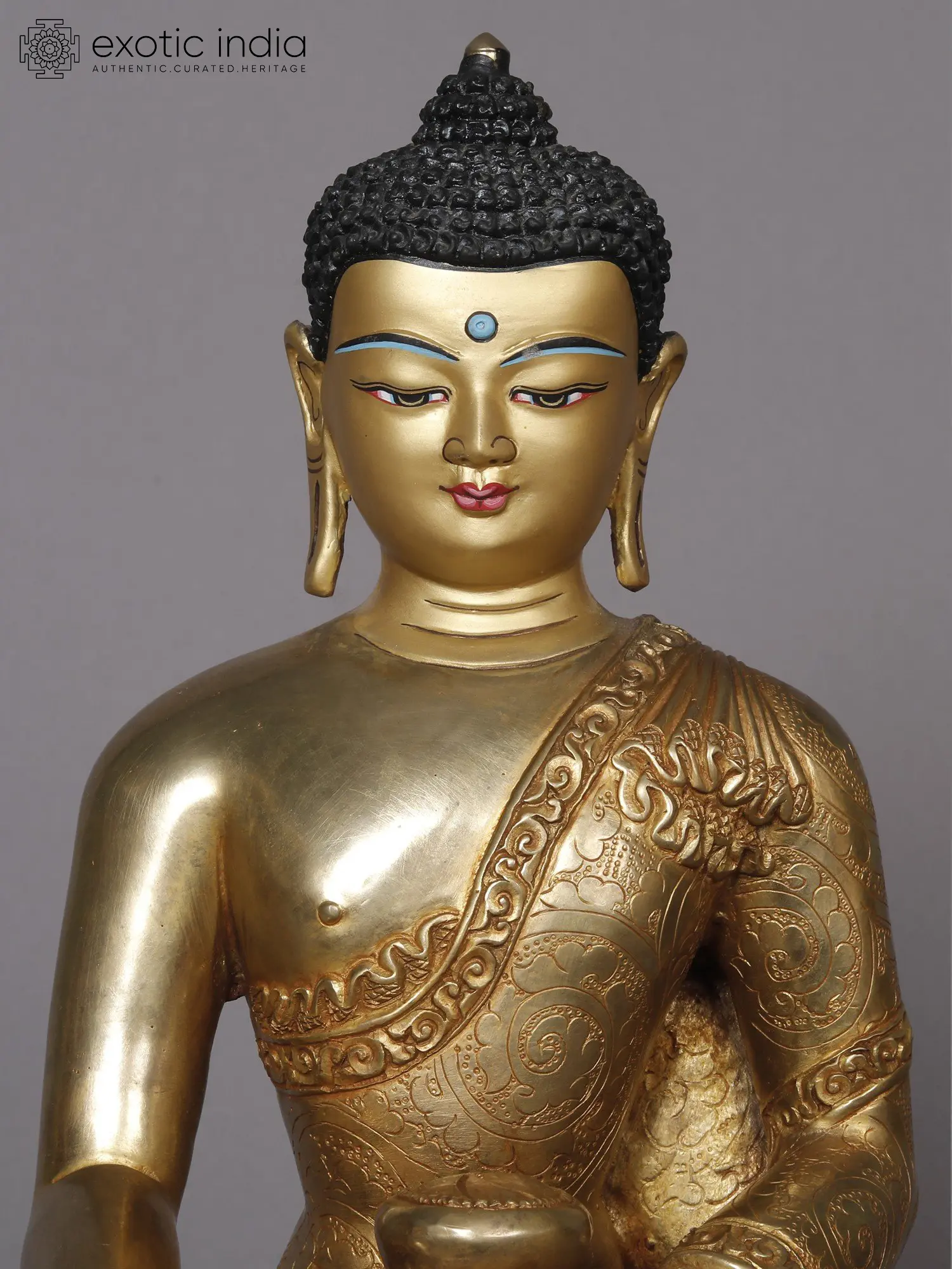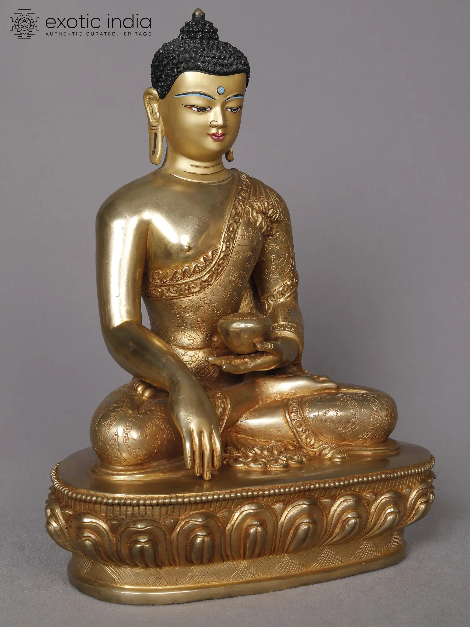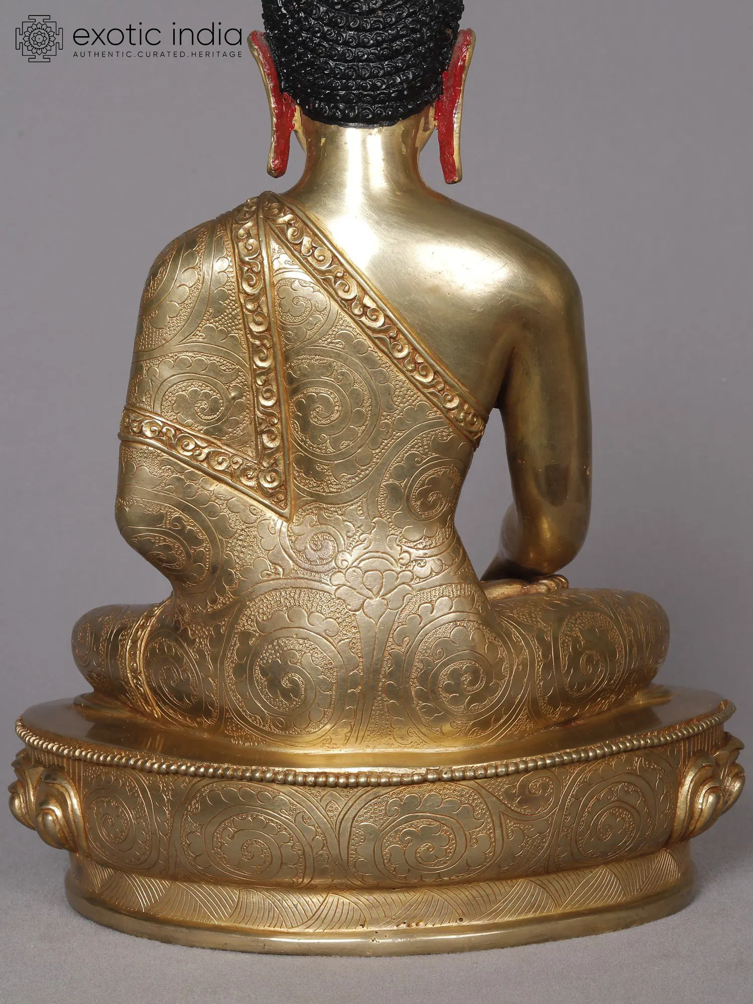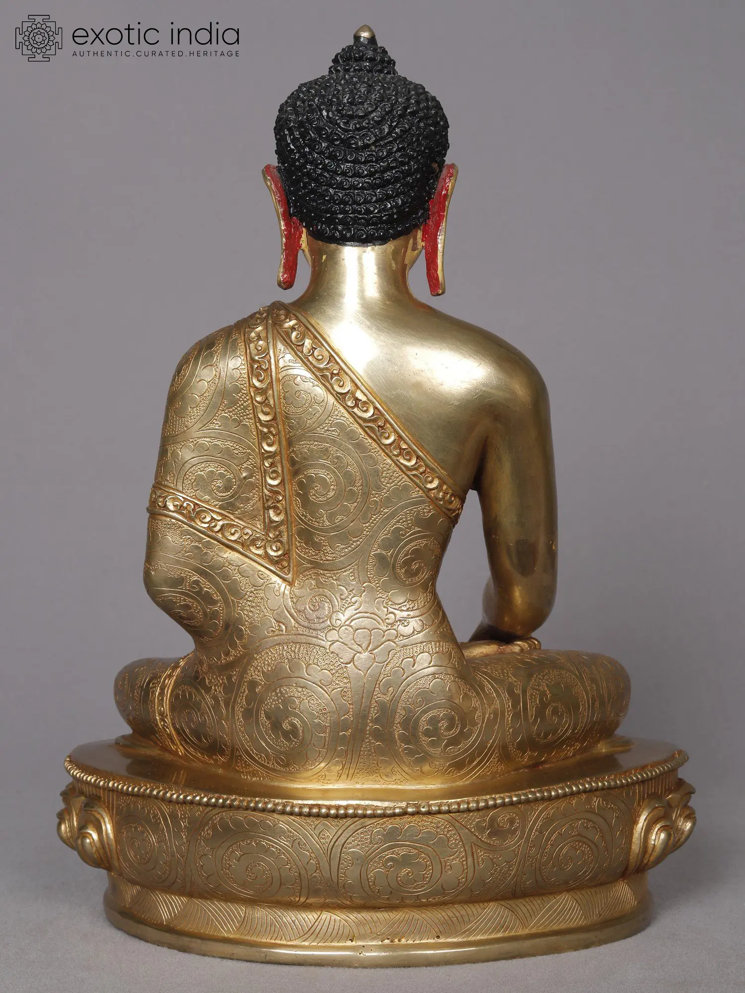 The earth itself responded with tremors and quakes, acknowledging Shakyamuni's ascension to Buddhahood. Resting in a meditative pose, his left-hand finds repose in his lap, holding his alms bowl, a testament to his profound spiritual journey.