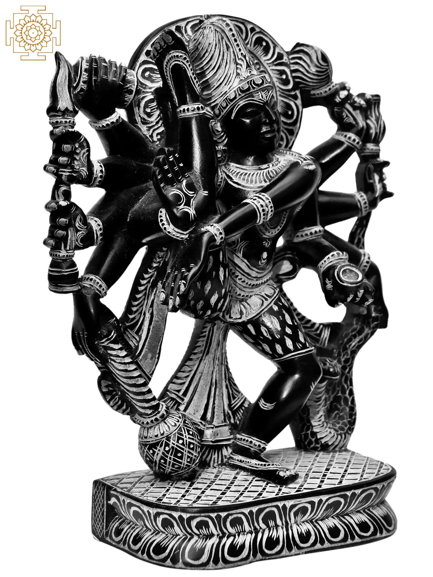 39" Large Four Armed Lord Ganapati With Goddess Statue In Granite Stone