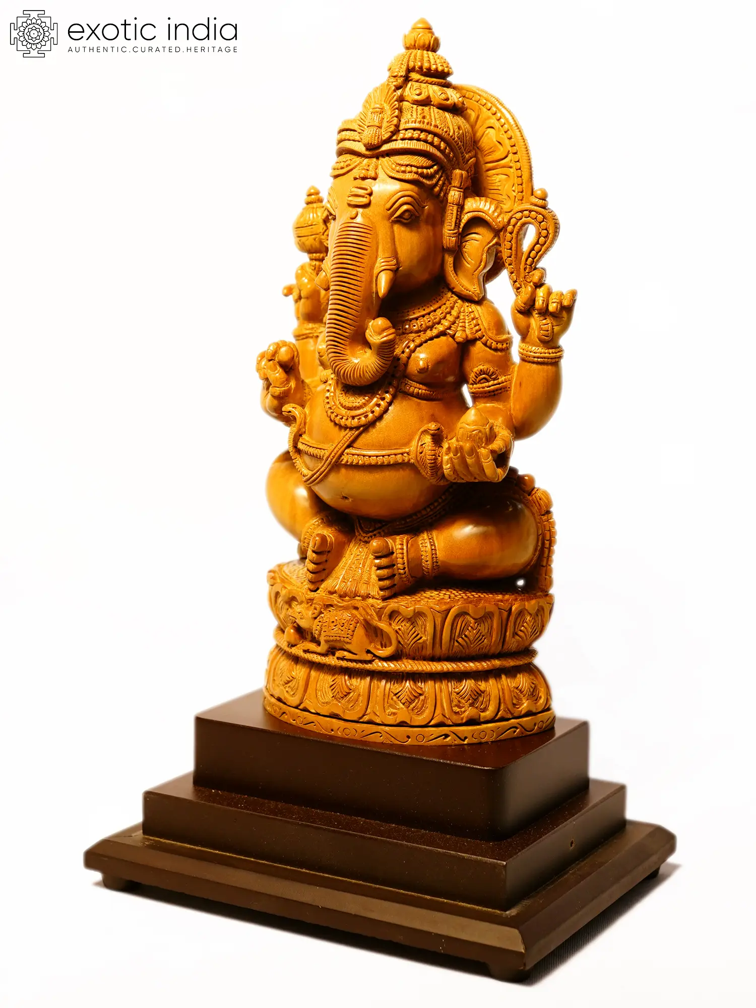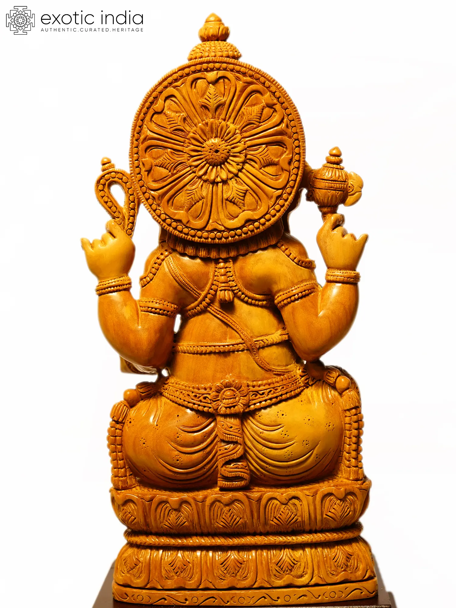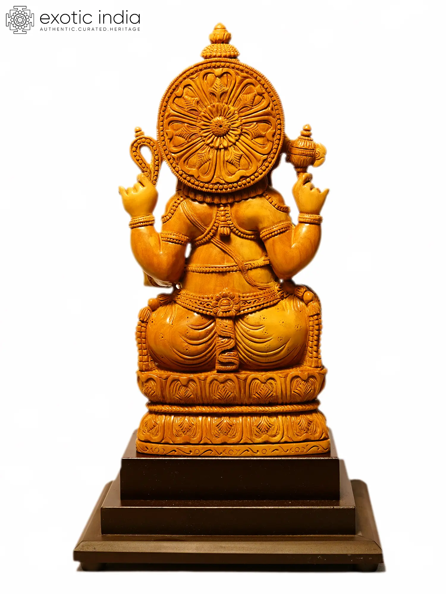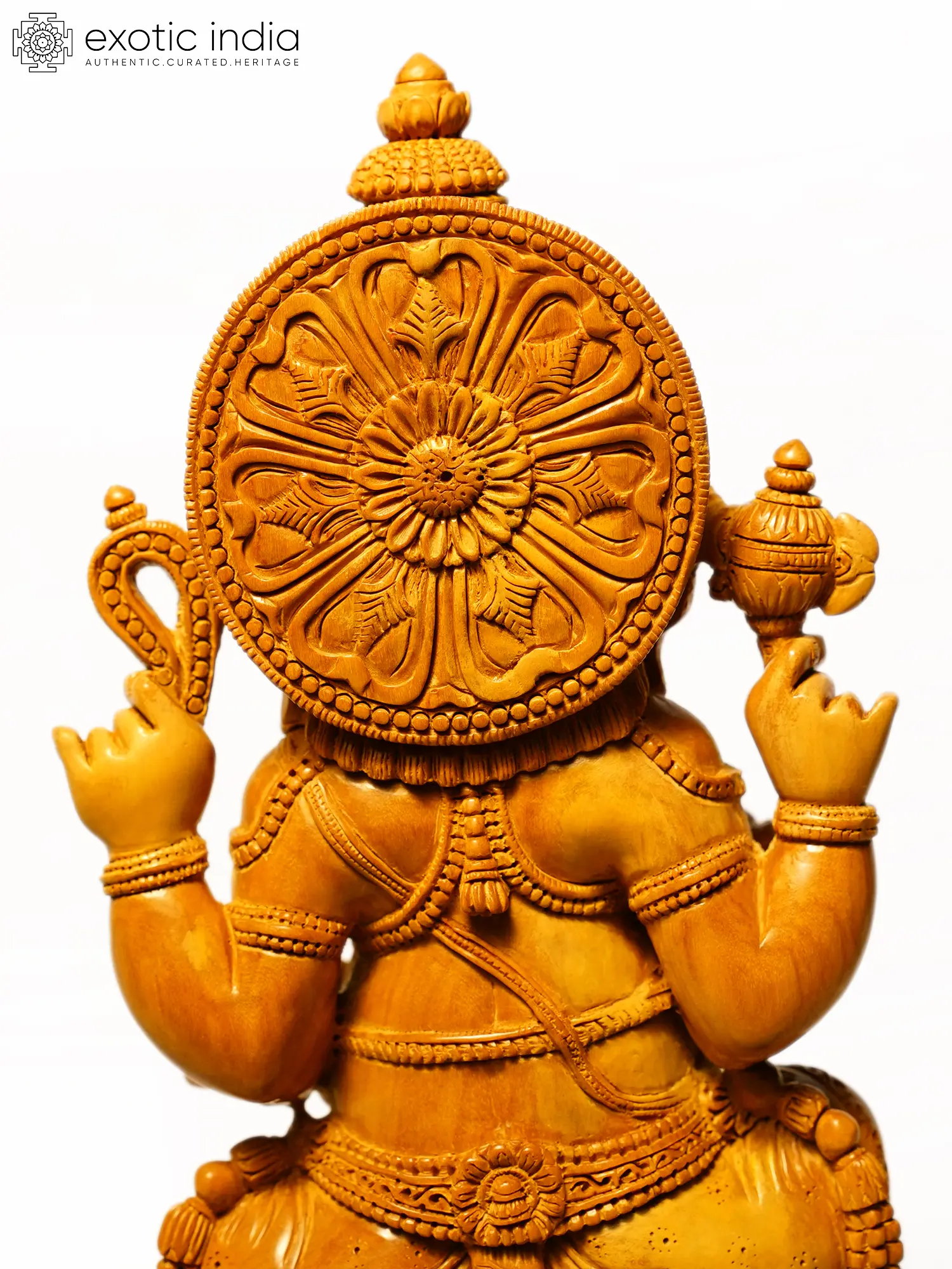 13" Lord Ganesha Seated on Kirtimukha Throne | Sandalwood Carved Statue
