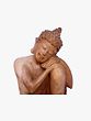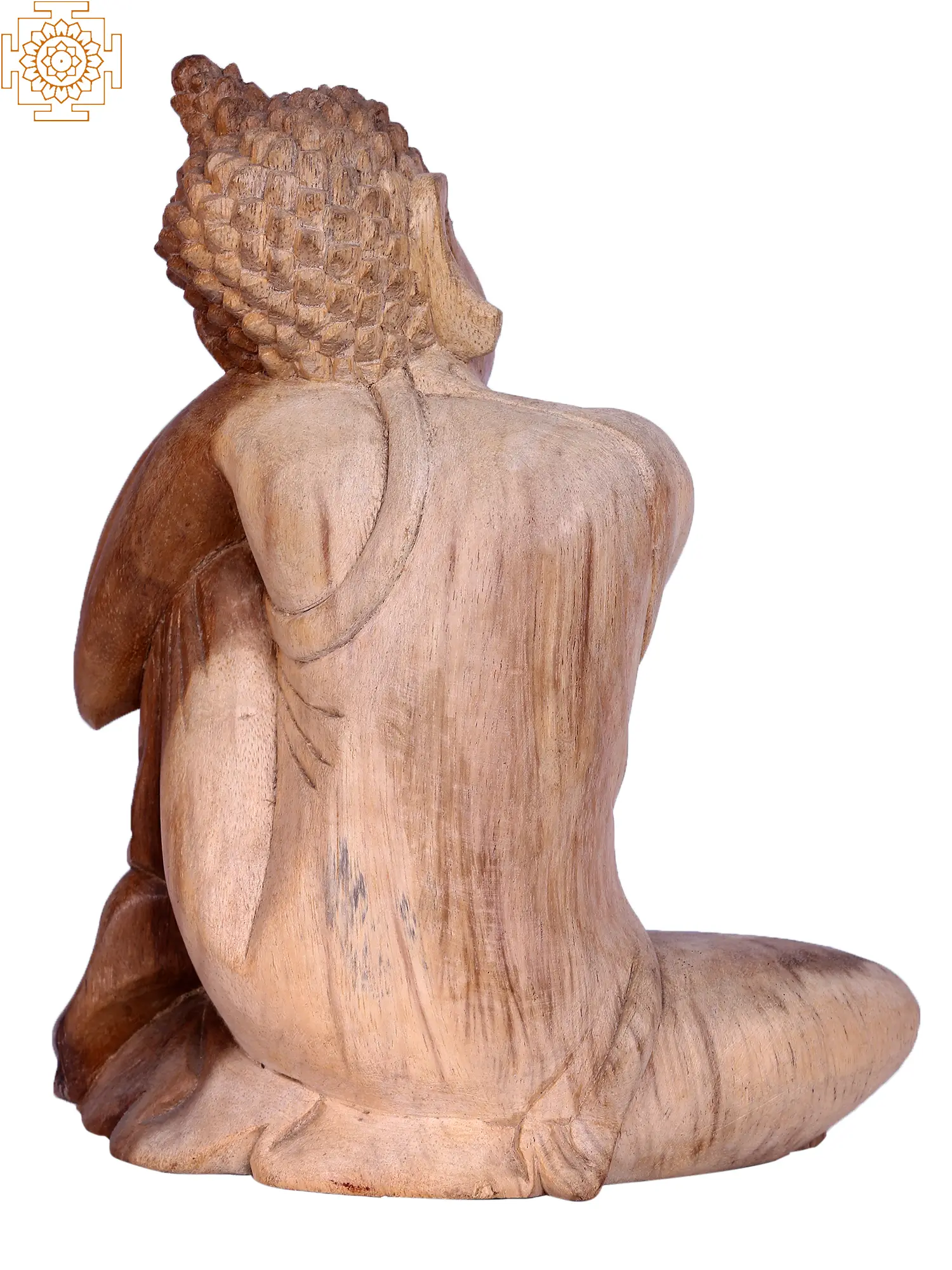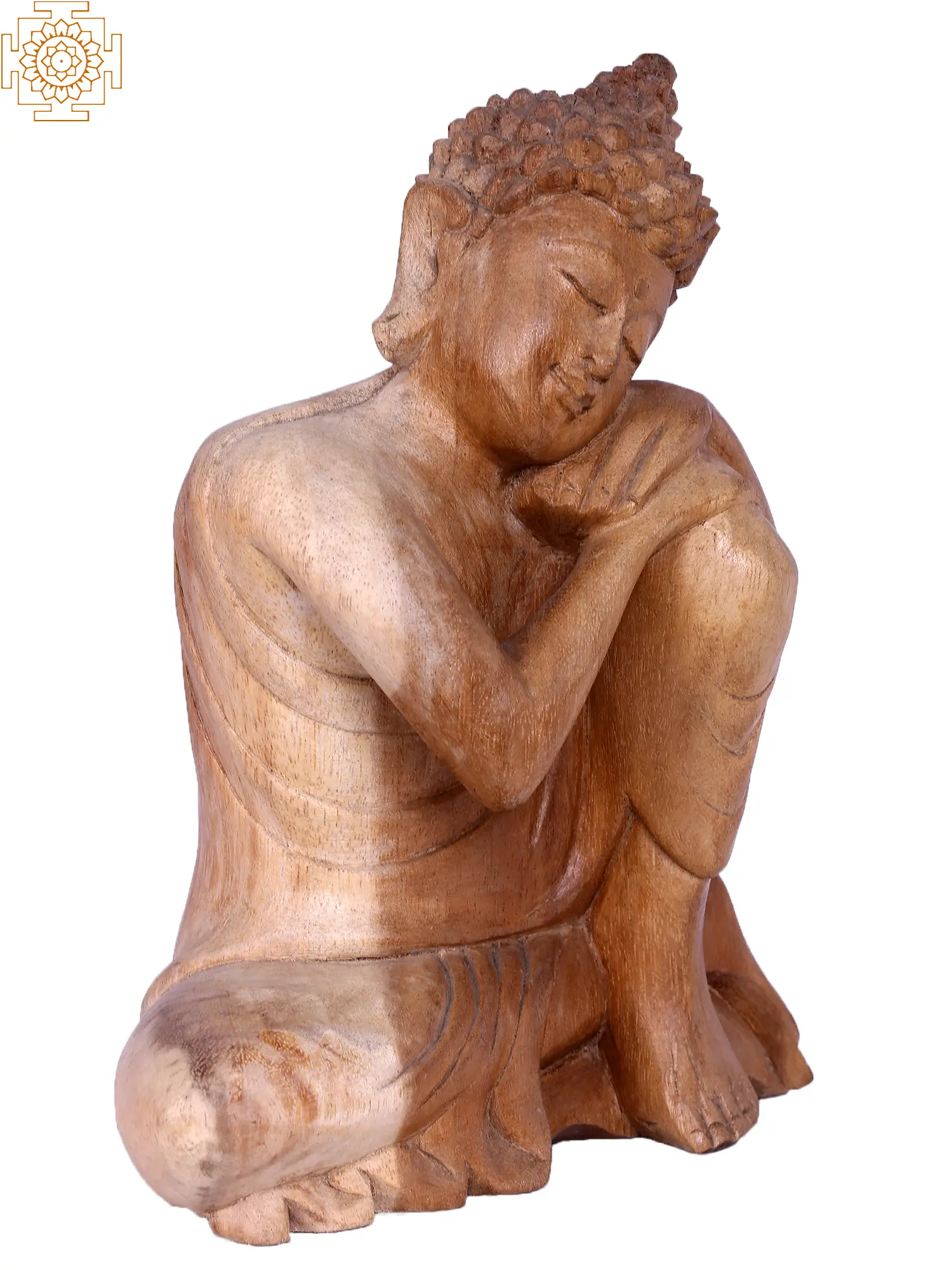 This exquisite wooden statue captures a moment of profound introspection, depicting the Buddha in a posture of deep thought. Carved from natural wood, its warm tones and intricate detailing invite a sense of peace and tranquility into any space. The gentle curve of the body, the soft closed eyes, and the relaxed chin resting on a folded arm all convey a profound stillness, a visual representation of inner peace that transcends worldly concerns. This piece is more than just a decorative item; it is an emblem of mindfulness, a reminder to pause, reflect, and find calm amidst the everyday hustle.