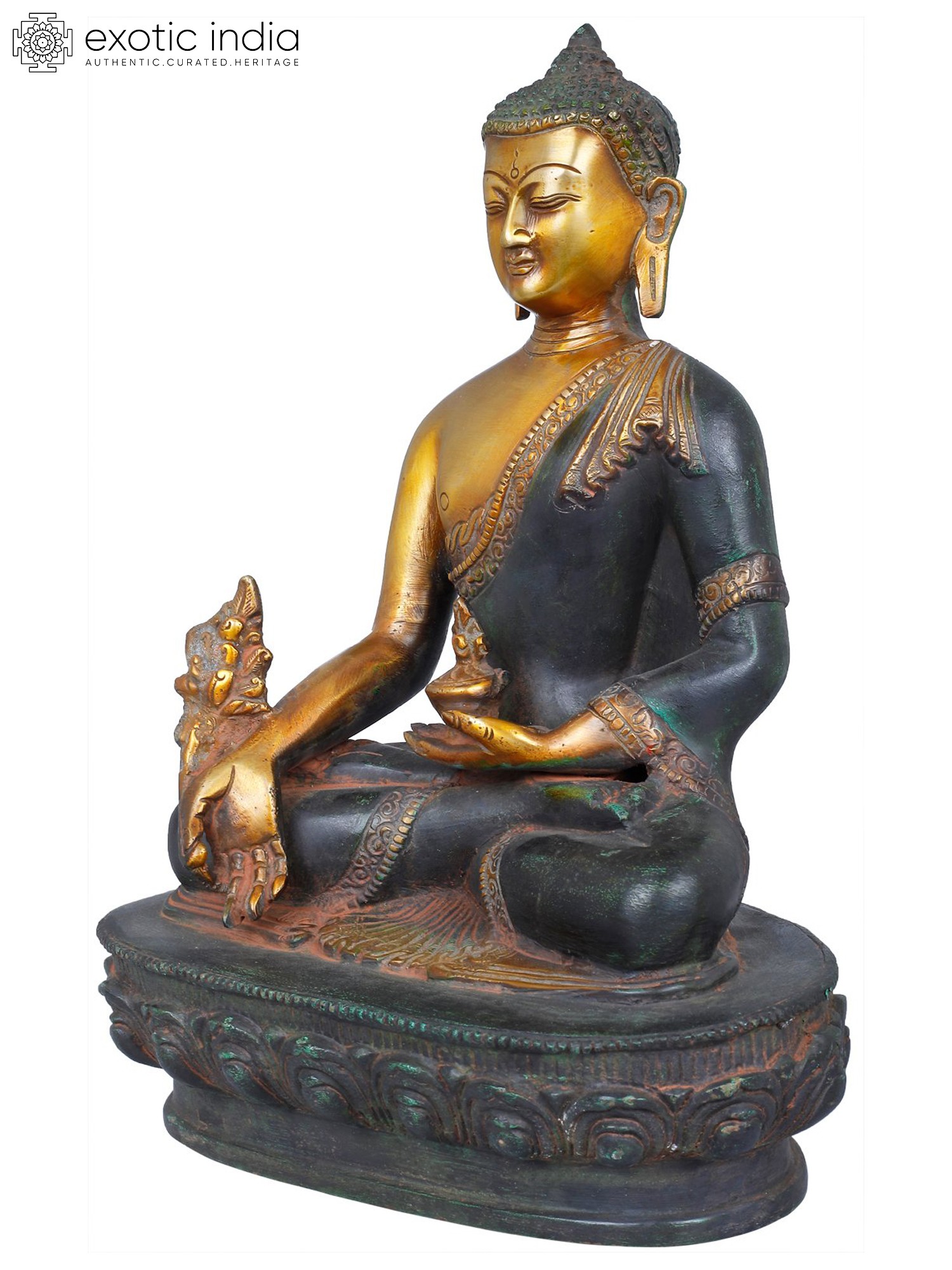 Handcrafted in India, this statue is a testament to centuries-old artistic traditions. The use of brass, a metal valued for its durability and luster, has been a staple in Indian religious art for millennia. The meticulous carving and finishing techniques employed by the artisans bring this divine form to life, capturing the essence of its spiritual power. The serene expression, the graceful posture, and the symbolic attributes are all rendered with remarkable precision. Placing this idol in your home or meditation space can create an atmosphere of tranquility, promote healing, and serve as a focal point for your spiritual practice, inviting the benevolent blessings of the Medicine Buddha.