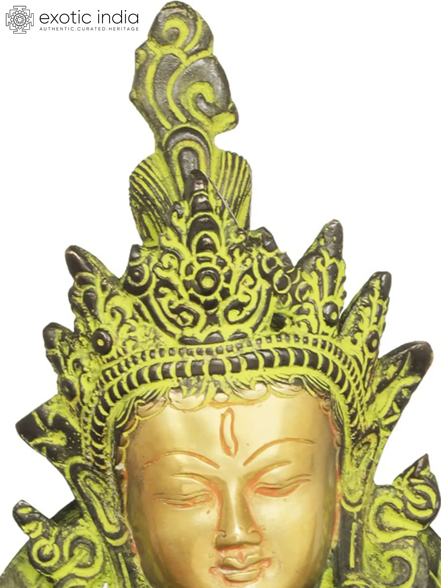 Embrace the tranquillity of Tibetan Buddhist philosophy with this handmade brass statue of White Tara. In Tibetan Buddhism, White Tara is revered as a symbol of compassion, healing, and long life. This beautifully crafted piece, made in India, embodies the essence of Tara's grace and nurturing presence. Display it in your sacred space to invoke her blessings of peace and well-being.