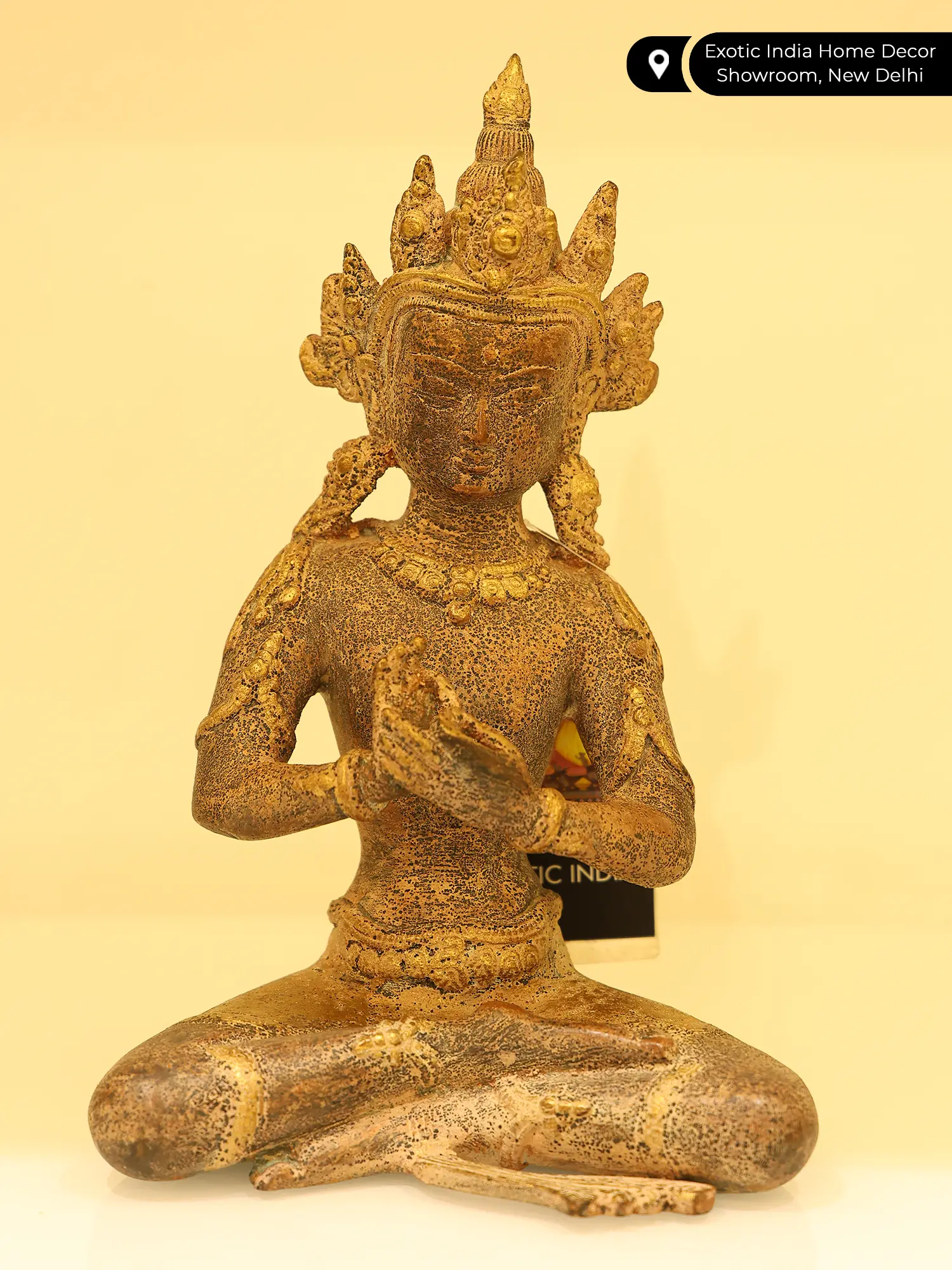 Adorned with intricate details and adorned with sacred motifs, this brass statue captures the essence of Vairocana’s boundless compassion and illuminating presence. His serene expression and poised demeanor excuse a sense of inner peace and tranquility, inspiring all who gaze upon him to embark on their journey of spiritual awakening.