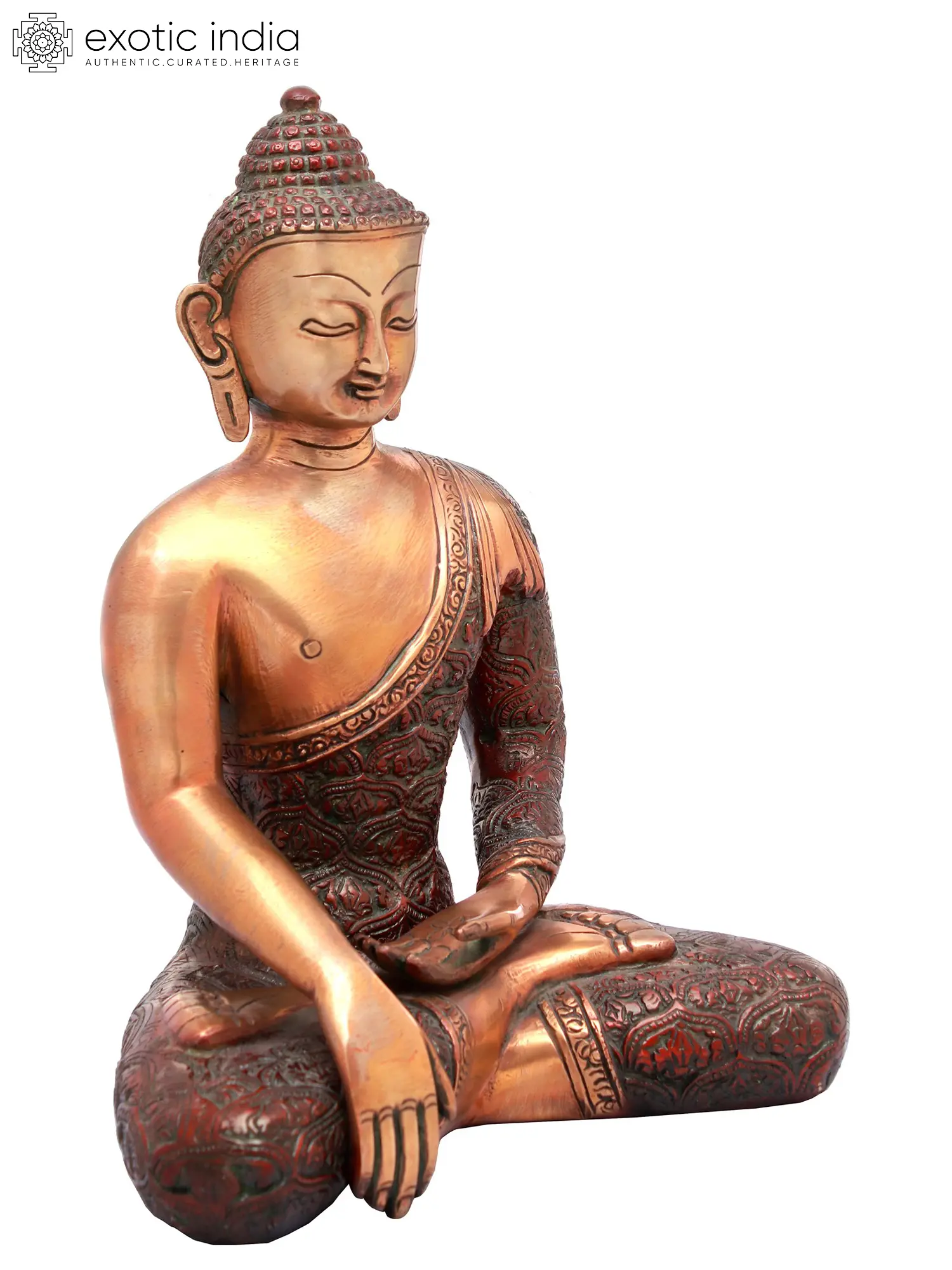10" Vajrasana  Buddha (Robes Decorated with Dorje (Vajra) In Brass | Handmade | Made In India