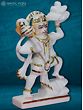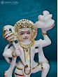 This exquisite 10-inch statue of Veer Hanuman carrying the mountain of herbs is a breathtaking masterpiece crafted from super white Makrana marble. Hanuman, the devoted servant of Lord Rama, is one of the most revered figures in Hindu mythology. Known for his immense strength, unwavering loyalty, and unwavering devotion, he embodies the ideal qualities of a selfless devotee. This statue captures the essence of Hanuman's power and piety in a truly captivating way. The intricate detailing, from the delicate features of his face to the flowing lines of his garments, is a testament to the artisan's skill and dedication. The addition of subtle gold accents enhances the statue's visual appeal, lending an air of regal magnificence. This statue is more than just a decorative item; it's a powerful symbol of faith, resilience, and the indomitable spirit. It is a perfect addition to any home or temple, adding a touch of spirituality and grace.