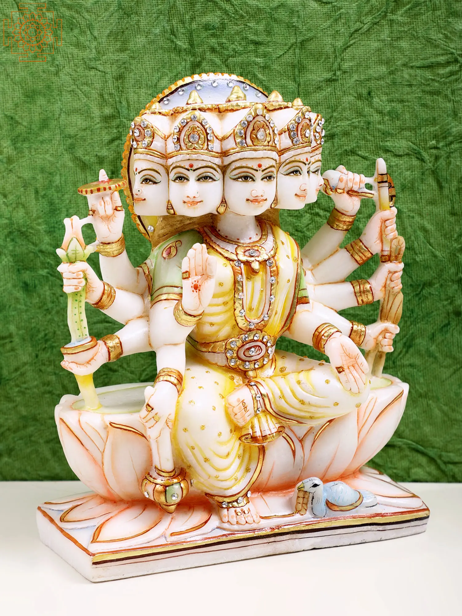 12" Five Headed and Ten Armed Goddess Gayatri | Madhuchista Vidhana (Lost-Wax) | Panchaloha Bronze from Swamimalai