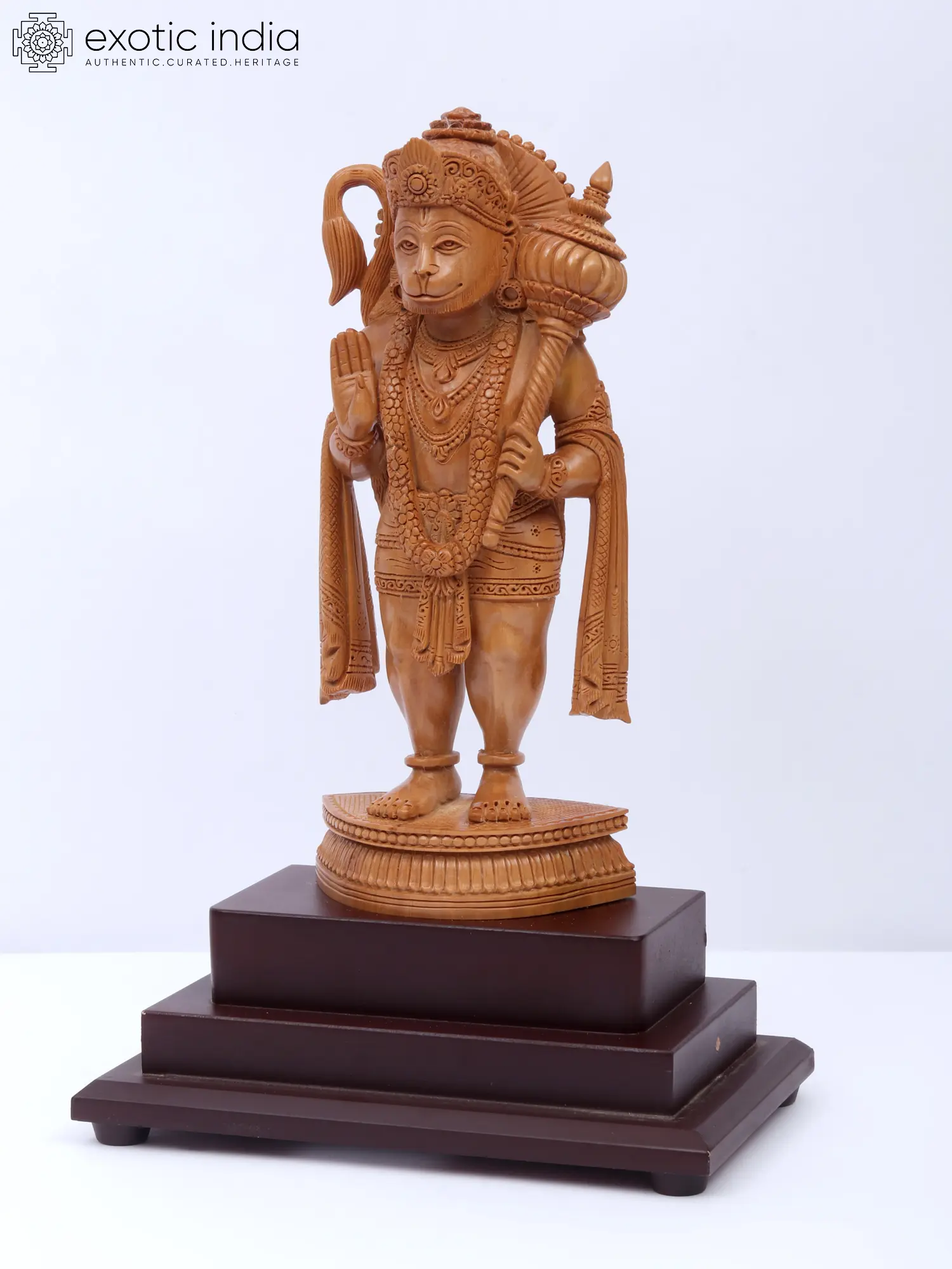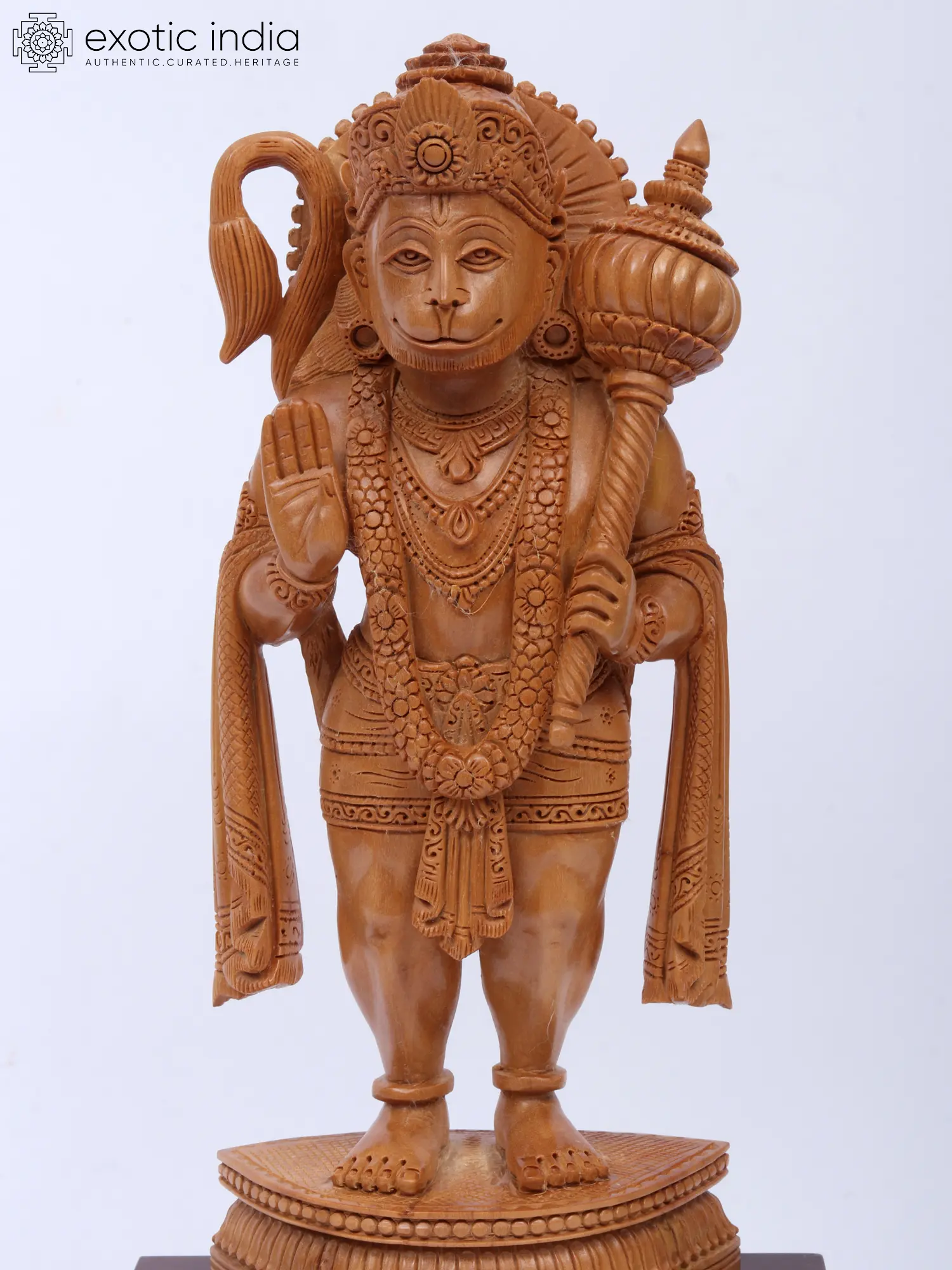 9" Blessing Lord Hanuman | Sandalwood Carved Statue