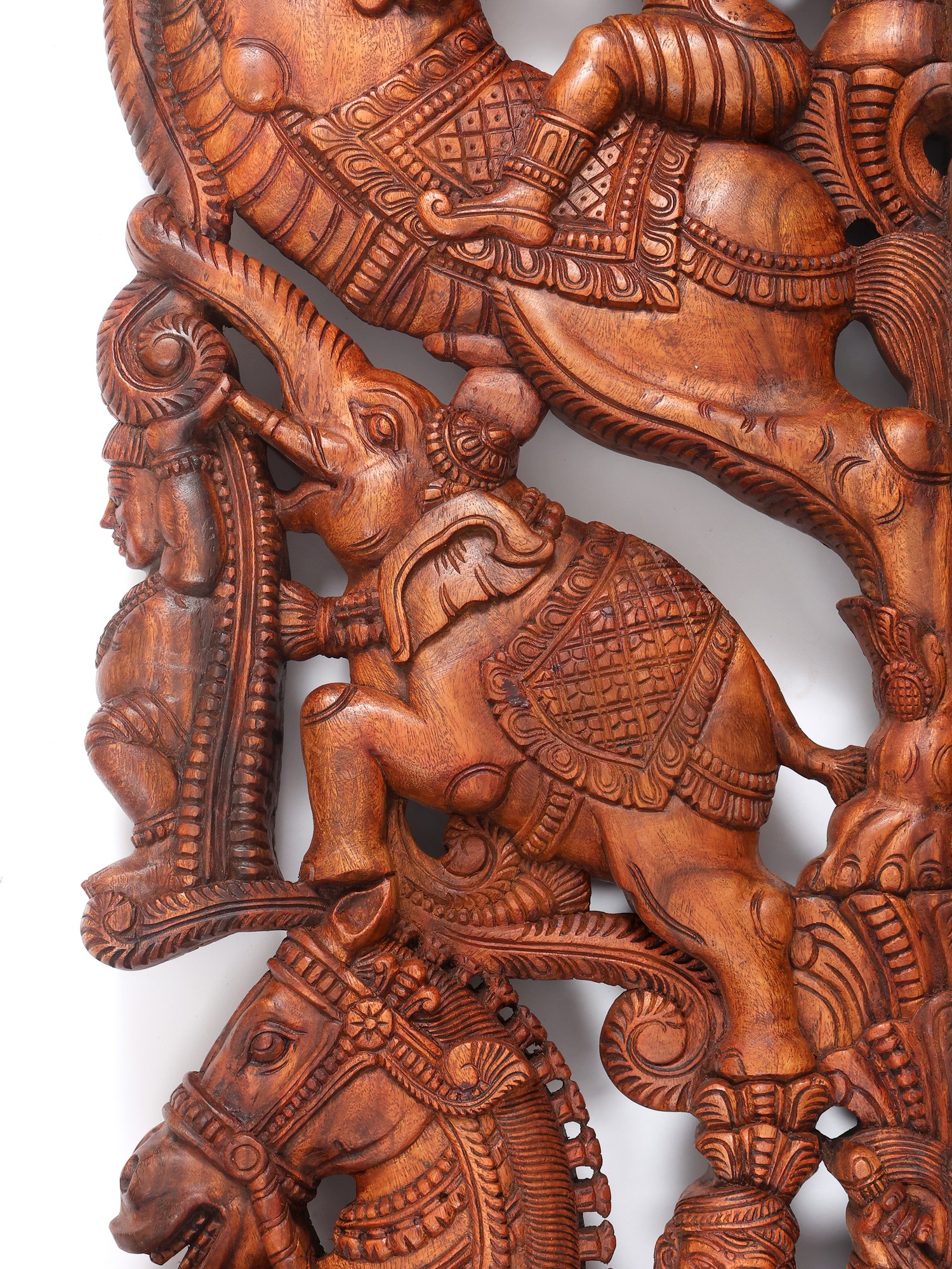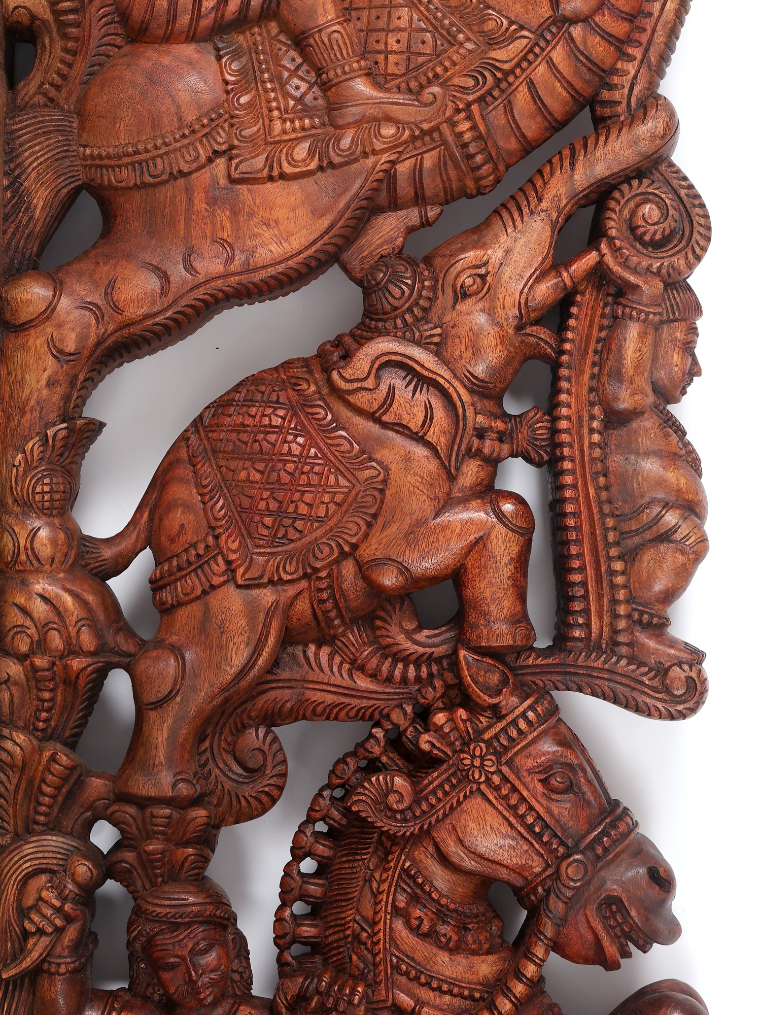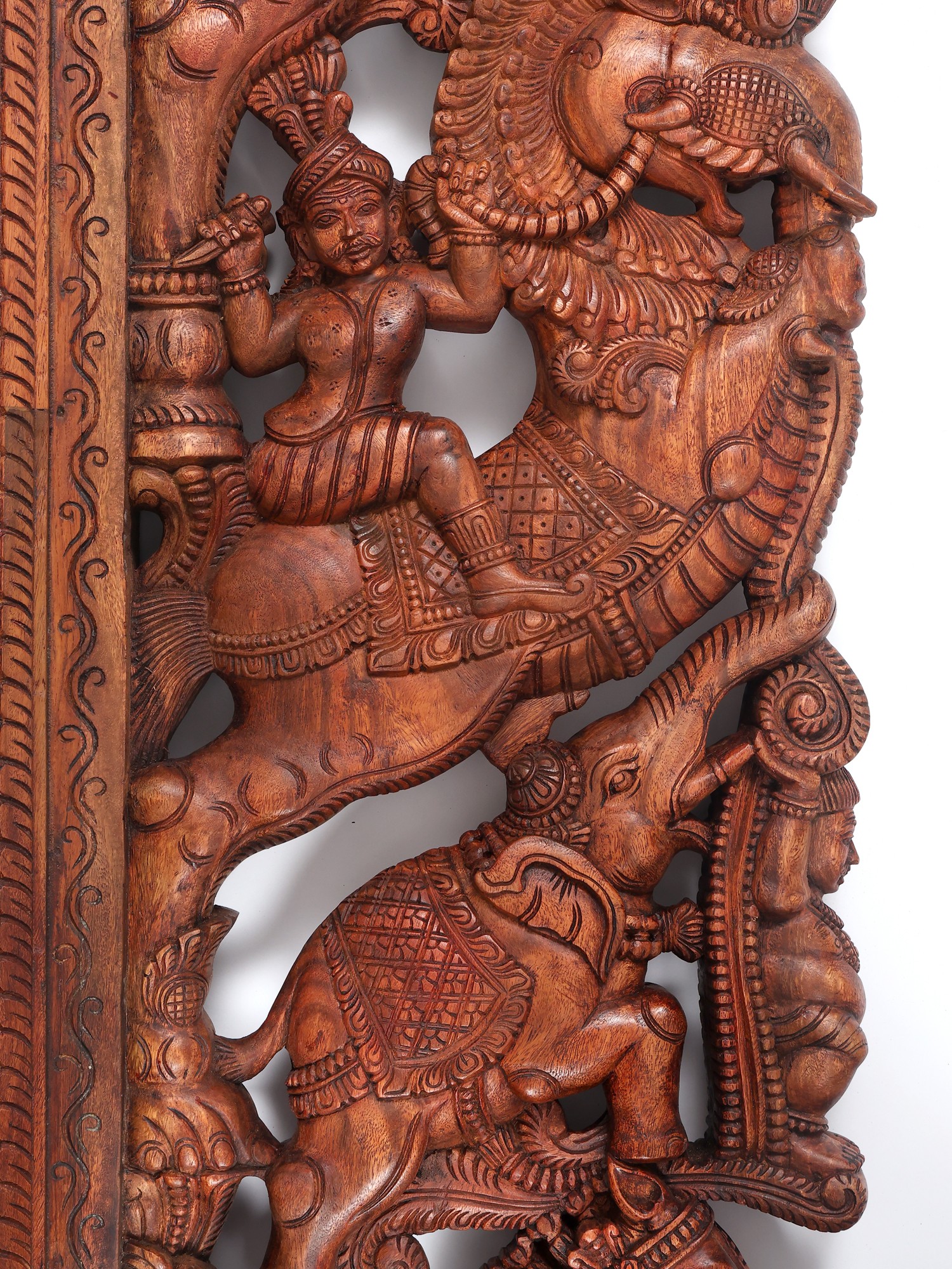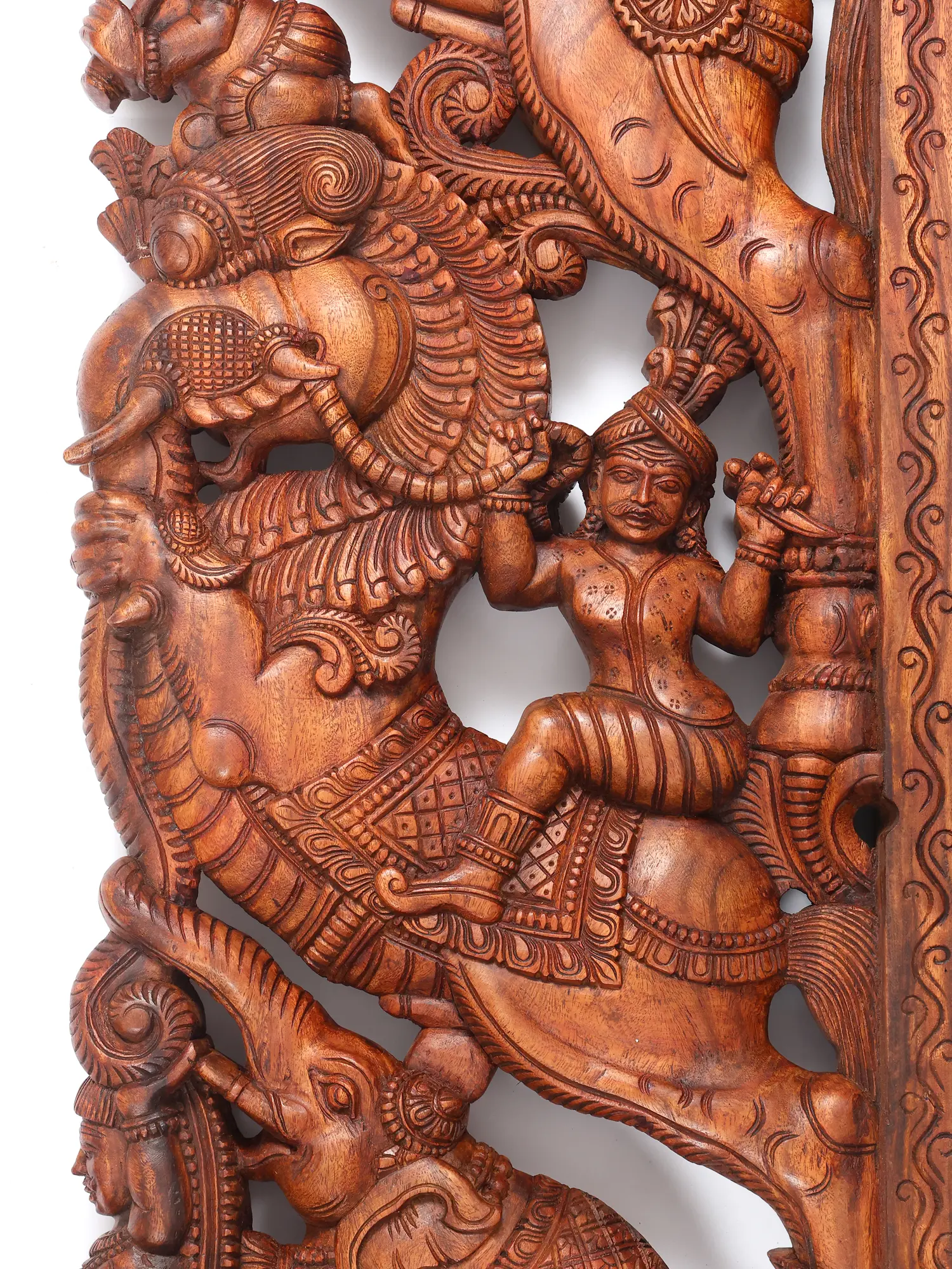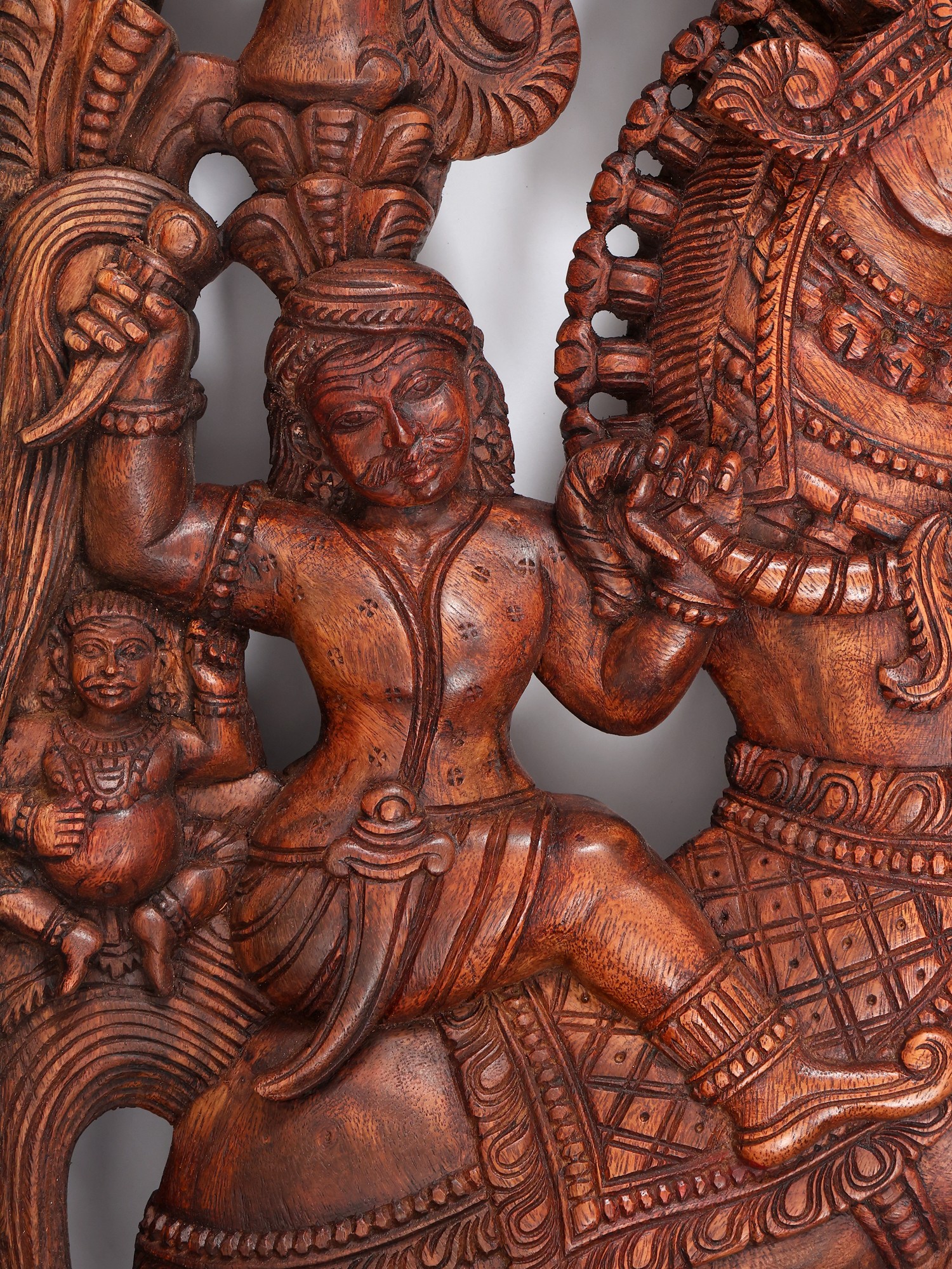 Large Size Temple Wood-Carving Representing Four-Armed Vishnu