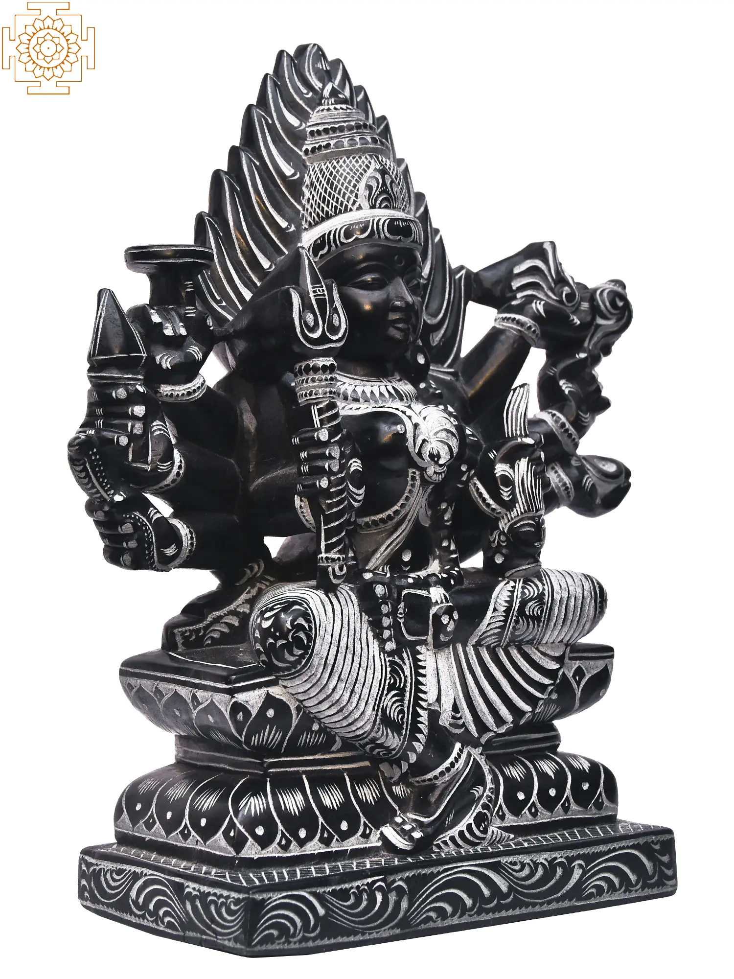 15'' Seated Goddess Ten-Handed Kali | Stone Statue