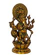 Embrace the power and wisdom of Lord Ganesha, the beloved elephant-headed deity revered as the remover of obstacles and the bestower of good fortune. This exquisite brass idol, meticulously handcrafted in India, captures the divine essence of Ganesha in a truly magnificent form. Standing eleven inches tall, this piece is not merely a decorative item but a conduit of spiritual energy and artistic mastery. The idol depicts Ganesha with his characteristic compassionate gaze and a serene expression, seated upon a vibrant lotus pedestal, symbolizing purity and spiritual awakening. His eight arms are adorned with various potent symbols, each signifying different aspects of his divine power. In some hands, he holds a noose and an ankusha (goad), representing control over desires and the guidance towards righteous paths. Other hands might display a broken tusk, a testament to his sacrifice and strength, or a modak (sweet dumpling), his favorite delicacy, symbolizing the rewards of devotion. The intricate detailing throughout the sculpture, from the divine crown to the ornate jewelry, speaks volumes about the artisan's skill and dedication to bringing this sacred form to life. ––––––––––––––––––