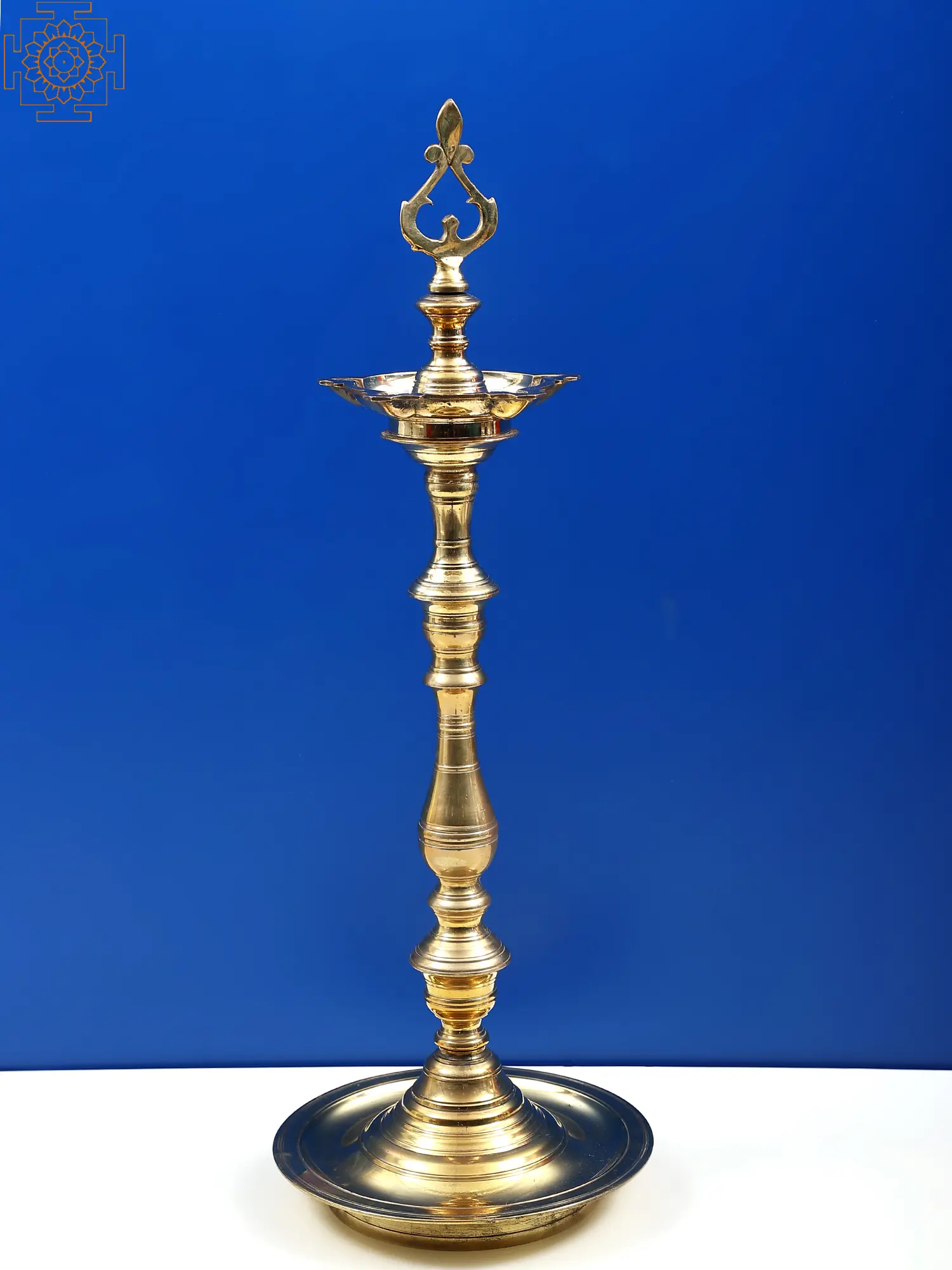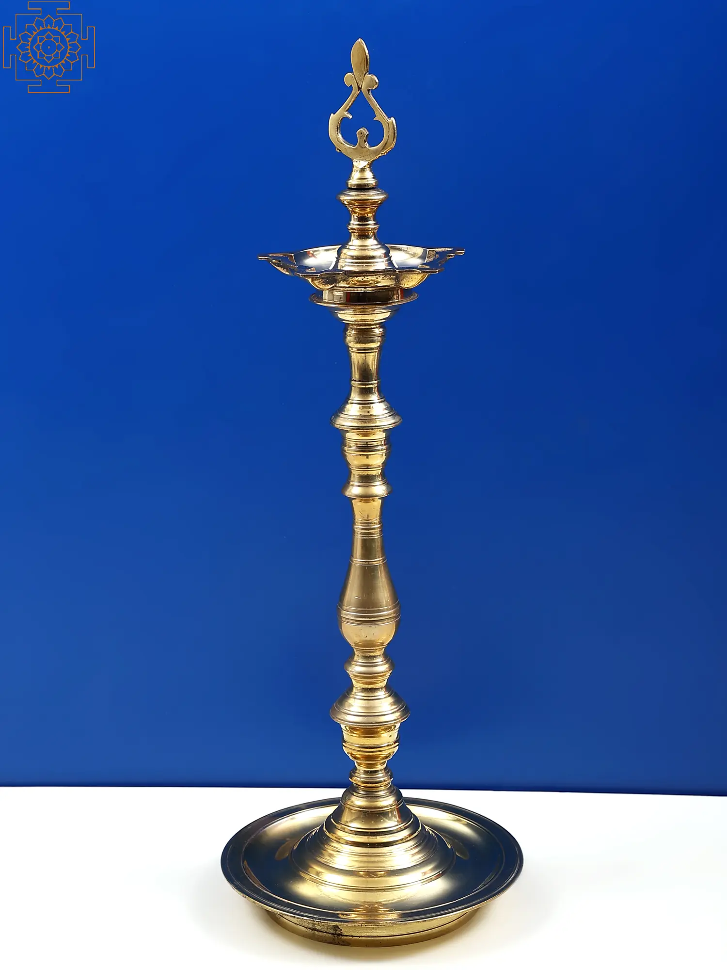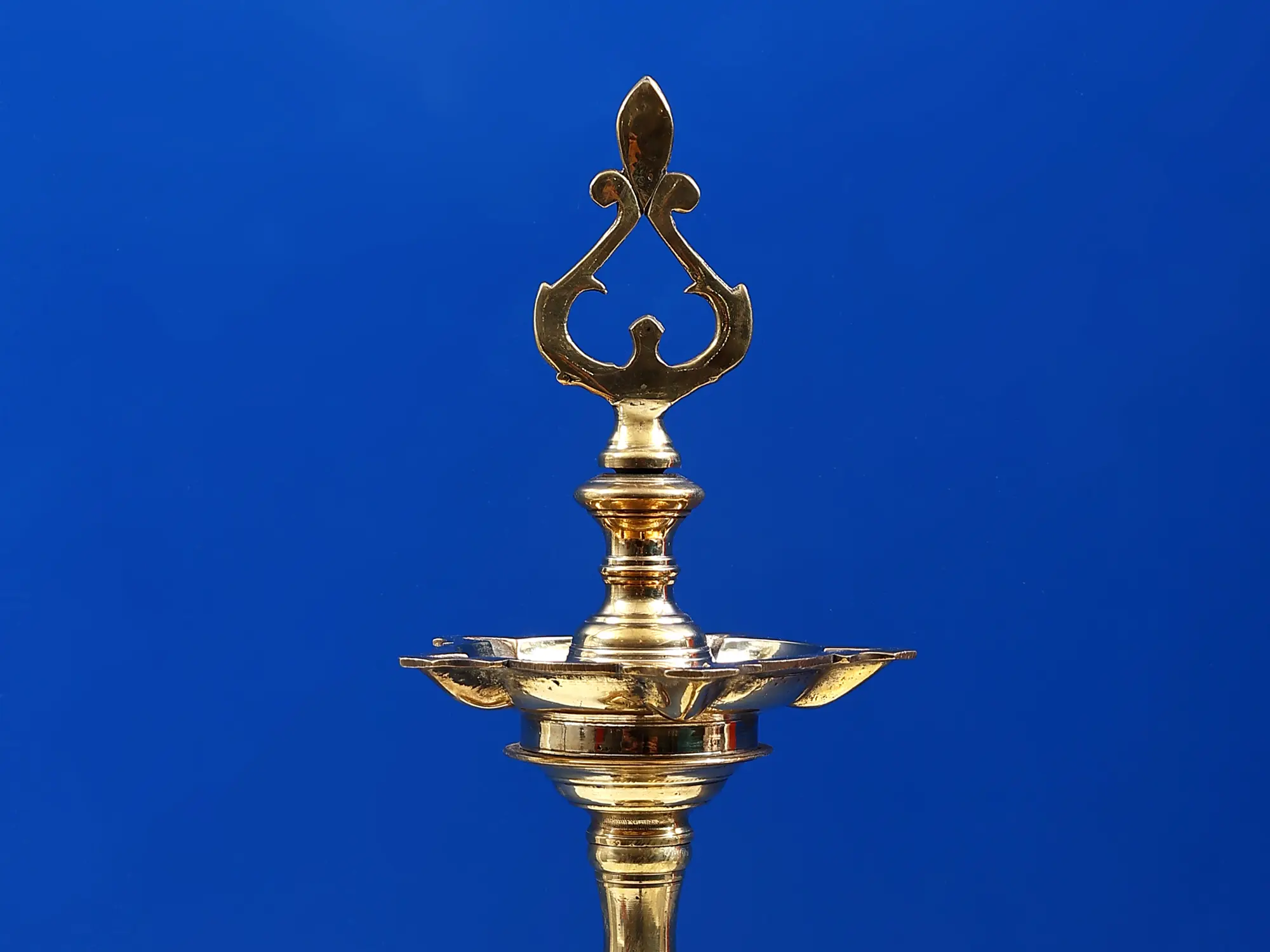 Kuthu in Tamil means to stand straight, while vilakku is light. This Kuthu Vilakku, is an ancient oil lamp made of brass, with a very plain crown. These lamps have been in use since the Chola era, around the 10th century CE. They typically consist of four screwed-together components. "Keezhbagam" is the name of the base plate, "kandam" is the name of the pivotal pillar, "Thanguli" is the name of the oil well with five or seven wicks, and "Prabhai" is the name of the crown. Since ancient times, these lights have been employed specifically for festive decorations in temples and have been regarded as sacred. This lamp embodies both the benevolence of a lamp and the long-standing traditions of lamp crafting.
