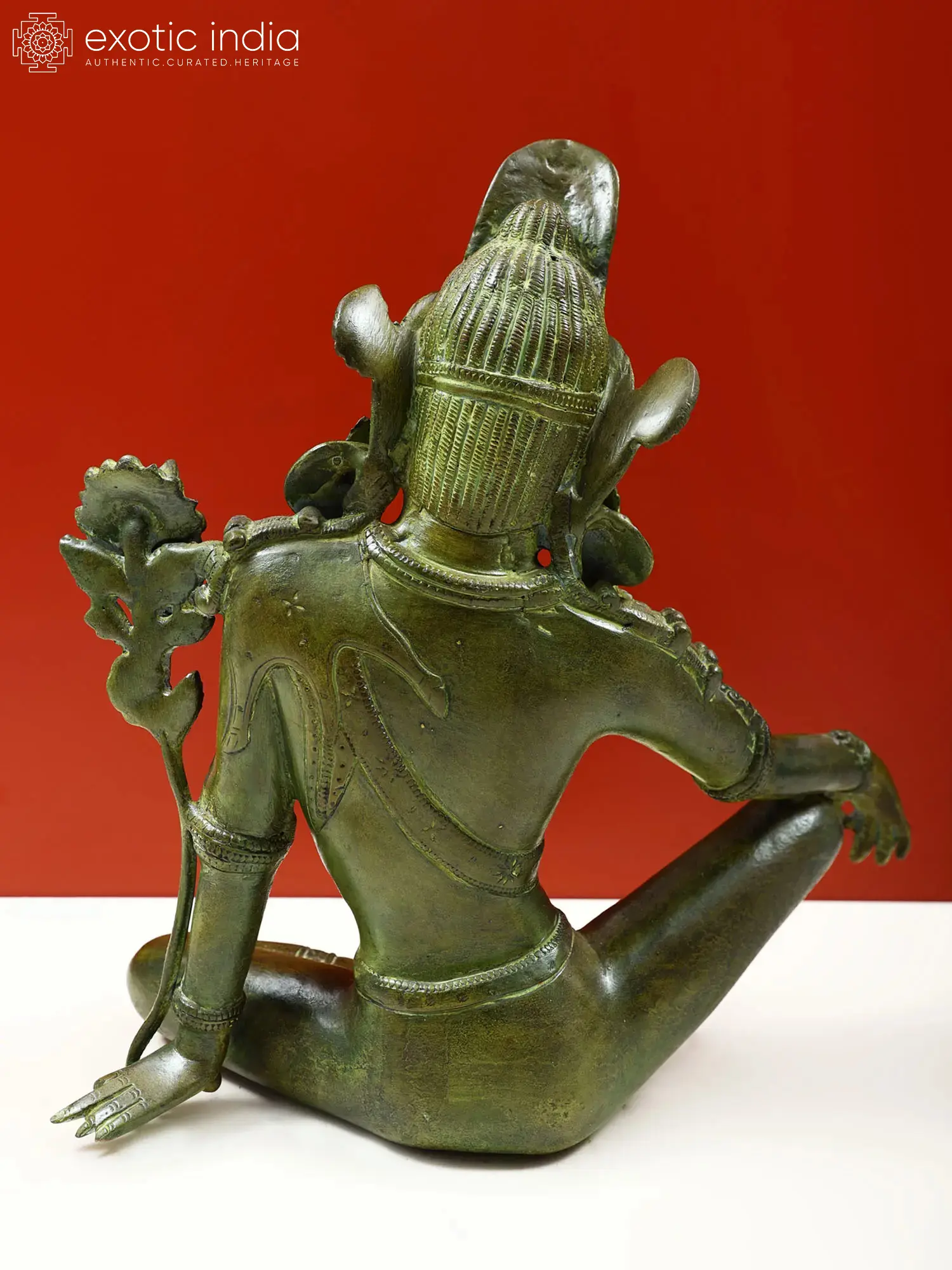 The artist's skill is evident in every aspect of this handmade creation. The dynamic yet balanced pose, with one leg drawn up and the other extended, conveys a sense of relaxed power. The musculature is subtly suggested beneath the flowing garments, adding to the lifelike quality of the figure. The textures are varied, with smooth skin contrasting with the richly patterned adornments and the sharp details of the headdress. This piece is not merely a decorative object but a tangible representation of divine power and spiritual aspiration, crafted from durable brass to be a timeless addition to any sacred space or art collection. Its presence is sure to inspire awe and a sense of connection to ancient traditions.