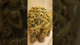 This one-of-a-kind elephant comes in two-bitone and two monotone finishes. Against the base colours of green, gold, and deep earthy brown, the bare torsos of the dhoti-clad women are executed in golden, the natural colour of pure brass.
