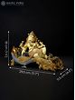His belly is adorned with a serpent belt, while beautiful arm belts and shoulder pads painted in gold add to his majestic appearance. He holds the goad and noose in his upper hands symbolizing his control over the appearance of fortunate events in the life of his devotees.