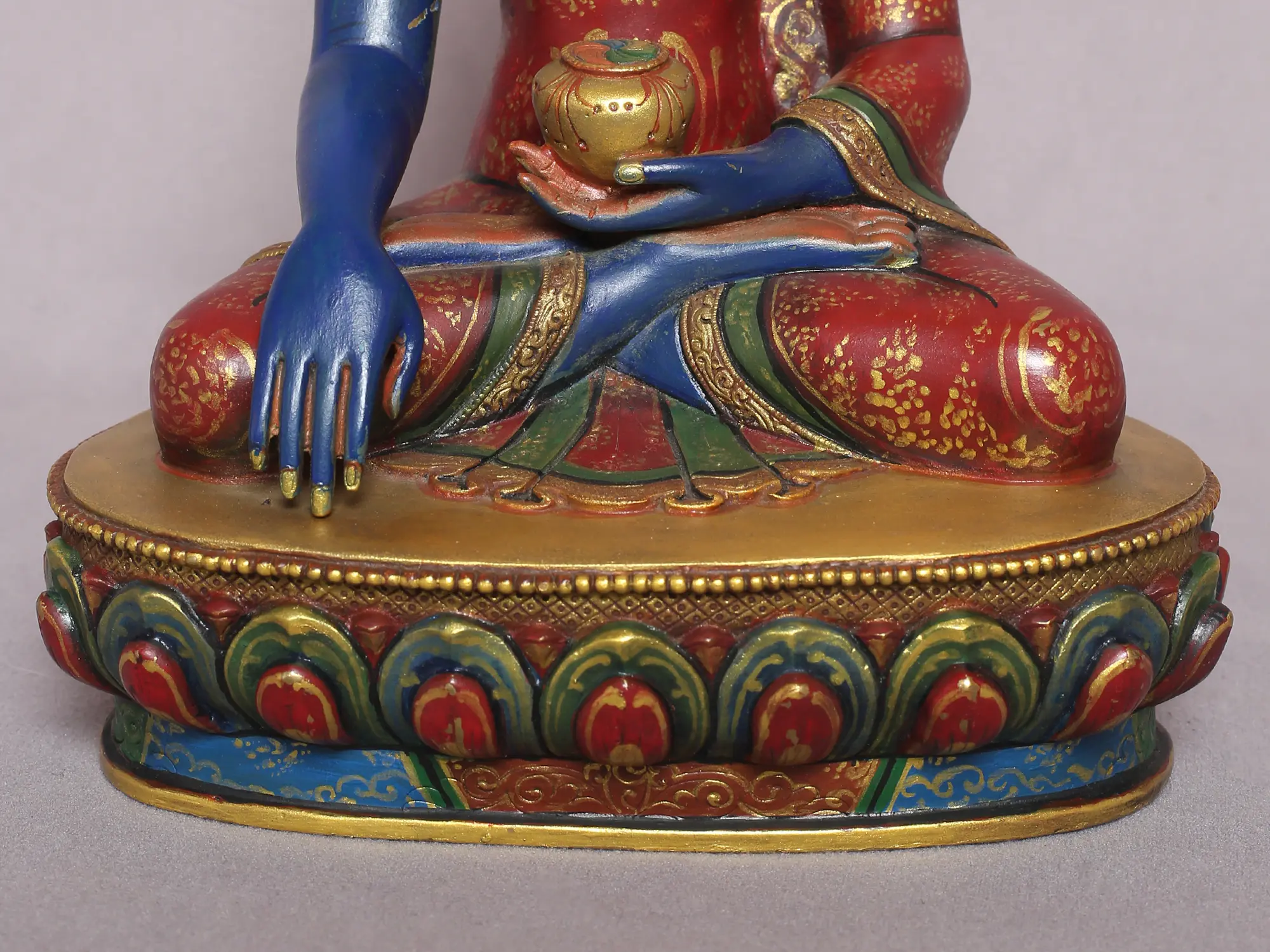 The meticulous craftsmanship evident in this statue is a testament to the skill passed down through generations of Nepalese artists. The subtle modeling of the features, the delicate rendering of the robes, and the vibrant application of pigments all contribute to the statue's lifelike yet profoundly spiritual quality. The gold gilding catches the light, imbuing the figure with a divine radiance. Owning such a piece is not only acquiring a beautiful work of art but also a spiritual artifact that carries the blessings and intentions of its creators, a tangible connection to the enduring legacy of Buddhism and the timeless message of compassion and wisdom.