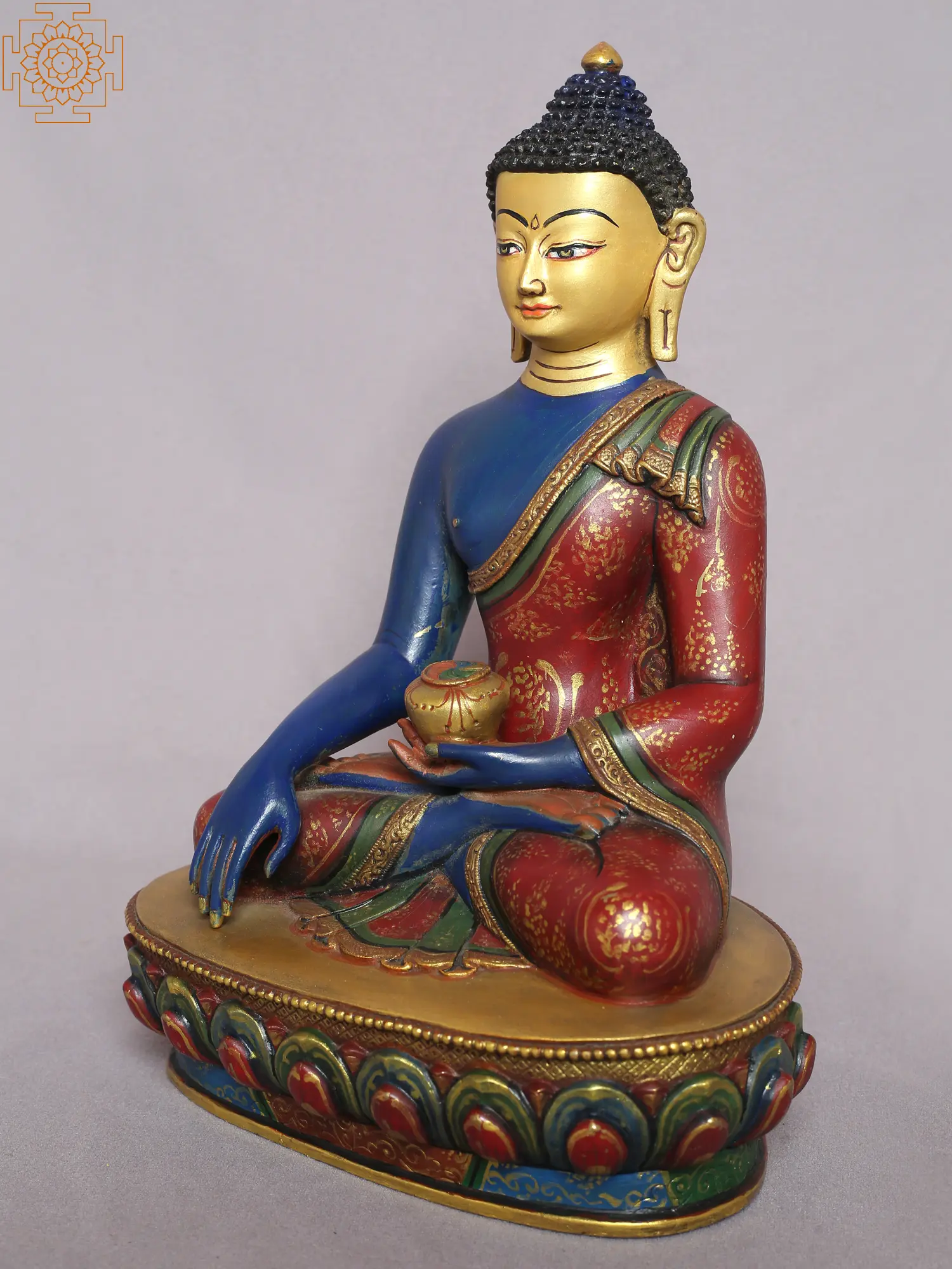 11" Colorful Shakyamuni Buddha Copper Statue from Nepal