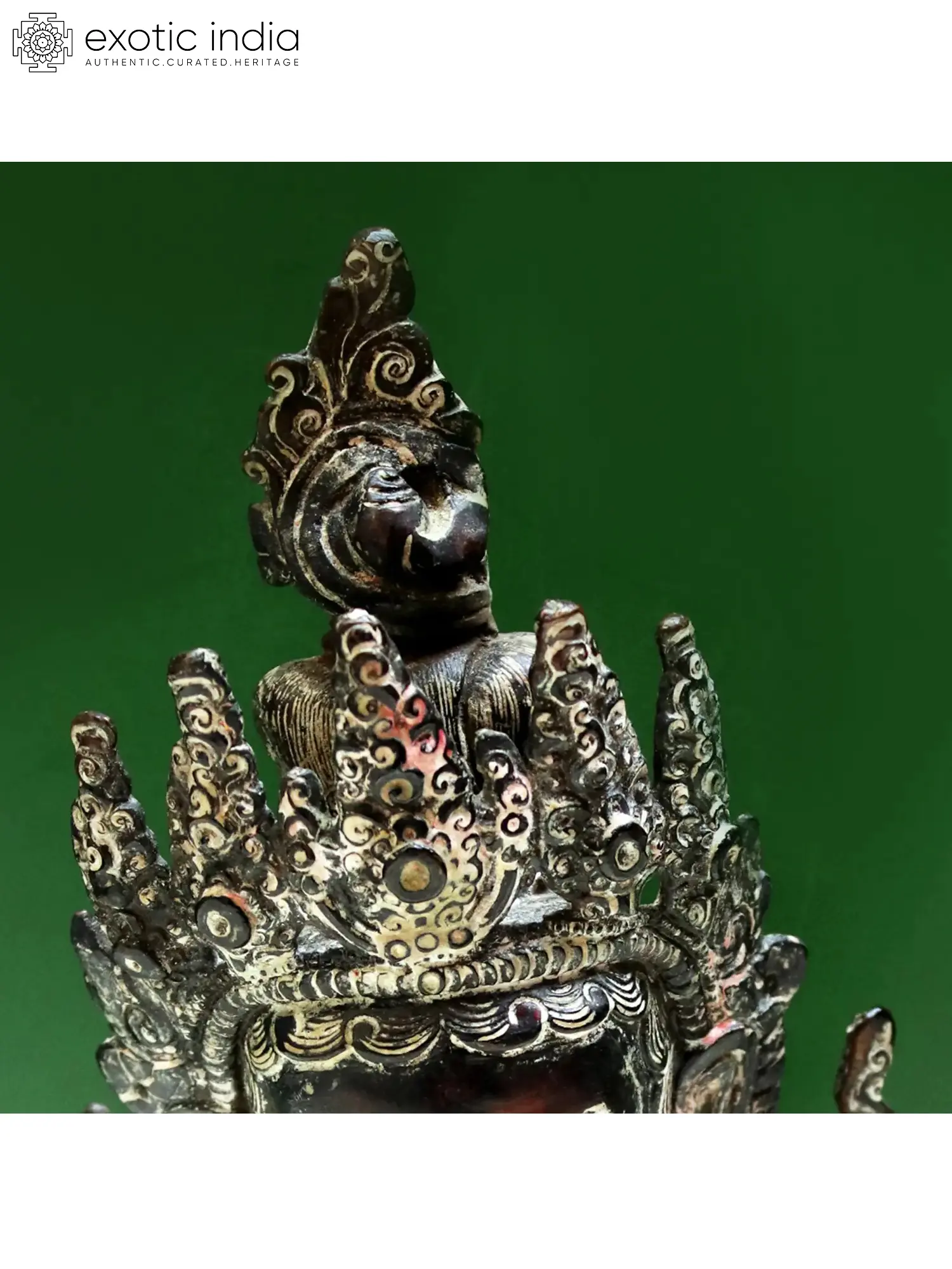 A Buddha head sculpture is an ode to the wisdom of the Tathagata, which resides in his enlightened mind. This copper statue of Buddha from Nepal depicts him with a regal crown, a symbol of the sovereign powers of the Buddha. As the enlightened one, Buddha becomes the sole ruler of all realms, ruling not with violence or strength of the body but with the superiority of the mind. The copper artwork sculpted in Nepalese idiom has a beautiful meditative quality, marked by the closed eyes of Buddha and his gentle expressions.