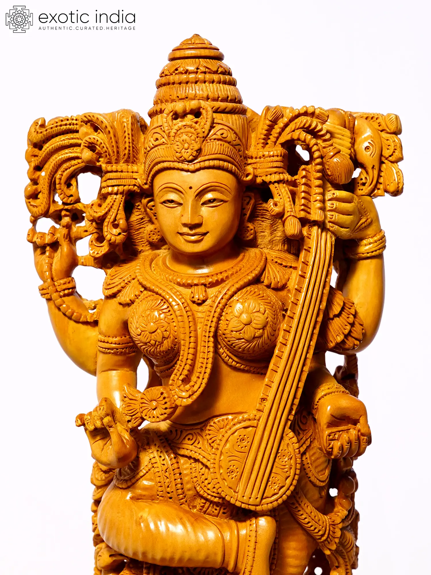 8" Devi Saraswati Idol | Hindu Goddess Brass Statue