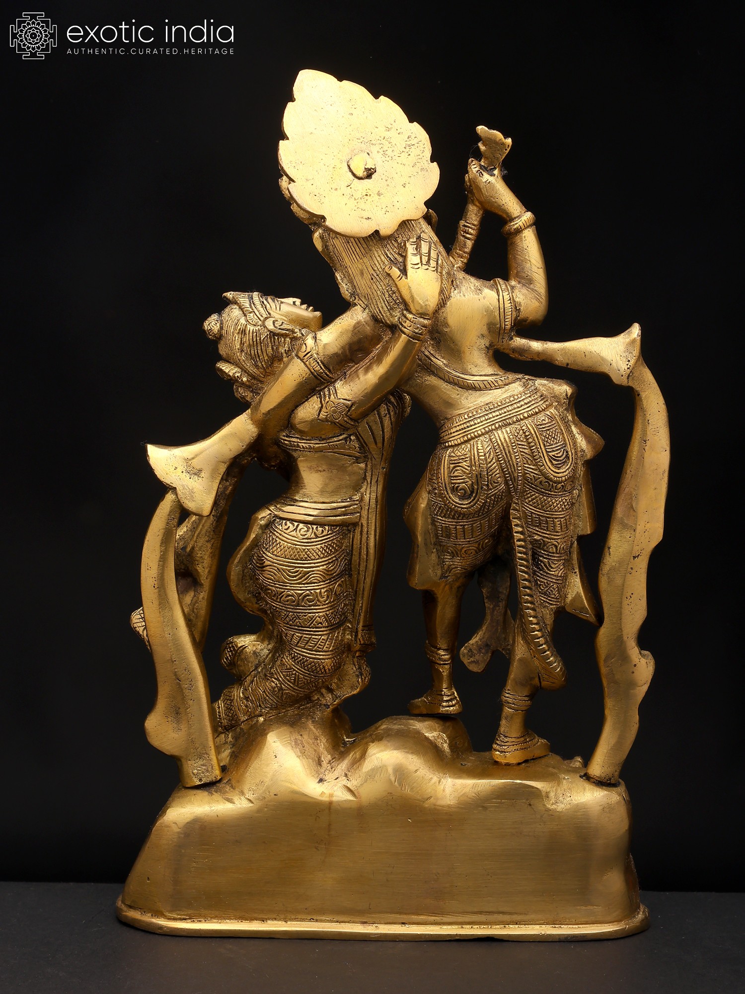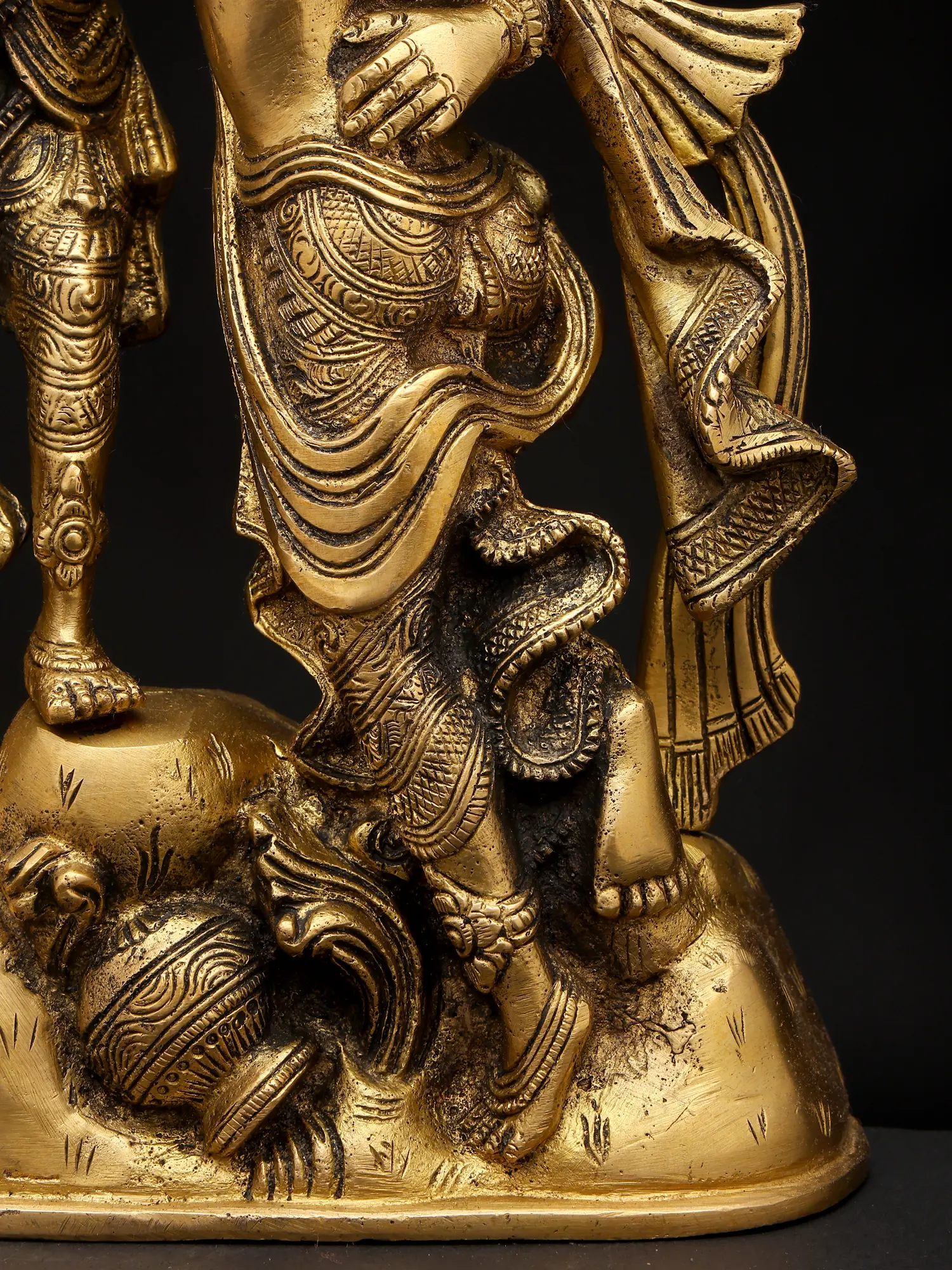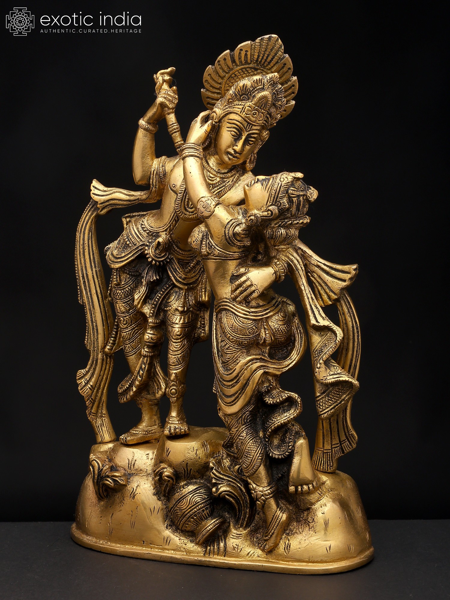 22" Divine Pair of Radha Krishna Brass Statue with Cow and Peacock