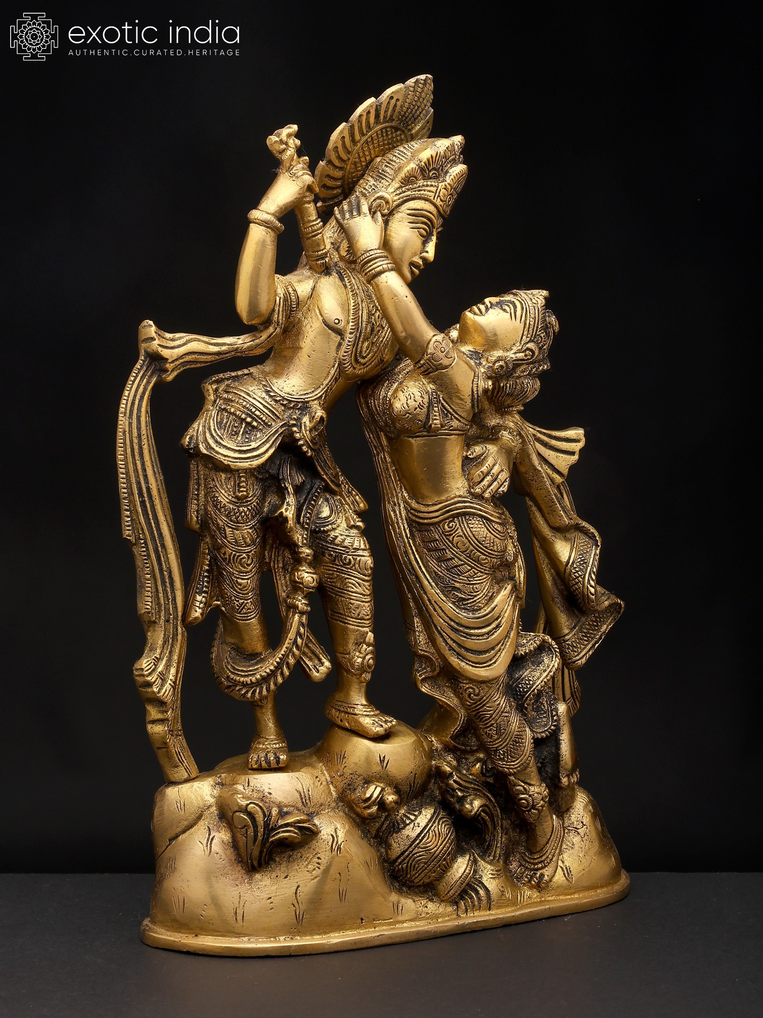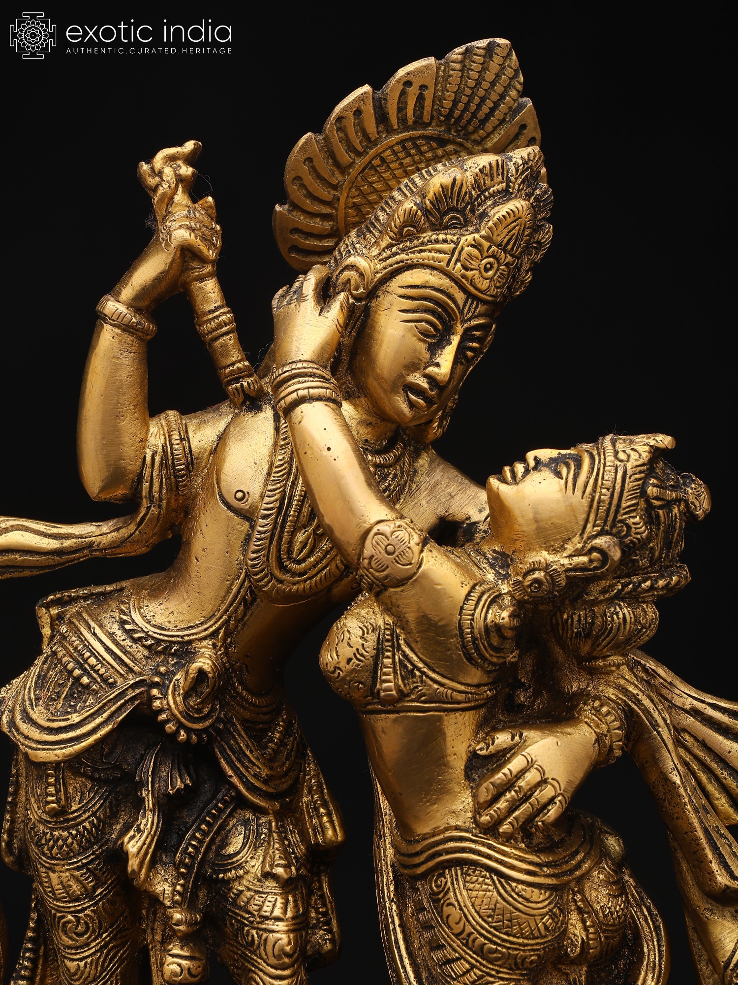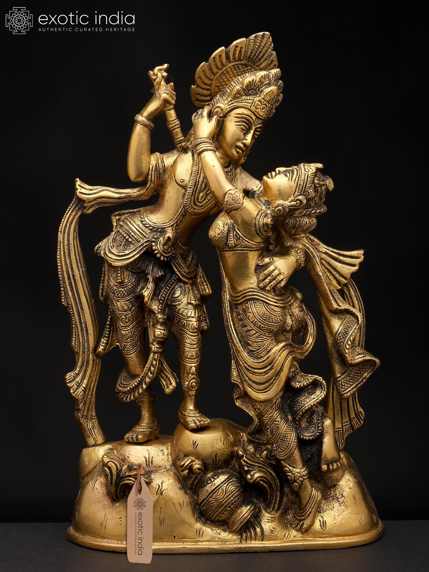 22" Divine Pair of Radha Krishna Brass Statue with Cow and Peacock