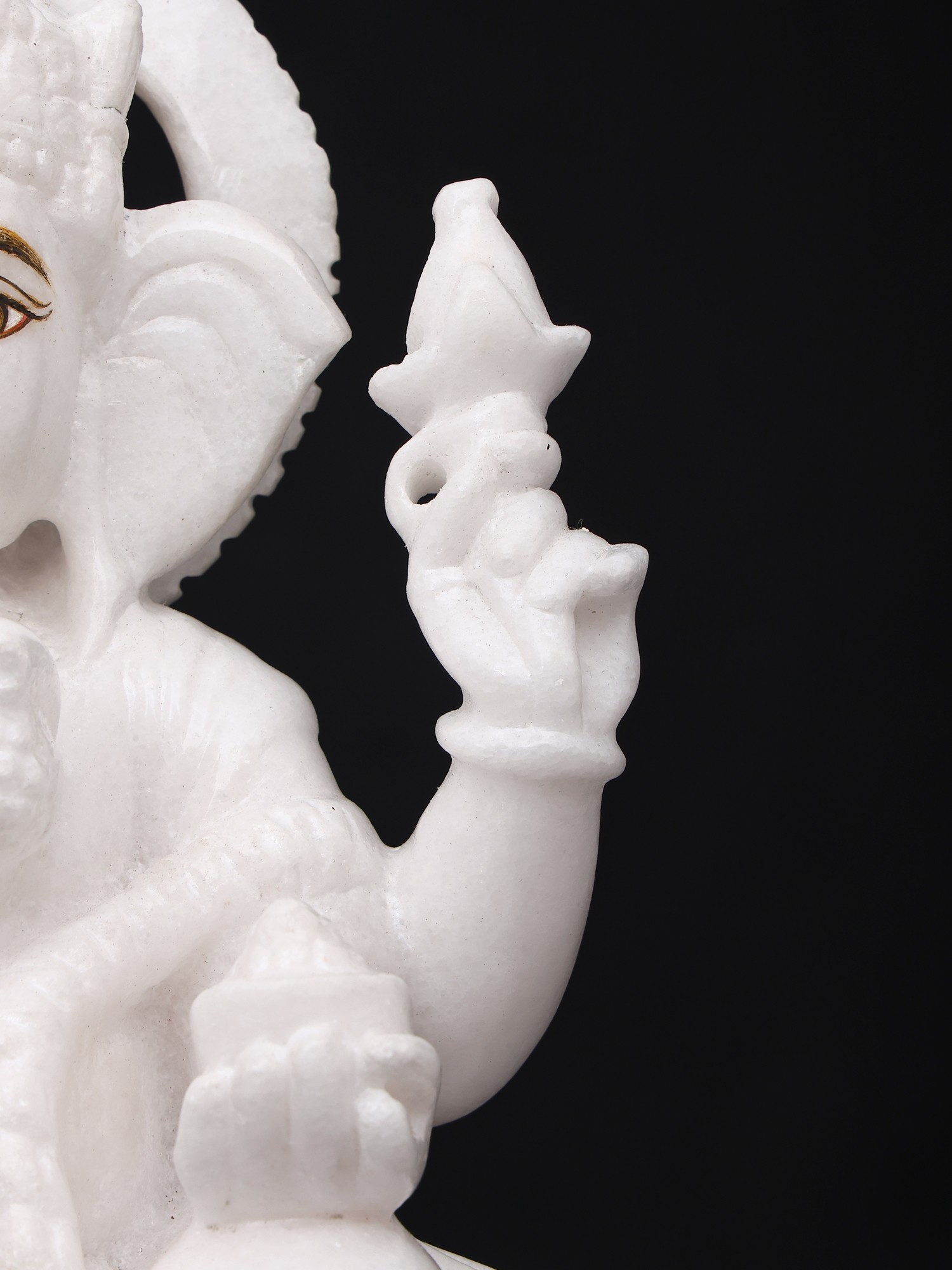 10" Lord Ganesha Seated on Lotus | Handmade | White Marble Ganesh Statue | Ganpati | Ganesh Murti | Vinayak