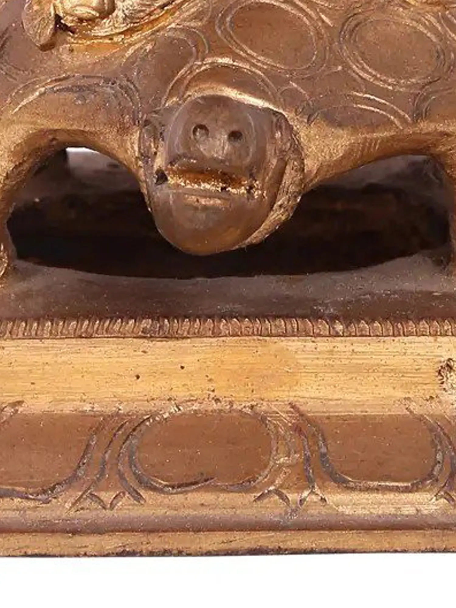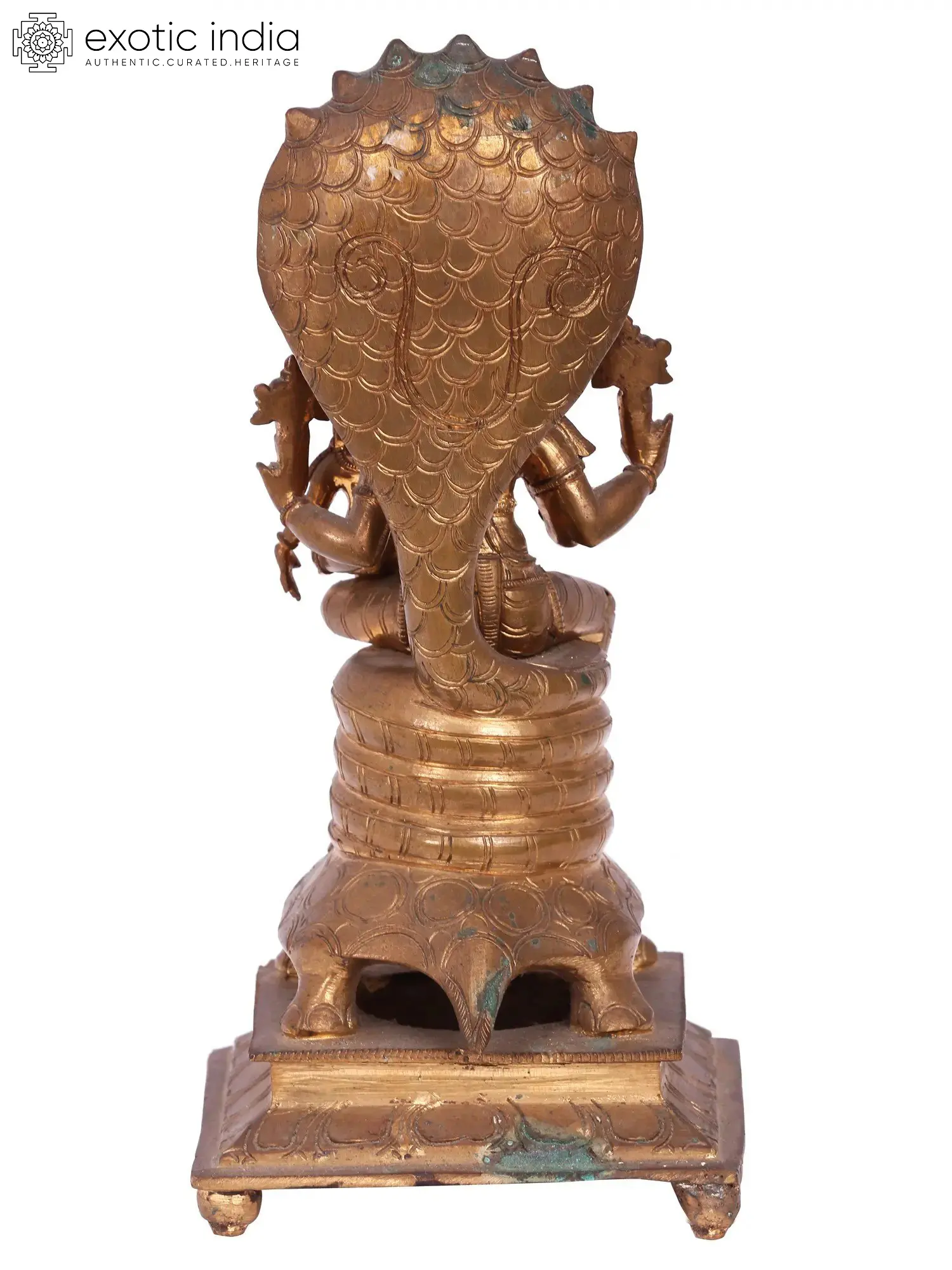 In this Panchaloha bronze artwork, Bhagwan Hayagriva, the god of knowledge and wisdom, emerges as the mesmerising horse-headed incarnation of Lord Vishnu, his celestial form seated gracefully upon the coiled Sheshnaag, riding the cosmic waves atop a divine tortoise. The mighty serpent Sheshnaag and tortoise embody cosmic balance and the sturdy foundation of existence.