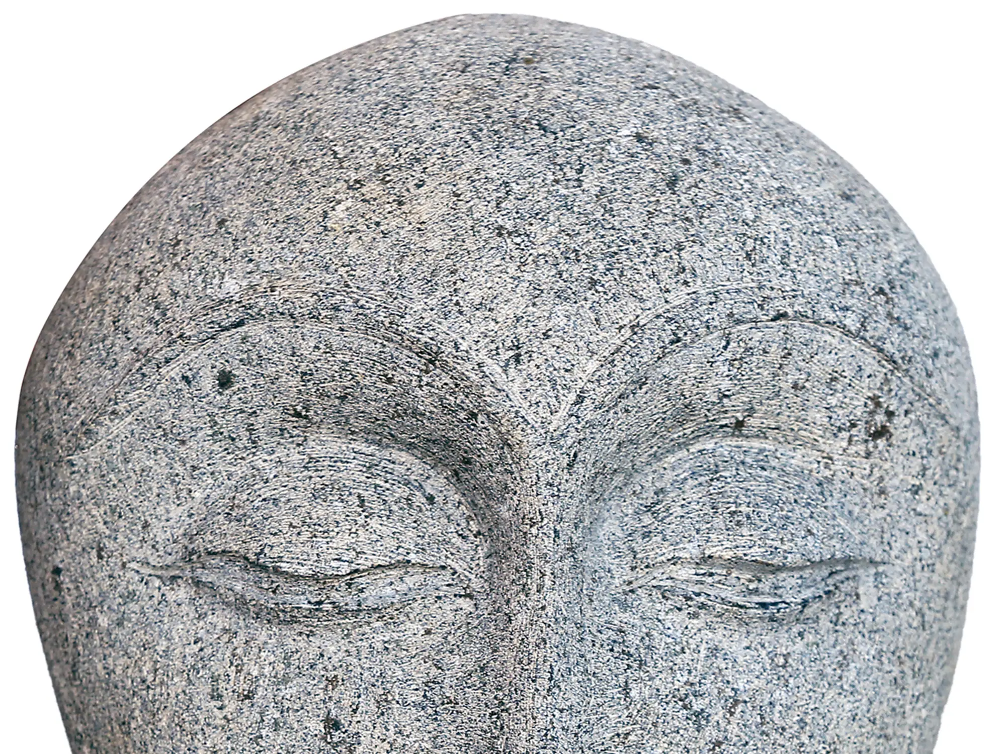 This exquisite granite sculpture captures the serene essence of a human face, rendered with a masterful touch that evokes a sense of profound peace. Carved from hard, enduring granite, the sculpture possesses a timeless quality, its textured surface whispering tales of ancient craftsmanship. The gentle, closed eyes suggest introspection and deep contemplation, while the softly curved lips hint at a subtle, knowing smile, inviting viewers to find their own inner calm. This piece is not merely decorative; it is a conduit to a state of mindfulness, a tangible reminder to seek balance and tranquility in the everyday.