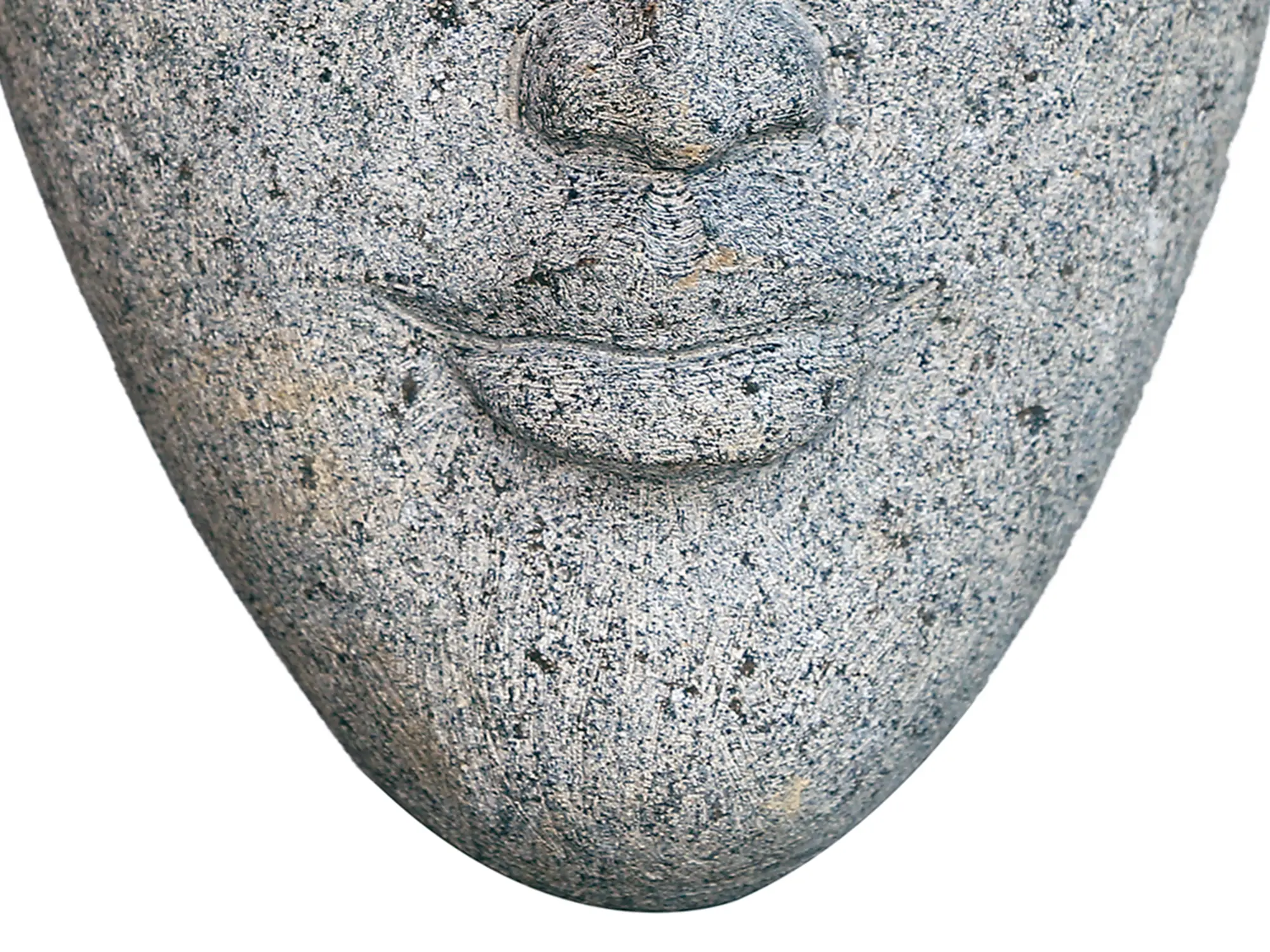 Throughout history, faces carved in stone have served as powerful symbols, representing deities, ancestral spirits, and embodiments of wisdom. In many cultures, stone faces have been placed in sacred sites, acting as silent guardians and conduits for spiritual energy. The serene expression found in this sculpture can be seen as echoing the calm demeanor of enlightened beings, such as the Buddha, whose peaceful visage is a universal symbol of serenity and enlightenment. It also resonates with depictions of benevolent deities in various mythologies, figures who offer solace and guidance through their tranquil presence. The granite itself, a stone of immense strength and longevity, lends an almost eternal quality to the contemplative expression.
