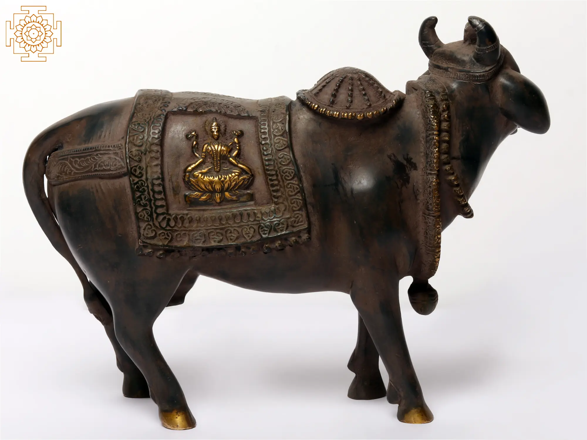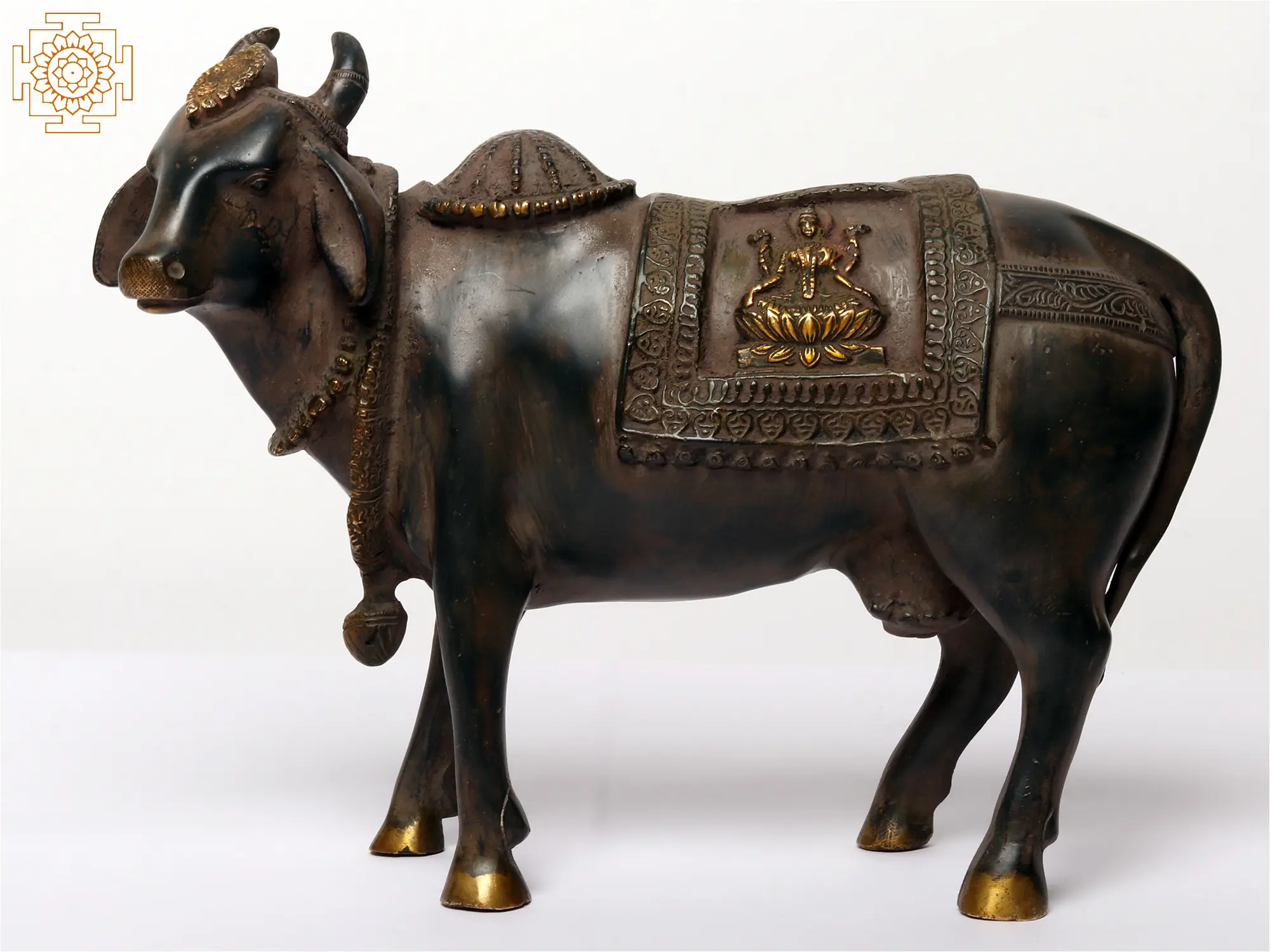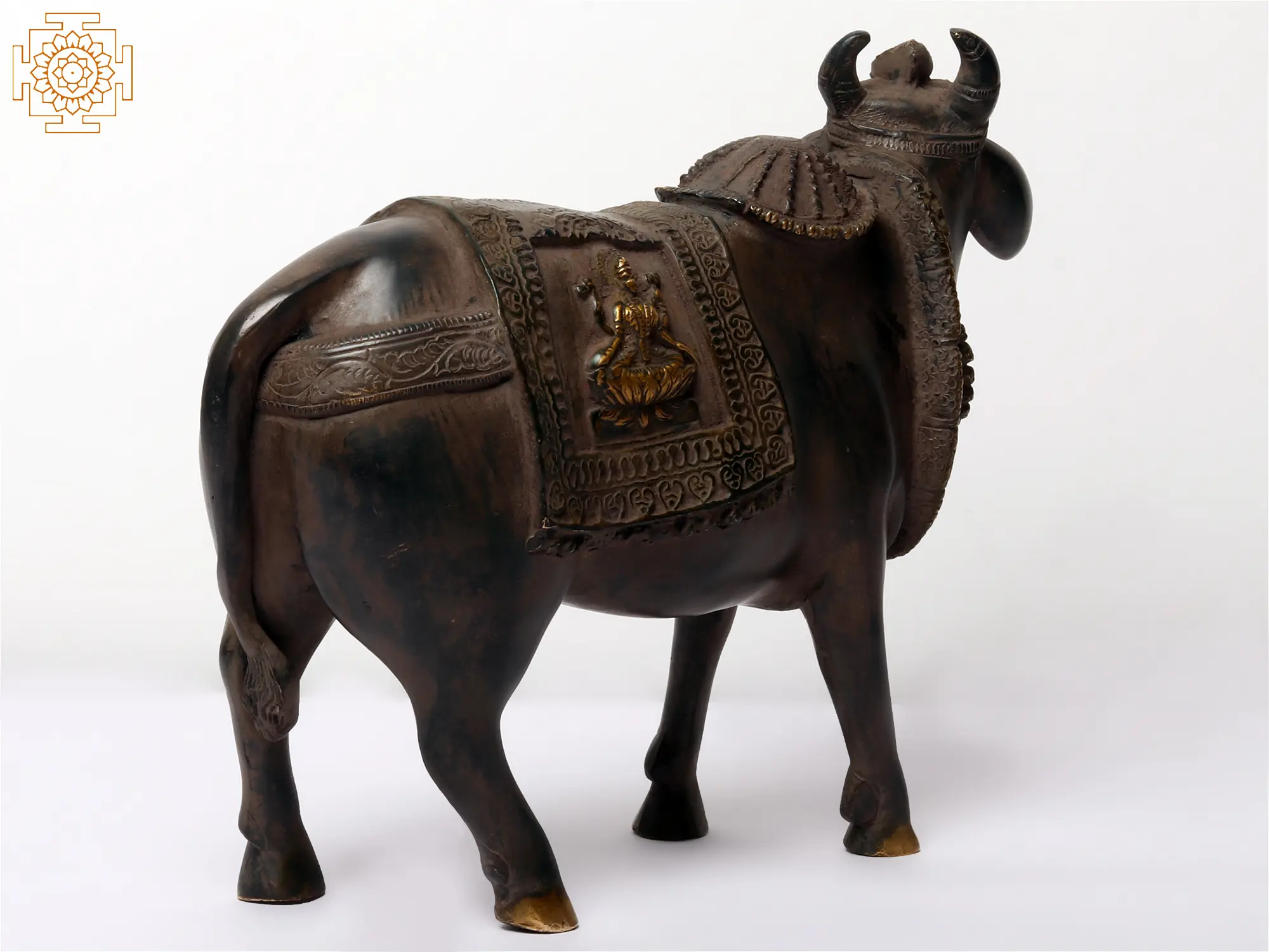 8" Brass Cow and Calf with Inlay Work | Spiritual Home Decor