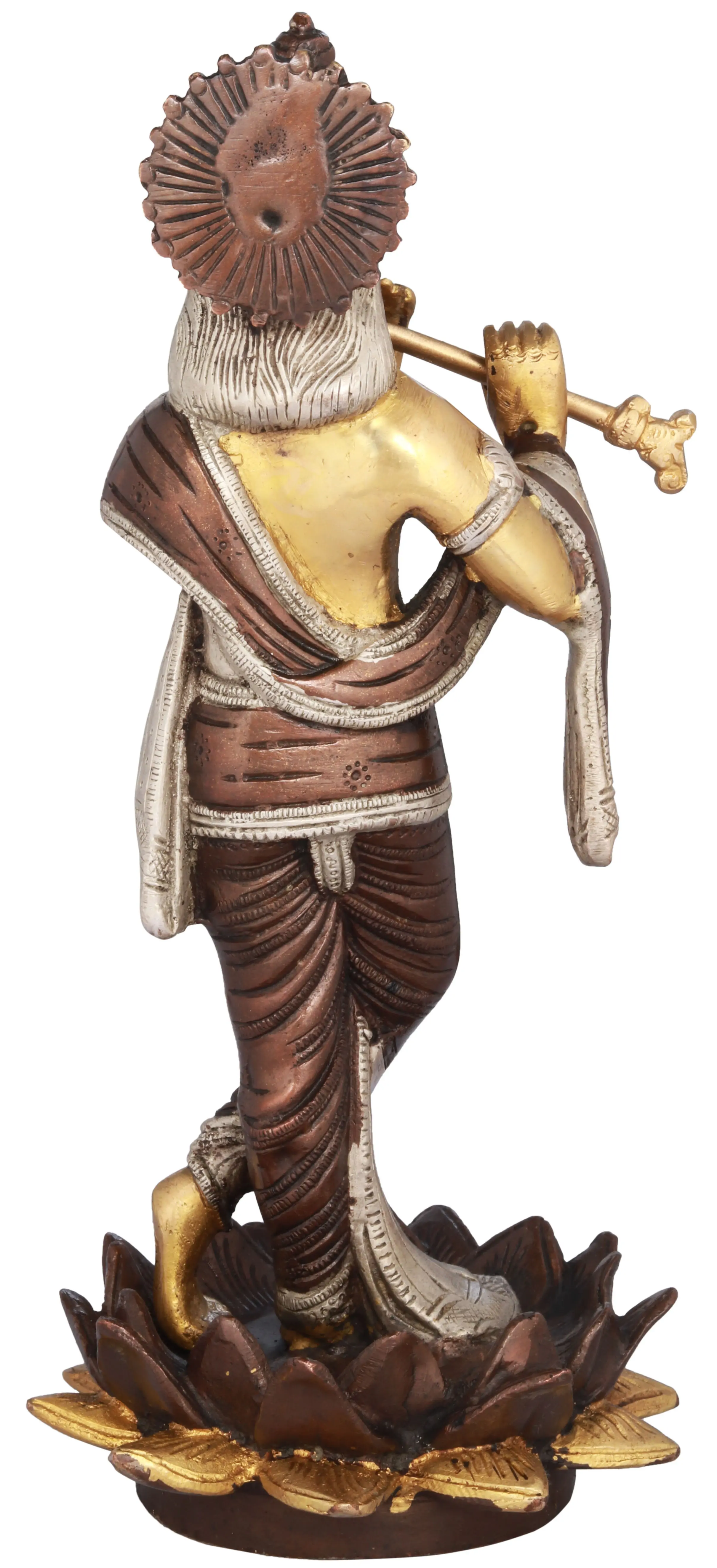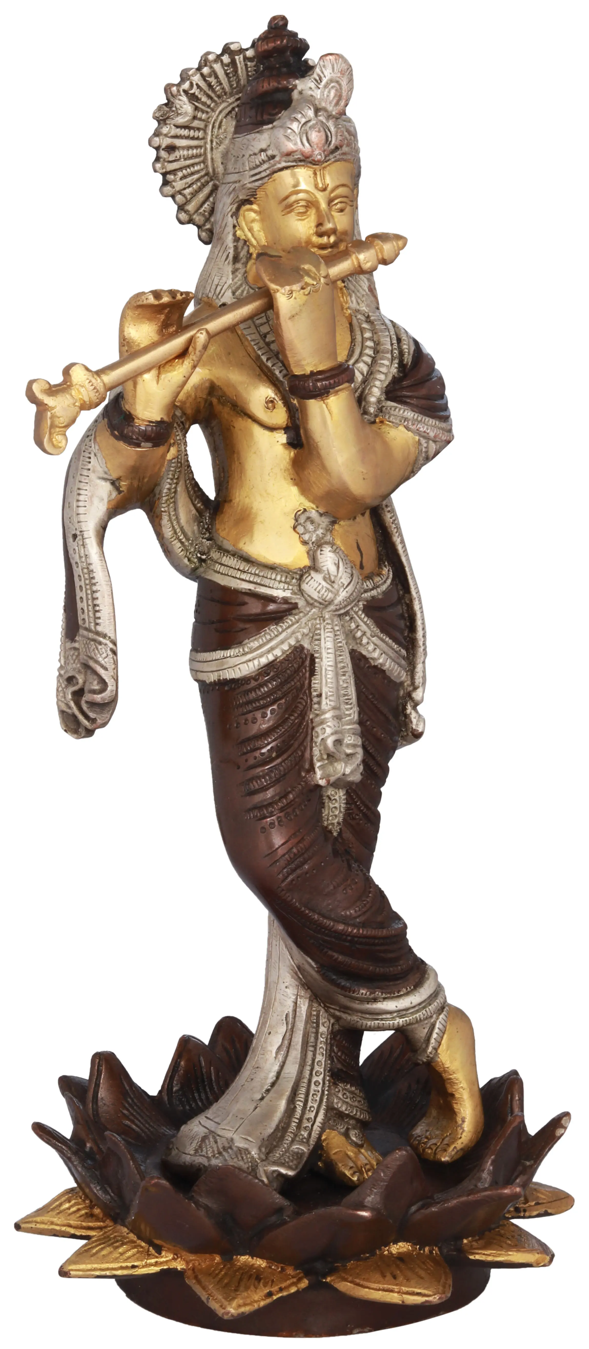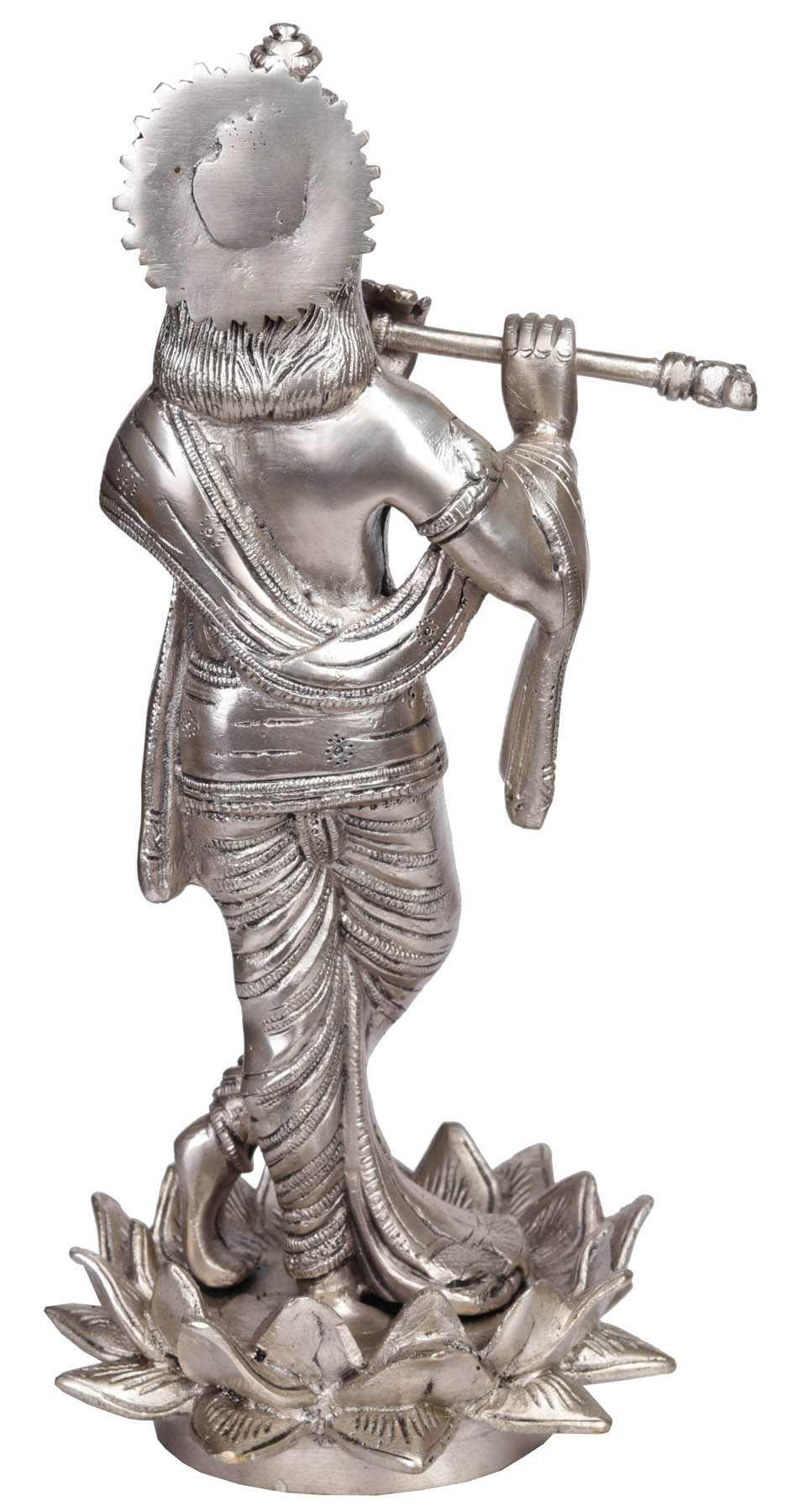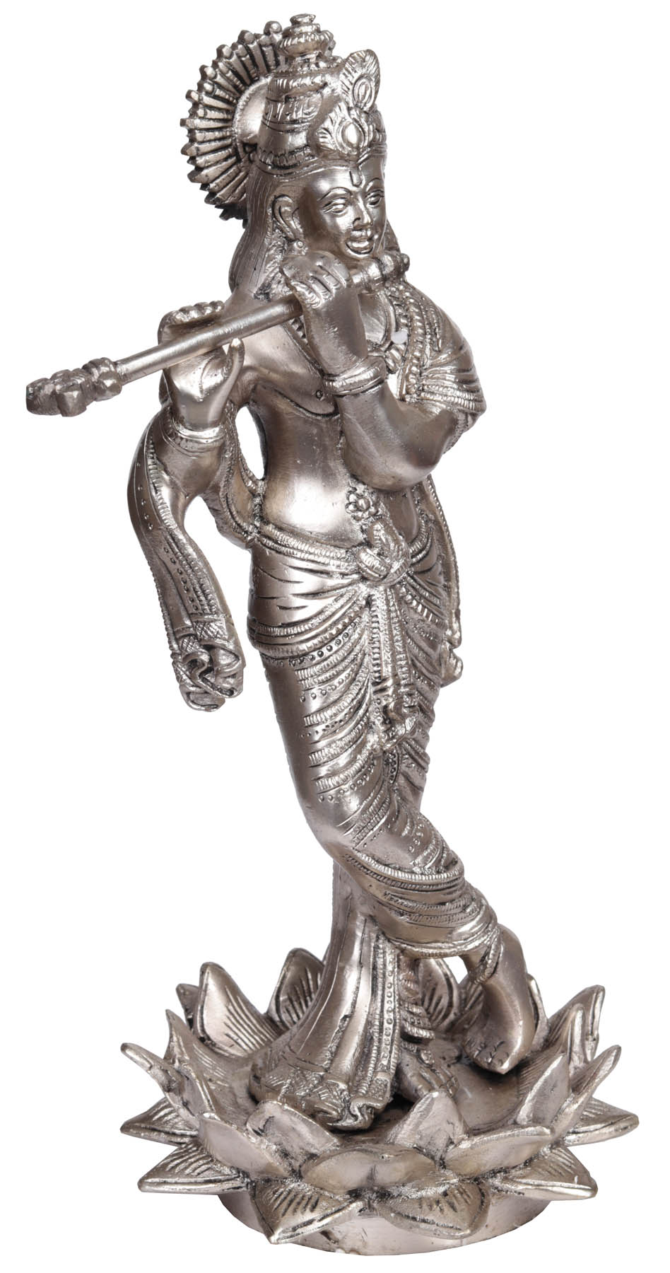 Lord Krishna - the handsomest, the most playful, and the worldly-wisest of all Indian deities - is arguably the greatest symbol of Indian culture. Of the numberless brass sculptures abound, this one stands out because of the superb intricacy and the distinctive silver, moon-like finish.