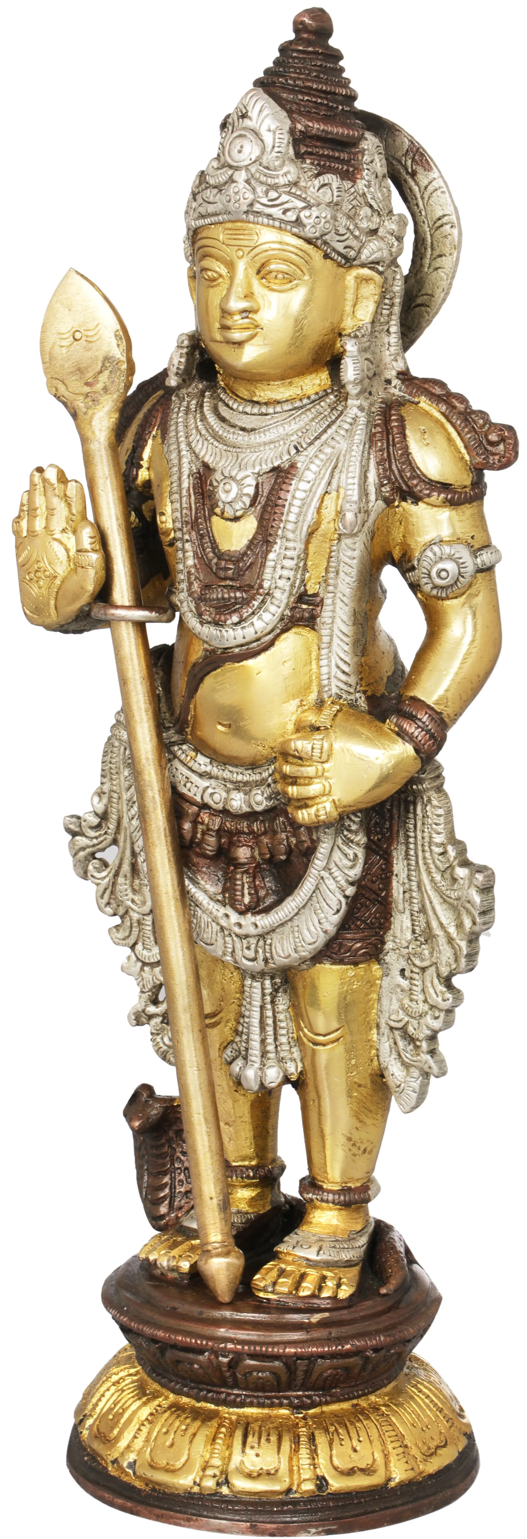 11" Kumara Karttikeya Brass Sculpture | Handmade | Made in India