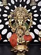 Seated Brass Lakshmi Ganesha Saraswati Idol on Singhasan