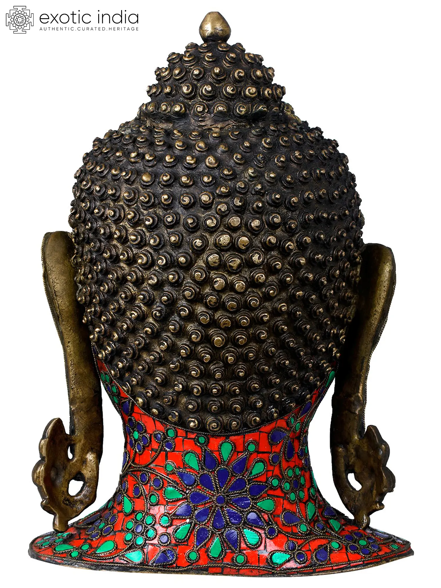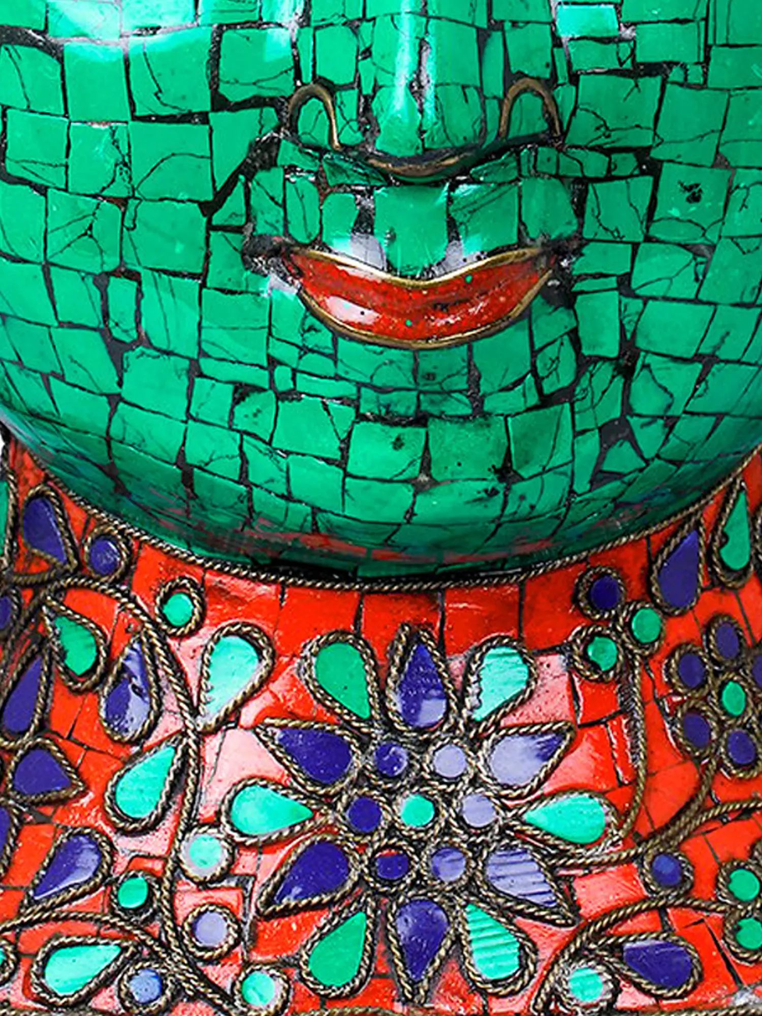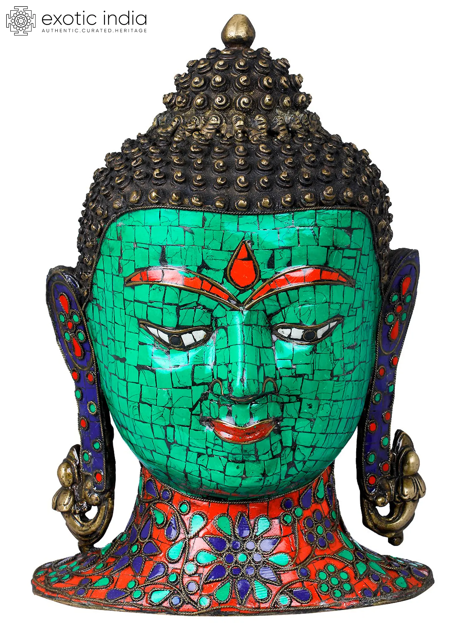 Handmade by skilled artisans in India, this brass statue is a testament to generations of inherited knowledge and dedication to their craft. The process of creating such a piece is labor-intensive, involving intricate metalwork and the careful selection and inlaying of colorful stones. The result is a unique work of art, imbued with the spirit and dedication of its creators. This Buddha head is more than just a decorative item; it is a tangible connection to ancient traditions and a symbol of enduring peace and wisdom, destined to bring a sense of tranquility and spiritual richness to any space it graces.