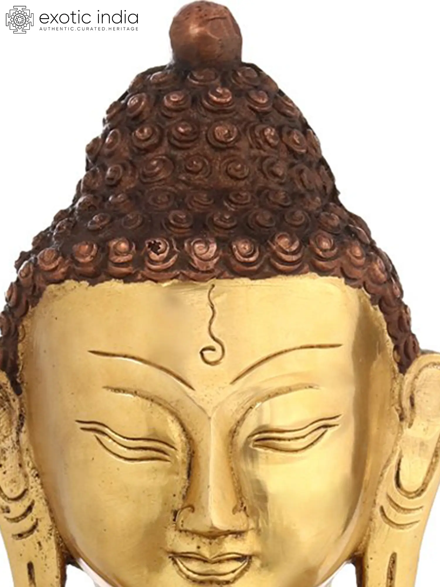 Crafted in India by skilled artisans, this 11-inch statue is a testament to the enduring traditions of Tibetan Buddhist art. The use of brass, a material revered for its durability and lustrous finish, lends a timeless quality to the sculpture. The contrasting tones of polished brass and a rich, deep brown patina create a striking visual harmony, highlighting the intricate details of Buddha's robes and adornments. The serene expression on his face, with eyes gently closed in deep meditation, invites contemplation and a sense of peace to any space. The delicate rendering of his urna, the spiral of hair on his forehead, and the ushnisha, the cranial protuberance symbolizing his profound wisdom, are all executed with meticulous care.