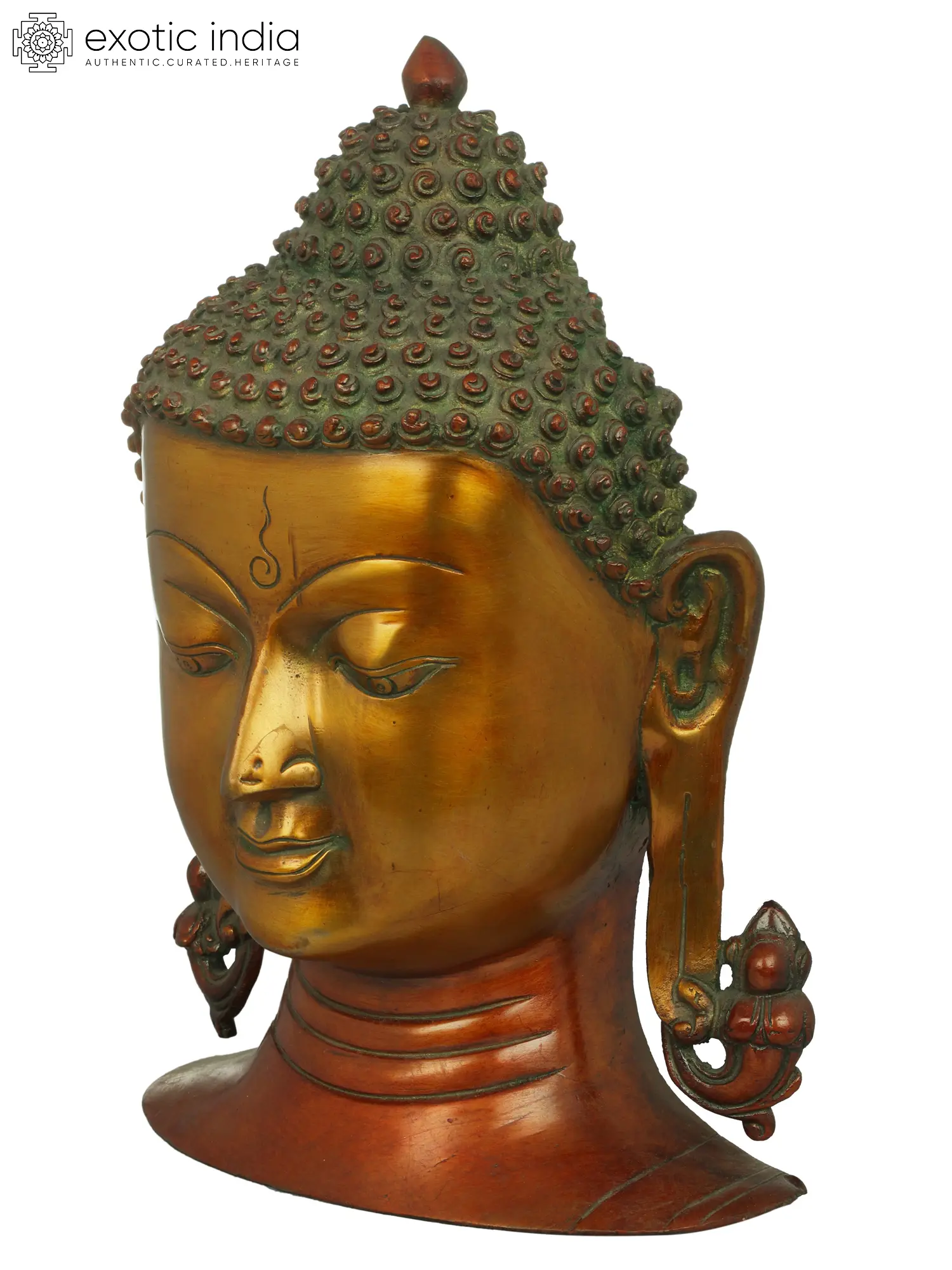 11" Lord Buddha Wall Hanging Mask (Tibetan Buddhist) In Brass | Handmade | Made In India