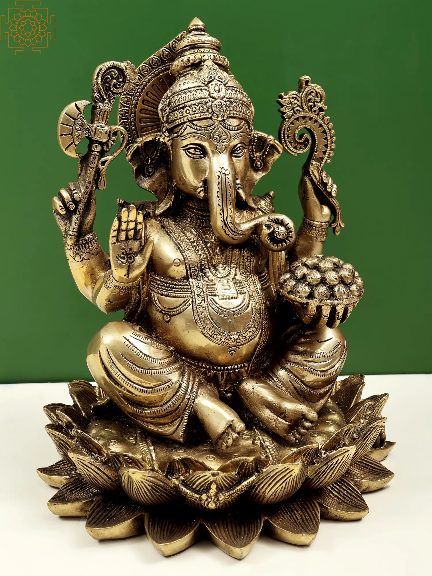 11" Lord Ganesha Seated on Lotus in Brass | Handmade | Made In India