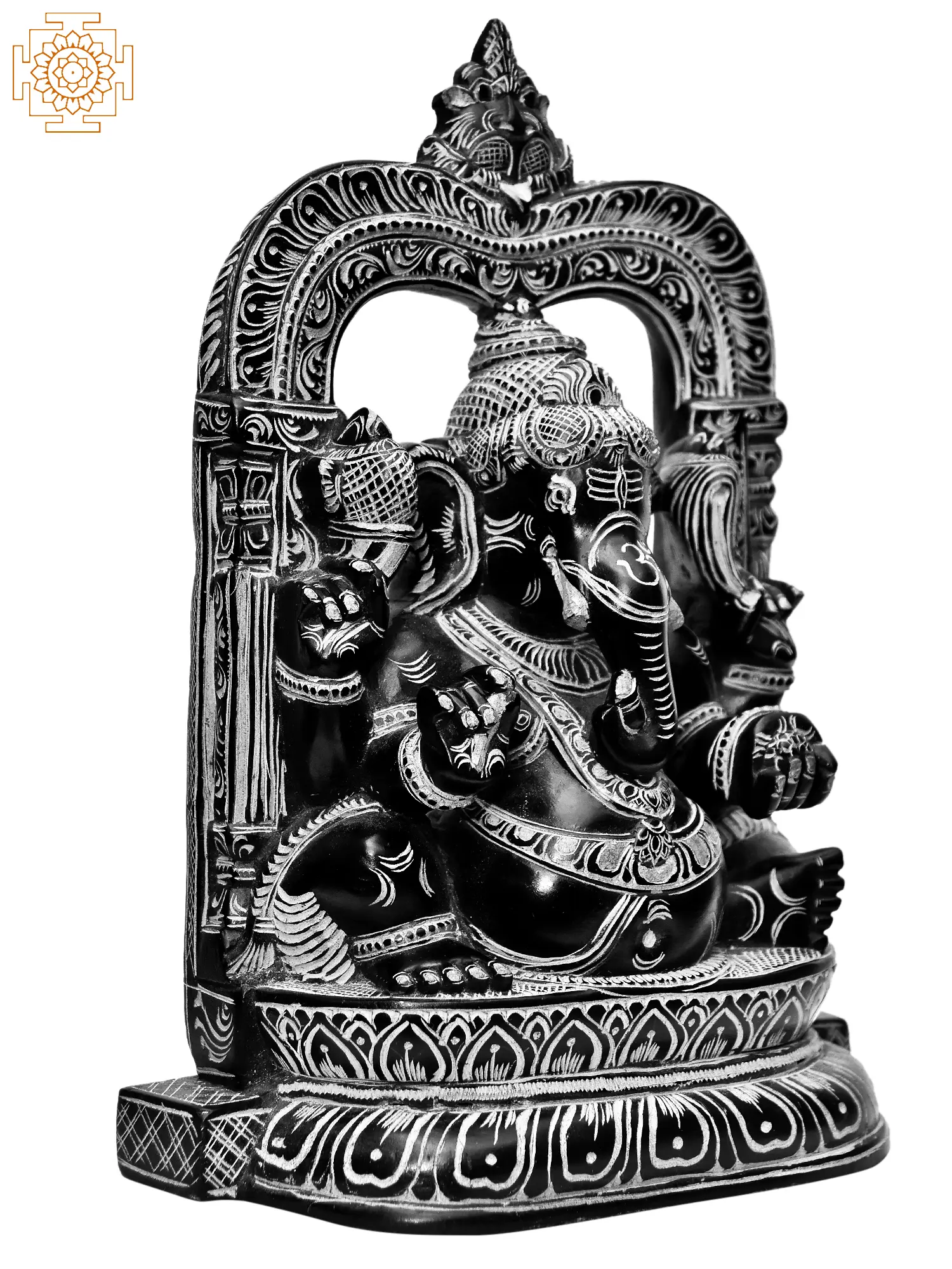 The archway surrounding Lord Ganesha is more than just decorative; it signifies protection, divine grace, and a portal to spiritual enlightenment. In Hindu iconography, arches and toranas often represent the entrance to a sacred space or the celestial abode of deities. This design enhances the divine aura of the sculpture, creating a focal point of spiritual energy. The base on which he sits is adorned with exquisite lotus motifs, another powerful symbol in Hinduism representing purity, beauty, and spiritual awakening. The lotus, growing untainted from muddy waters, signifies the ability to rise above worldly attachments and find inner peace. This representation of Ganesha is often associated with the stories of his birth and his divine parentage. Tales speak of his creation by Goddess Parvati from her own essence, and how he was later beheaded by Lord Shiva, only to be restored with the head of an elephant. These myths underscore his unique position as a beloved deity, bridging the divine and the earthly, and embodying the power of transformation and renewal. The presence of this statue is believed to bring good fortune, ward off negative energies, and foster a harmonious environment. It is an ideal piece for anyone seeking to imbue their living or workspace with a sense of peace, prosperity, and spiritual connection.