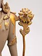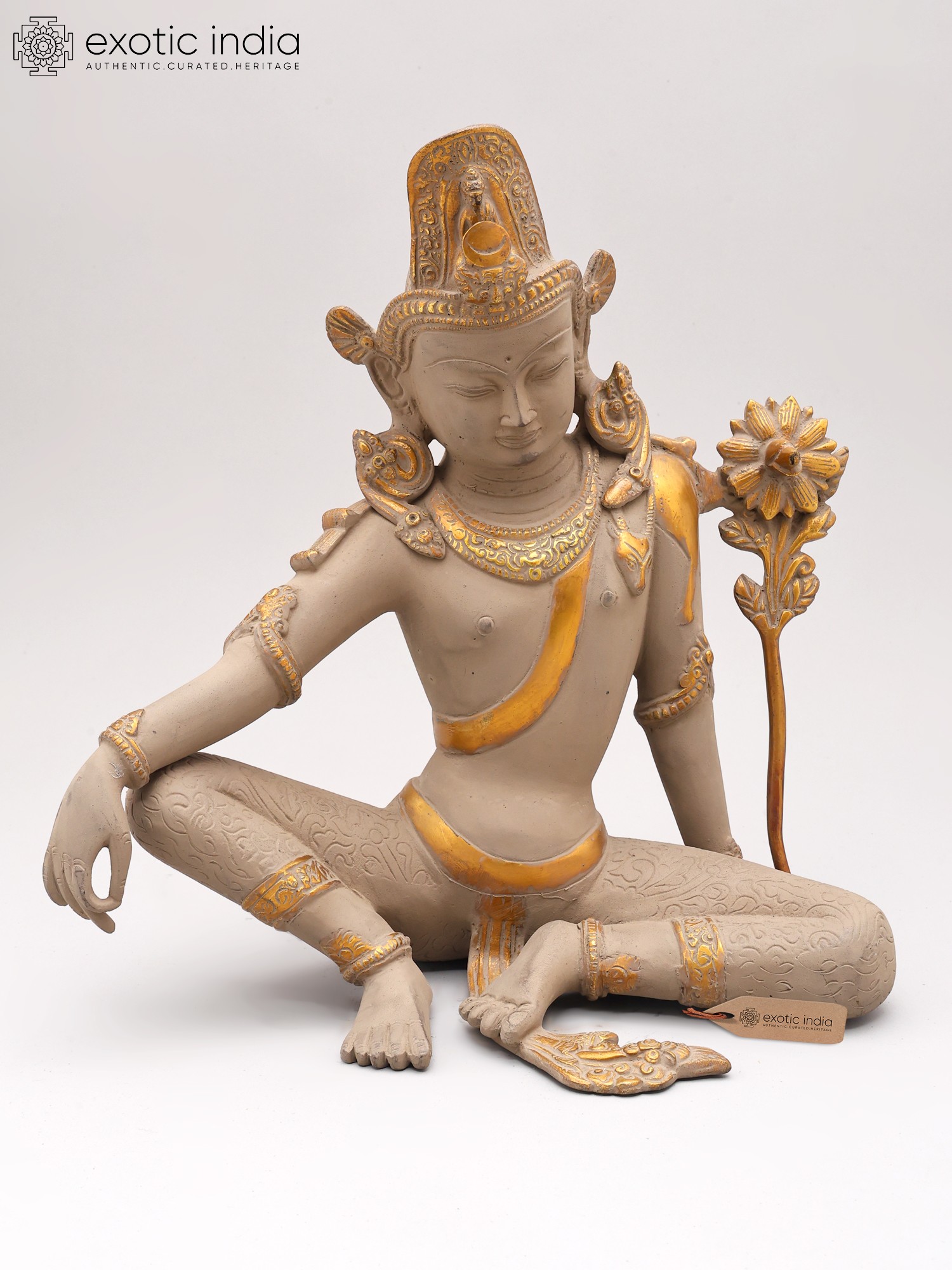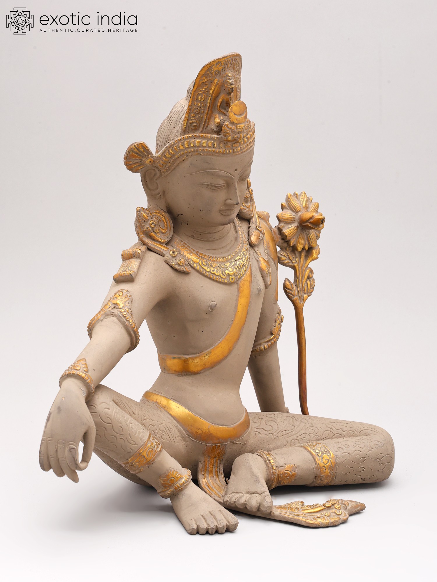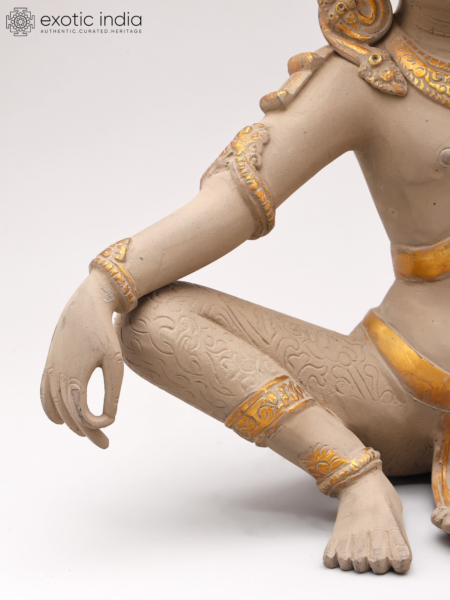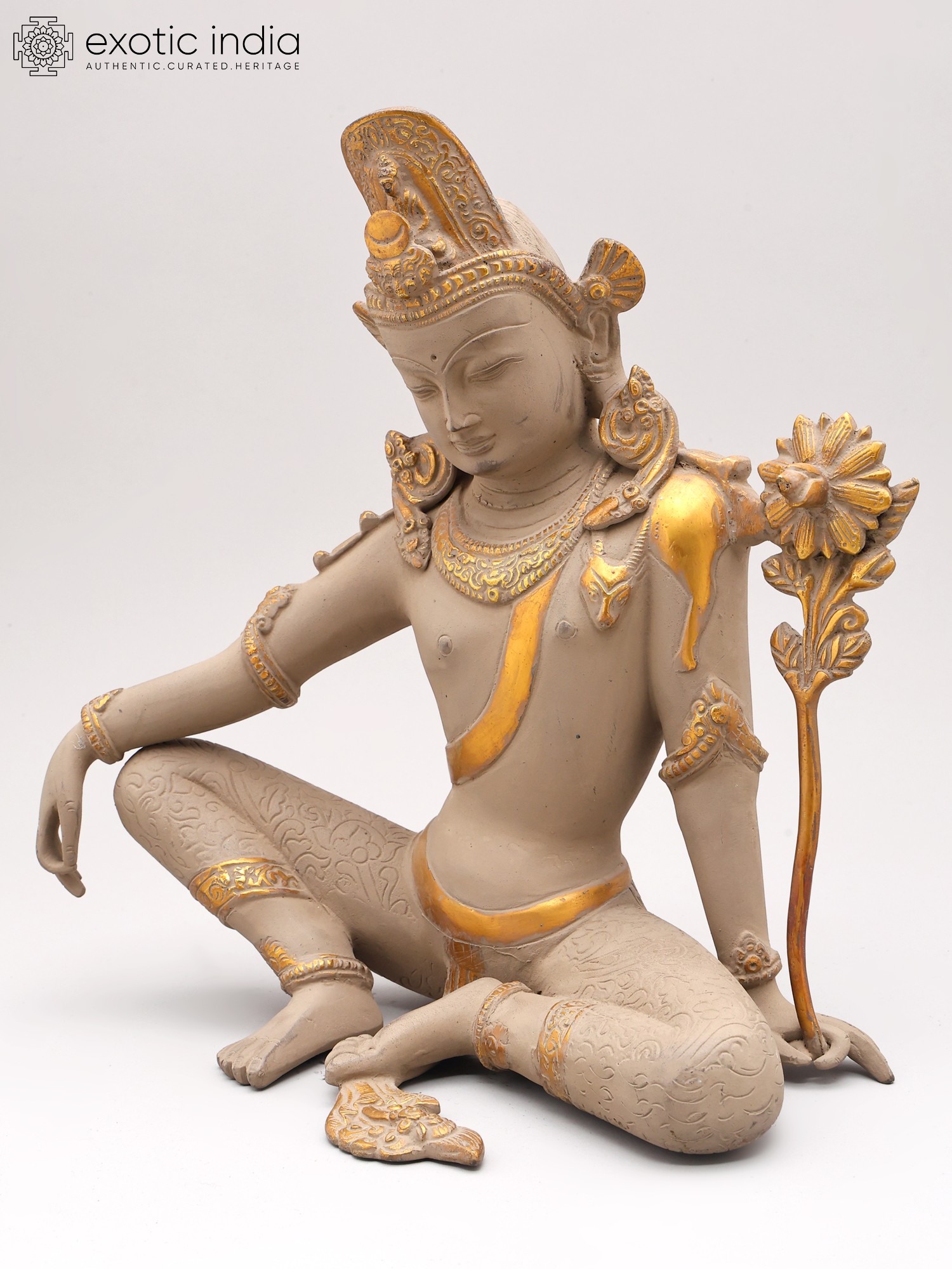 You'll appreciate the thoughtful design that brings this divine figure to life, standing at an impressive 11.5 inches tall. The careful articulation of the limbs, the intricate patterns adorning the legs, and the regal headdress speak to a profound understanding of form and aesthetics. Subtle yet striking gold accents highlight key features, catching the light and adding a layer of opulence to the piece. The delicate lotus held in its hand symbolizes purity and enlightenment, adding further symbolic depth.