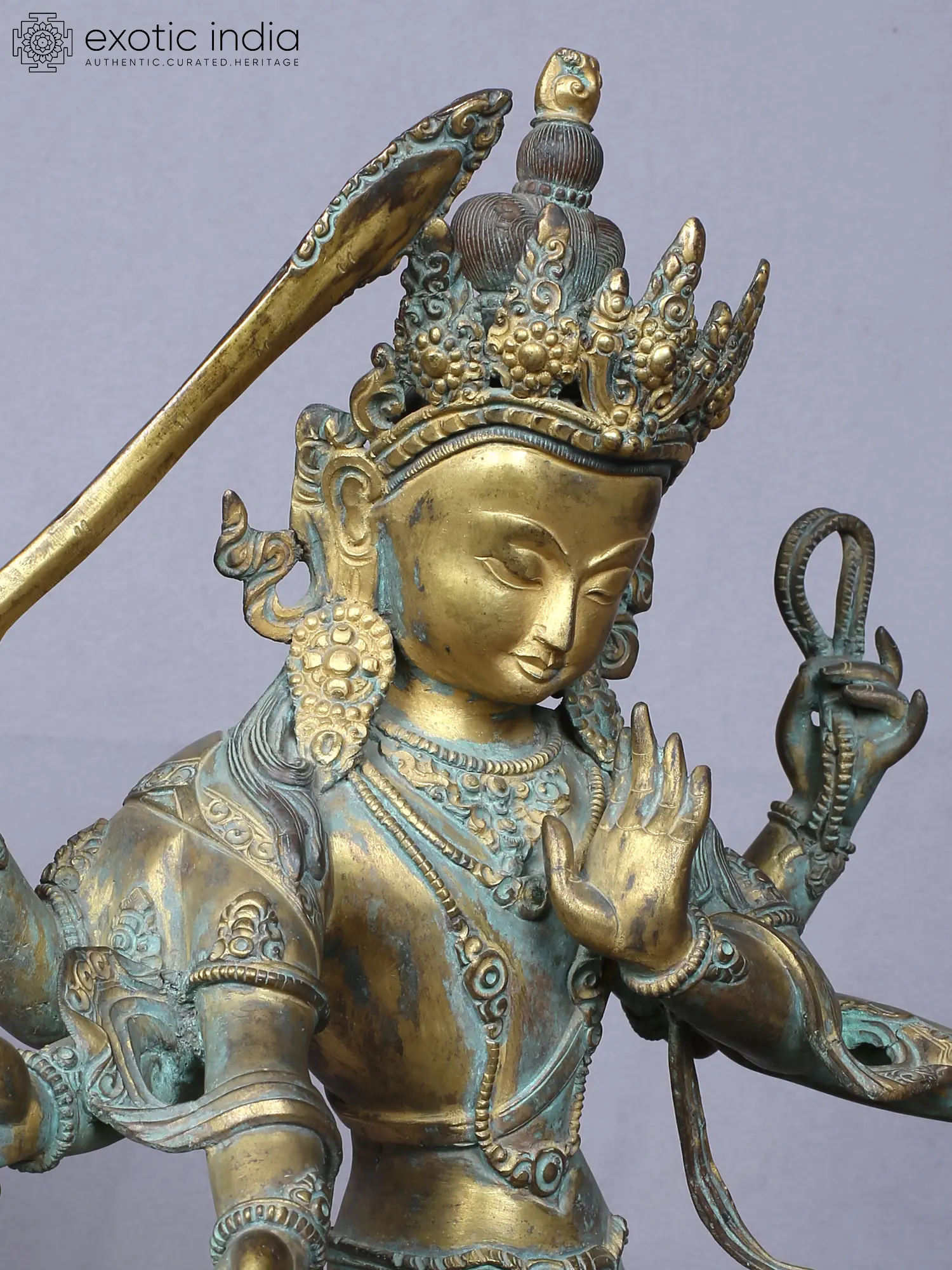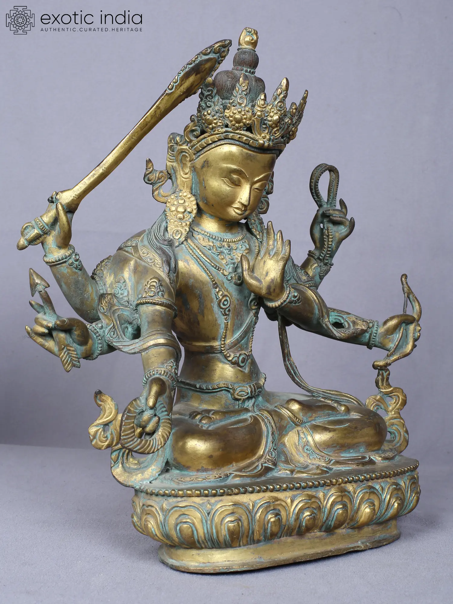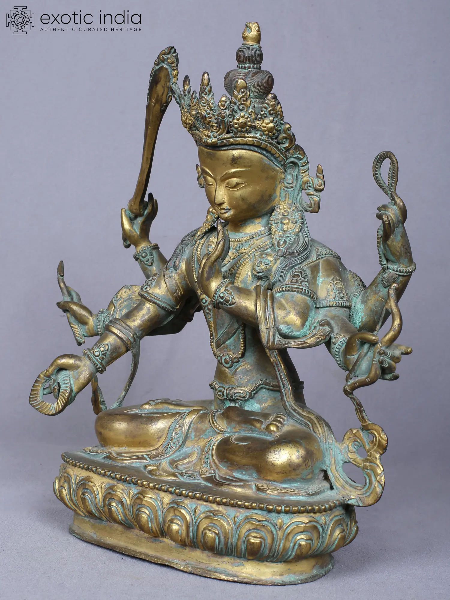 12" Tibetan Buddhist Deity Manjushri Brass Sculpture | Handmade | Made in India