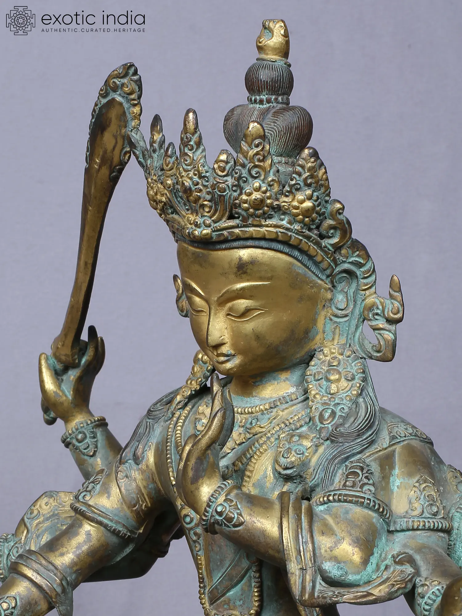 14" Manjushri - Bodhisattva of Transcendent Wisdom | Handmade Tibetan Buddhist Deity Brass Statue