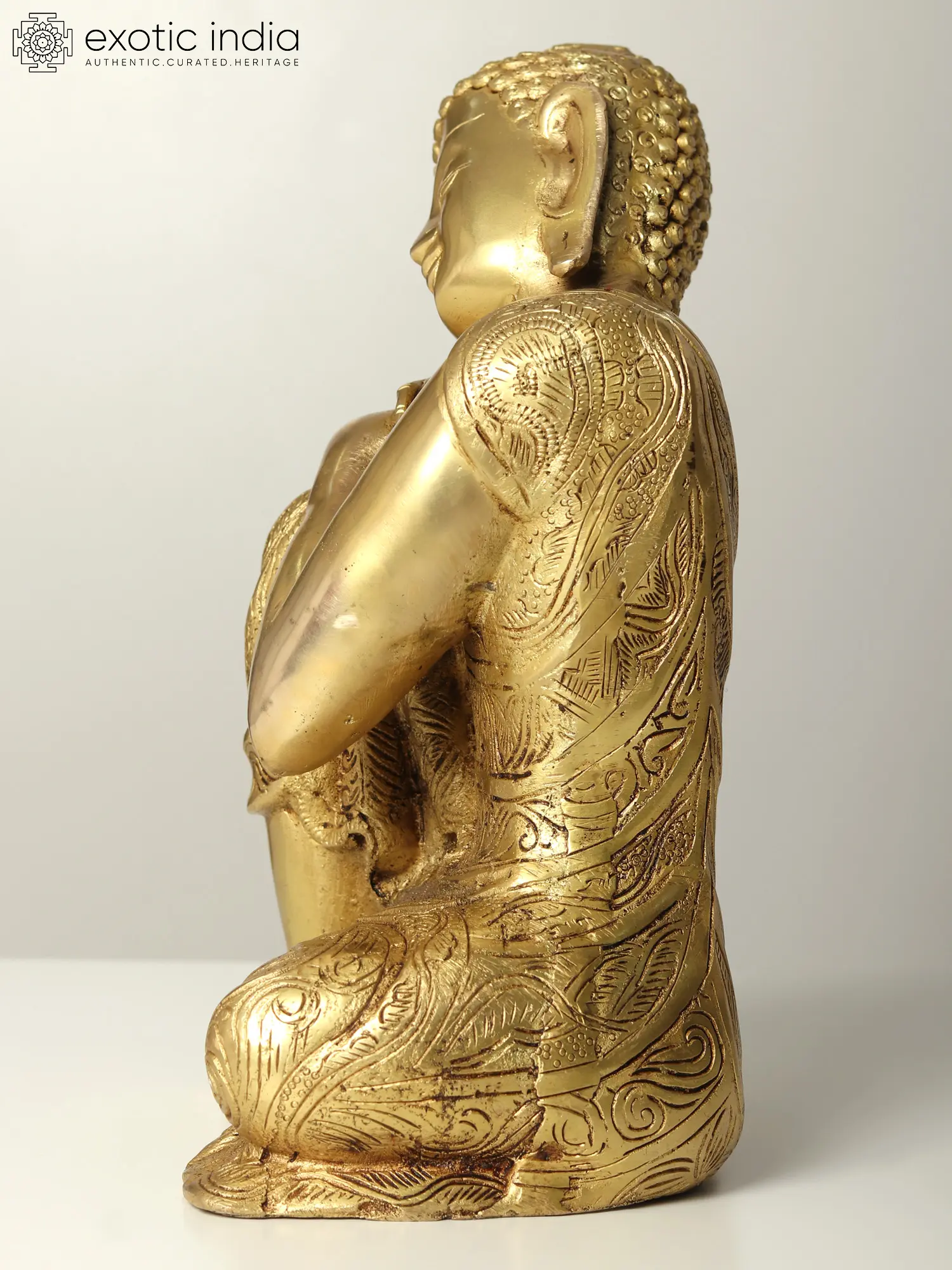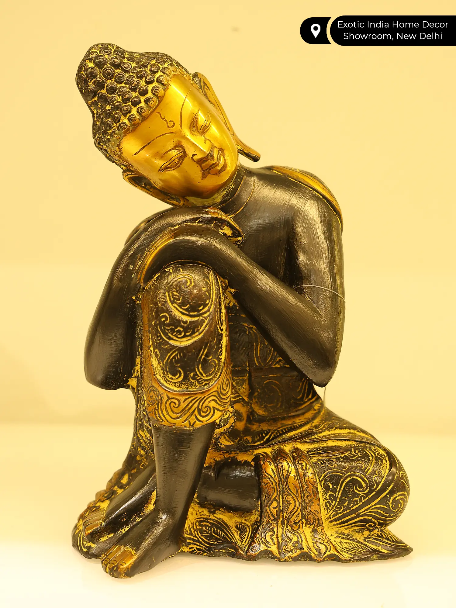 Self-reflection is an essential component of living a peaceful life. This Thinking Buddha Brass statue represents Buddha as an incarnation who is deeply engaged in self-reflection. It is believed that by correcting your actions, you might attain greater insight. The image of Buddha sitting peacefully with his legs crossed and his hands supporting his head while thinking and meditating evokes peaceful emotions in the observer. Keeping this statue at home will add wisdom to the environment by inspiring the beholder to reflect on their deeds.